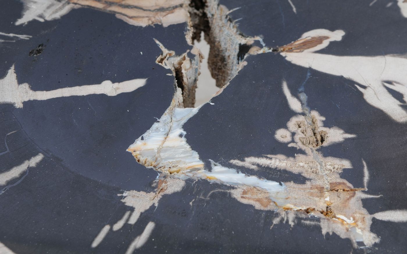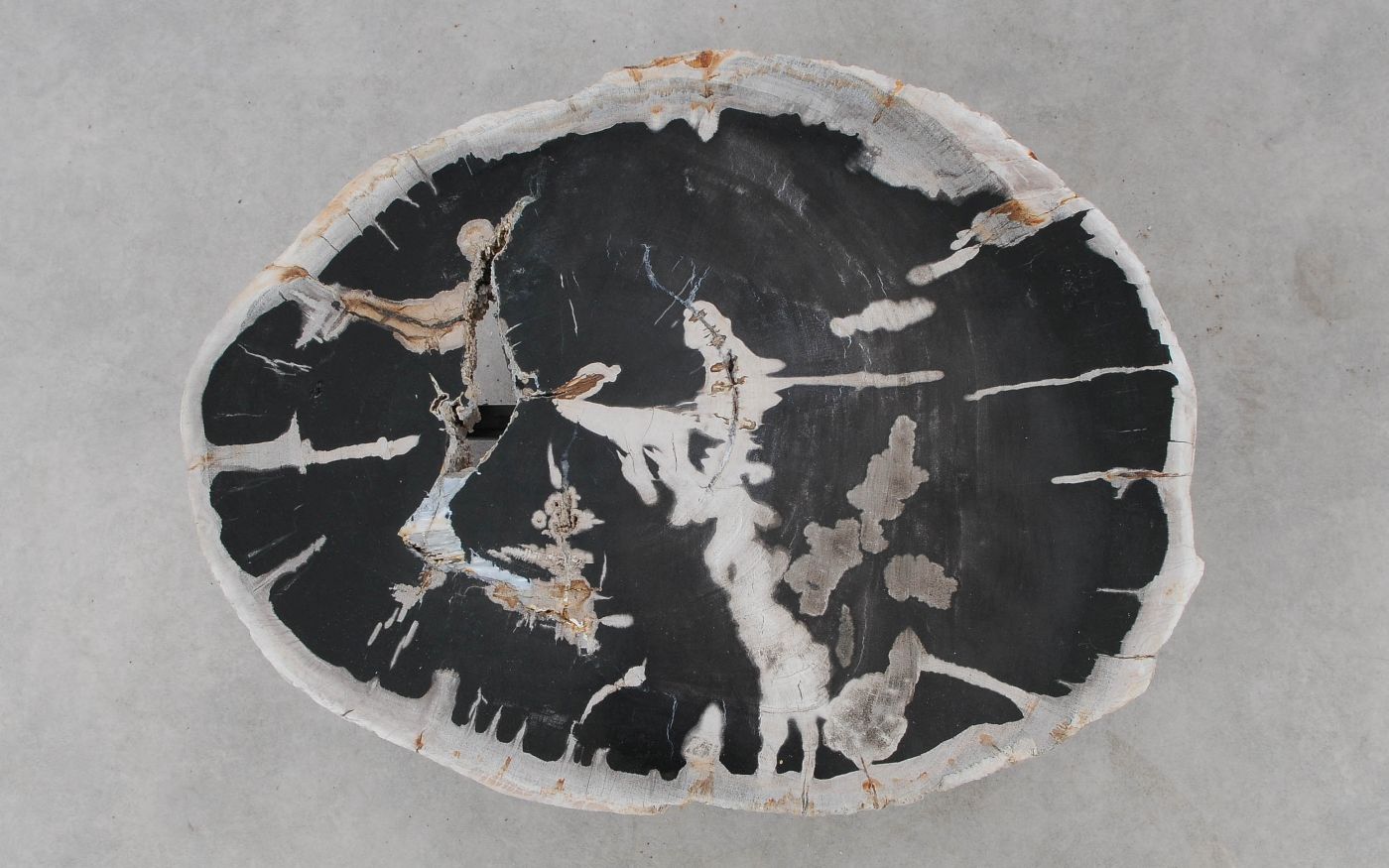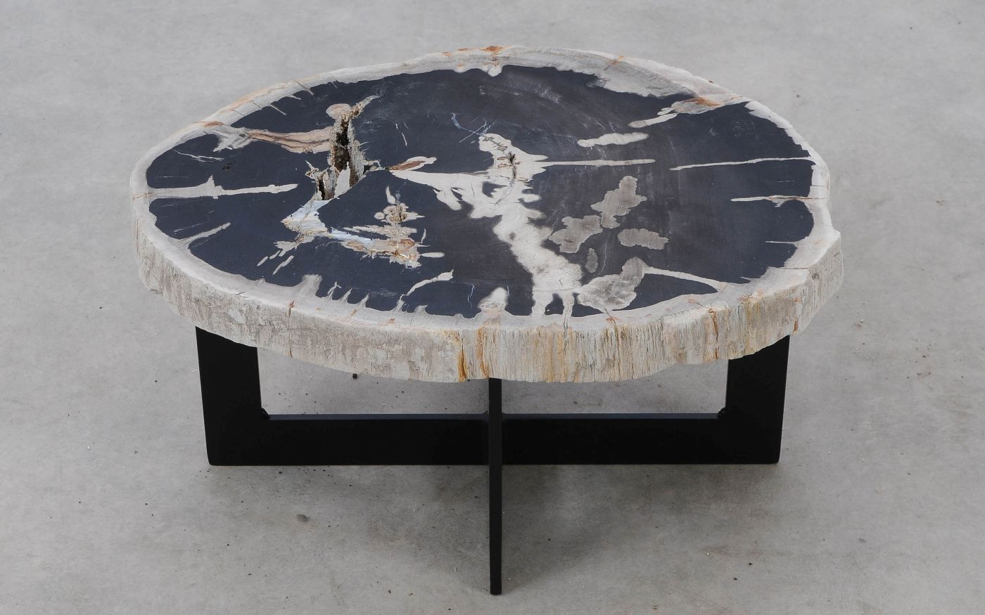 Deze unieke salontafel van versteend hout past in ieder interieur. Het tafelblad is gezaagd uit een grote versteende boom, die ongeveer 20 miljoen jaar geleden geleefd heeft. De kleuren zijn bepaald door de mineralen die het hout van deze boom vervangen hebben.