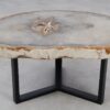 Deze unieke salontafel van versteend hout past in ieder interieur. Het tafelblad is gezaagd uit een grote versteende boom, die ongeveer 20 miljoen jaar geleden geleefd heeft. De kleuren zijn bepaald door de mineralen die het hout van deze boom vervangen hebben.