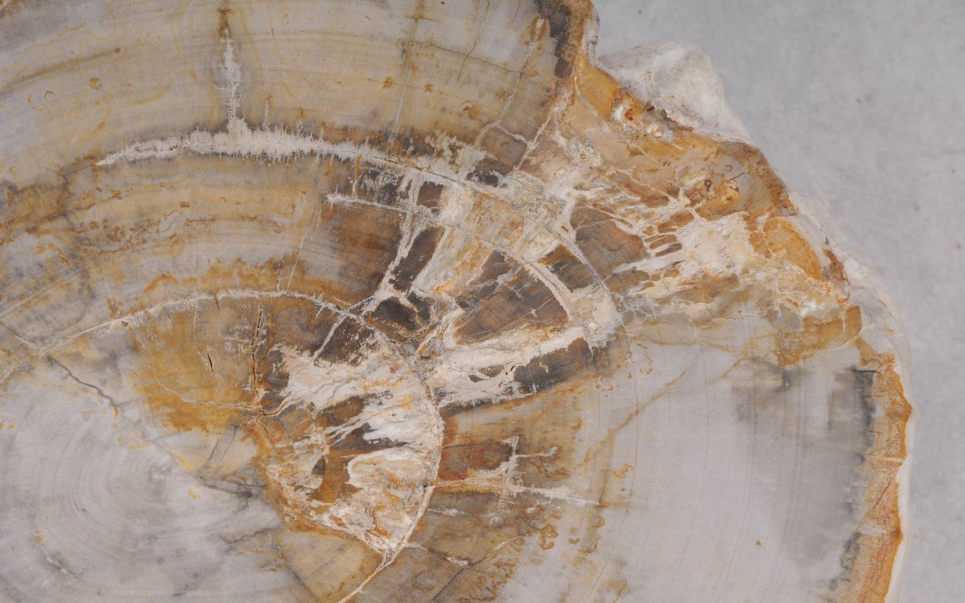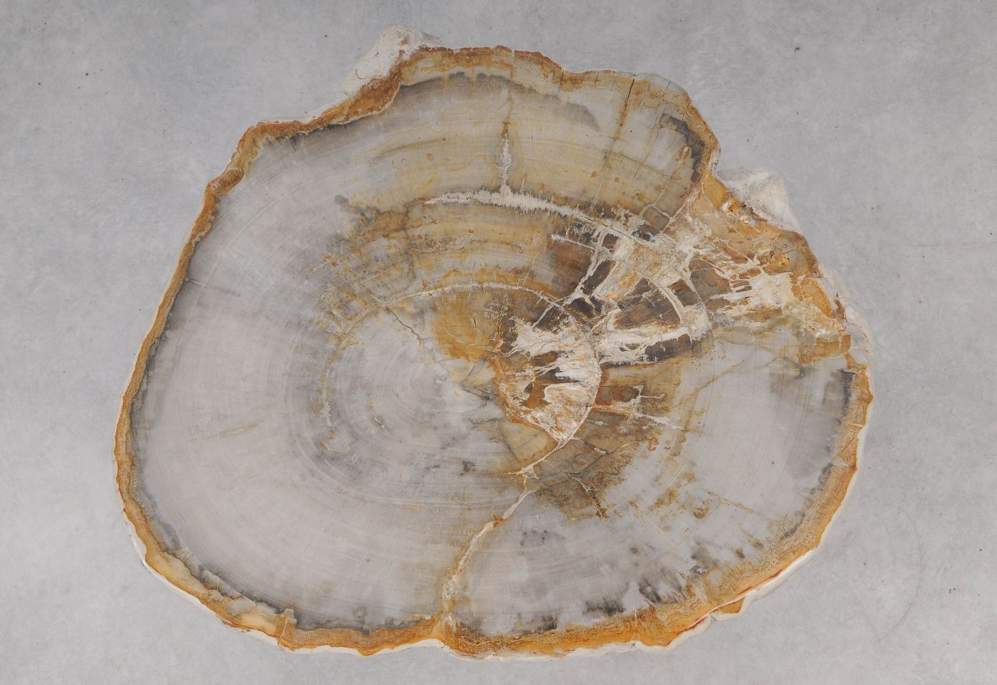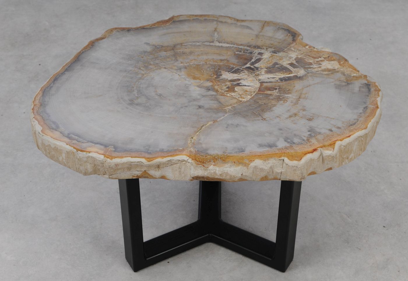Deze unieke salontafel van versteend hout past in ieder interieur. Het tafelblad is gezaagd uit een grote versteende boom, die ongeveer 20 miljoen jaar geleden geleefd heeft. De kleuren zijn bepaald door de mineralen die het hout van deze boom vervangen hebben.