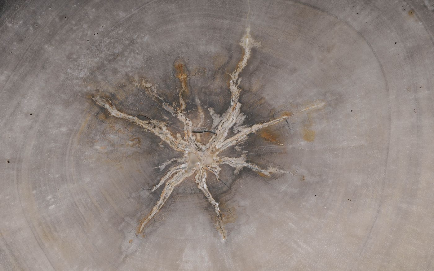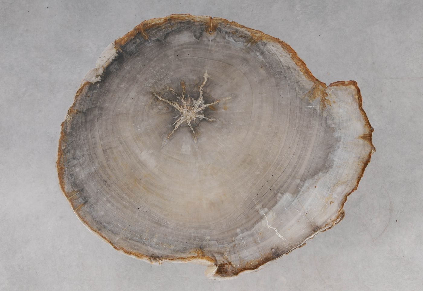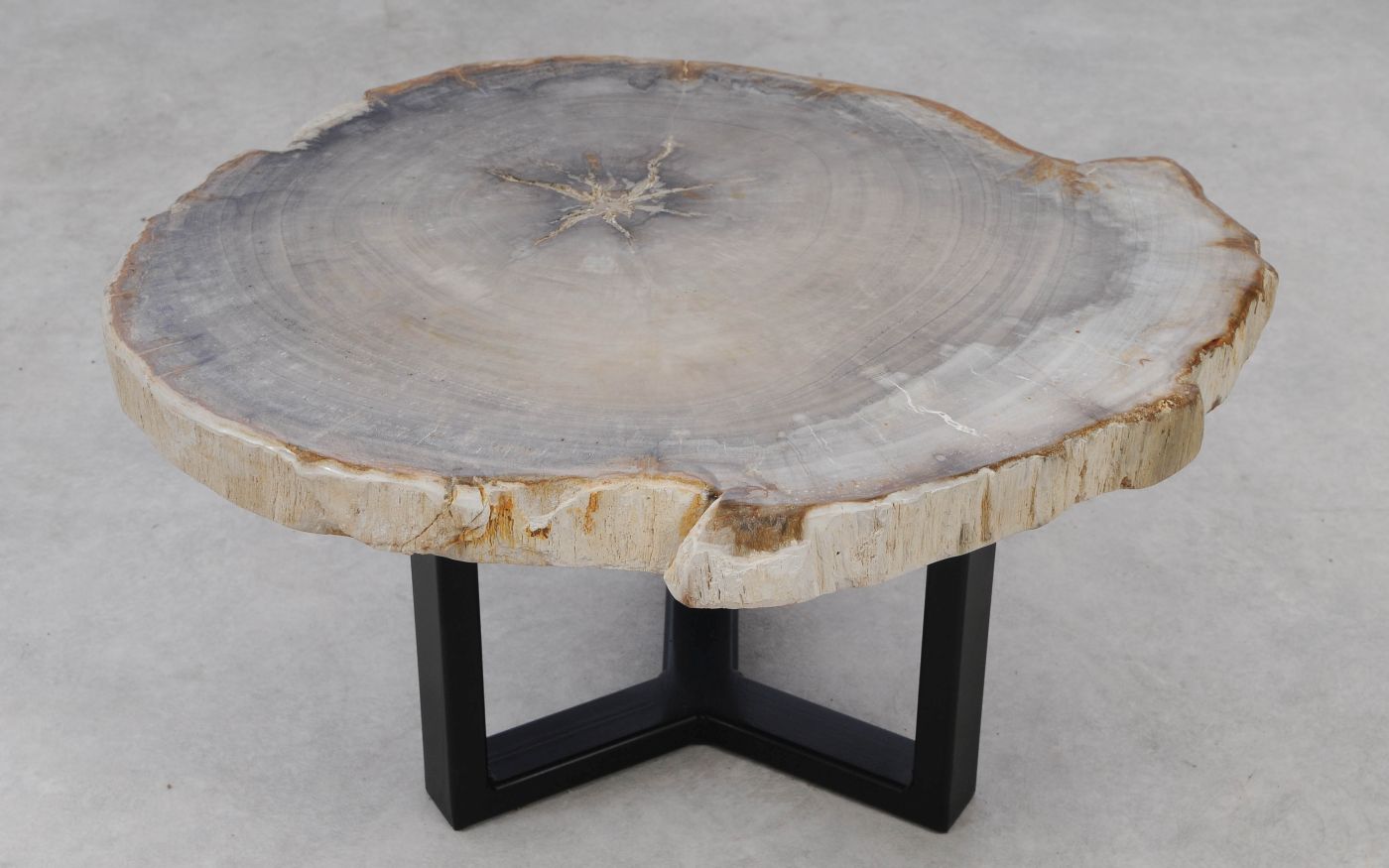 Deze unieke salontafel van versteend hout past in ieder interieur. Het tafelblad is gezaagd uit een grote versteende boom, die ongeveer 20 miljoen jaar geleden geleefd heeft. De kleuren zijn bepaald door de mineralen die het hout van deze boom vervangen hebben.