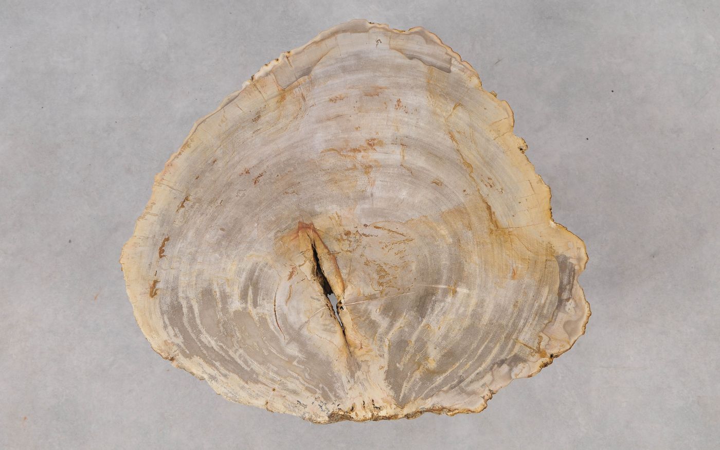 Deze unieke salontafel van versteend hout past in ieder interieur. Het tafelblad is gezaagd uit een grote versteende boom, die ongeveer 20 miljoen jaar geleden geleefd heeft. De kleuren zijn bepaald door de mineralen die het hout van deze boom vervangen hebben.