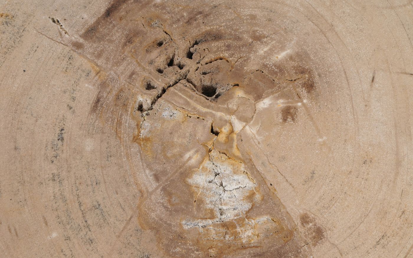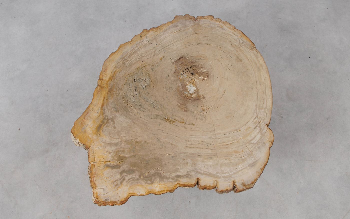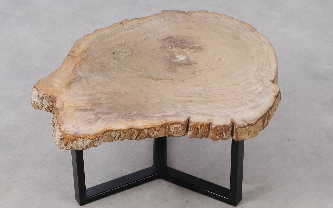 Deze unieke salontafel van versteend hout past in ieder interieur. Het tafelblad is gezaagd uit een grote versteende boom, die ongeveer 20 miljoen jaar geleden geleefd heeft. De kleuren zijn bepaald door de mineralen die het hout van deze boom vervangen hebben.