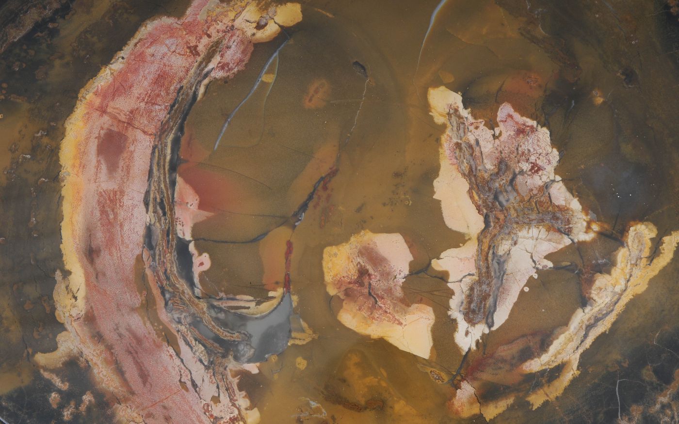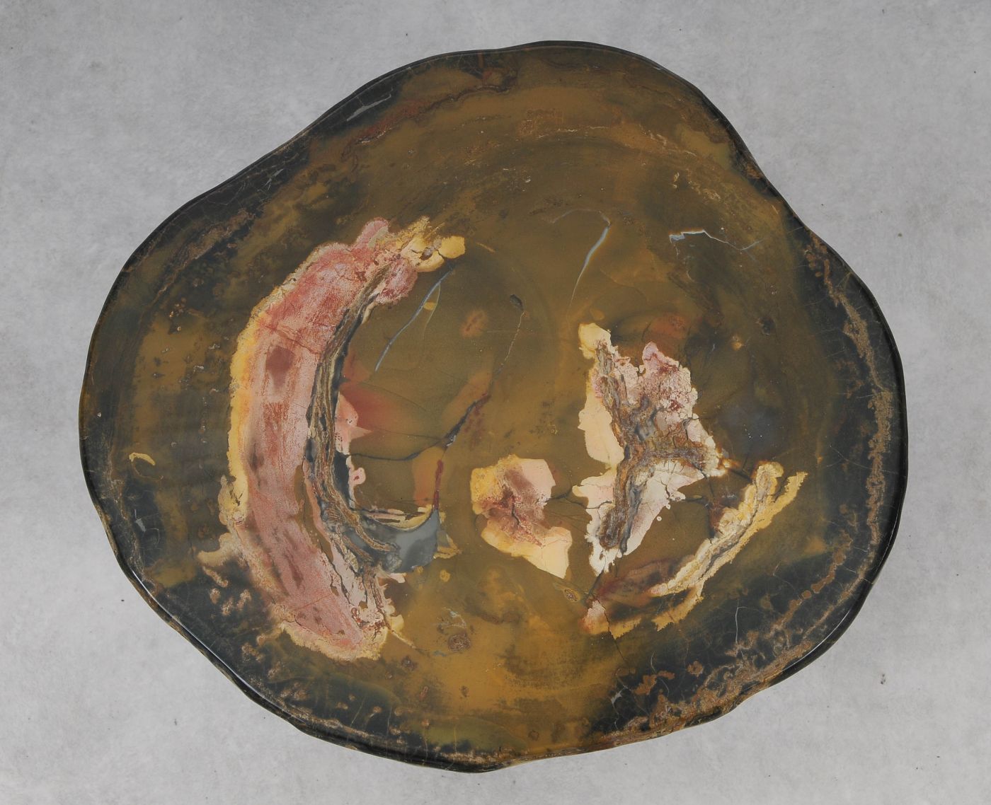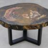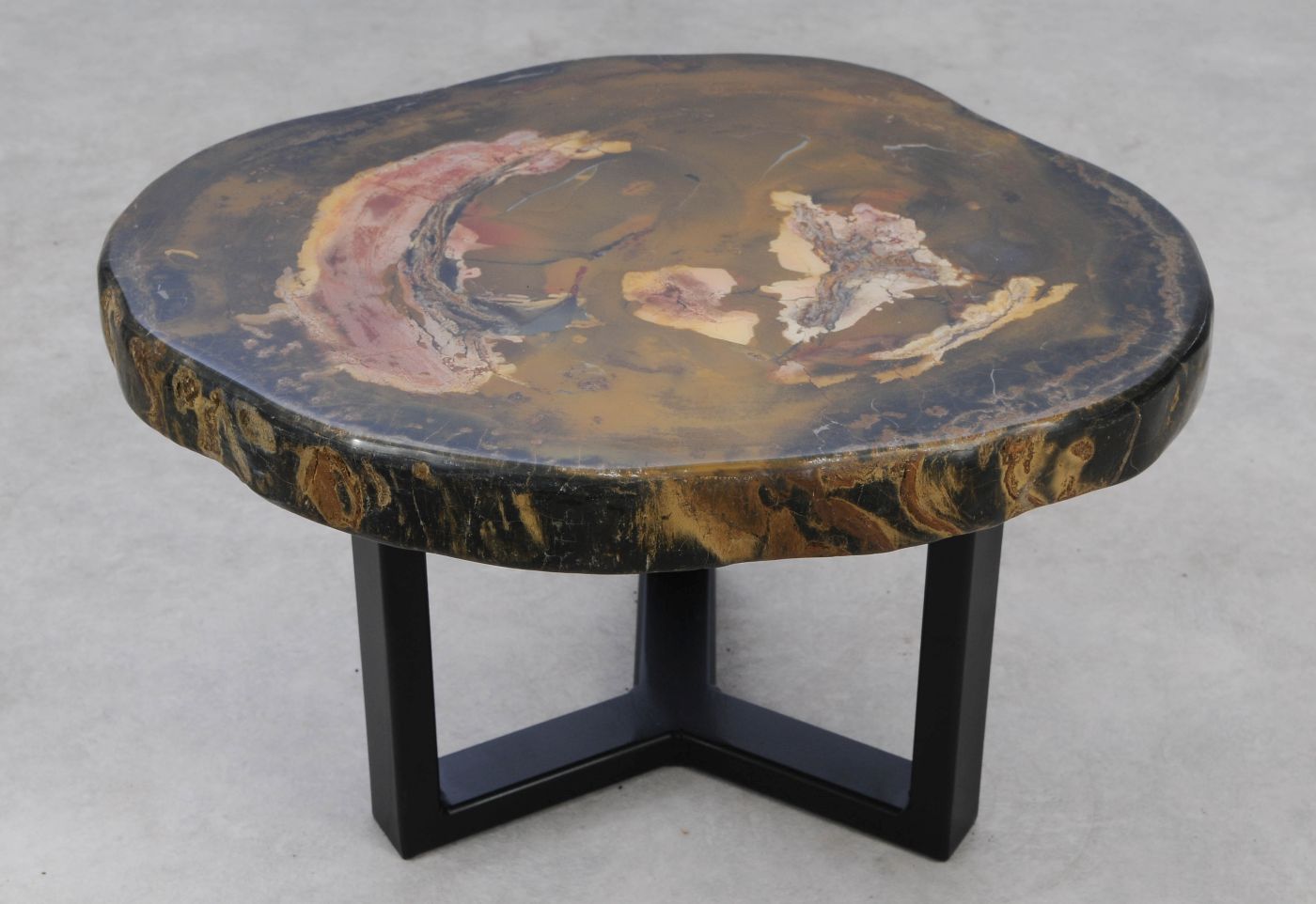 Deze unieke salontafel van versteend hout past in ieder interieur. Het tafelblad is gezaagd uit een grote versteende boom, die ongeveer 20 miljoen jaar geleden geleefd heeft. De kleuren zijn bepaald door de mineralen die het hout van deze boom vervangen hebben.