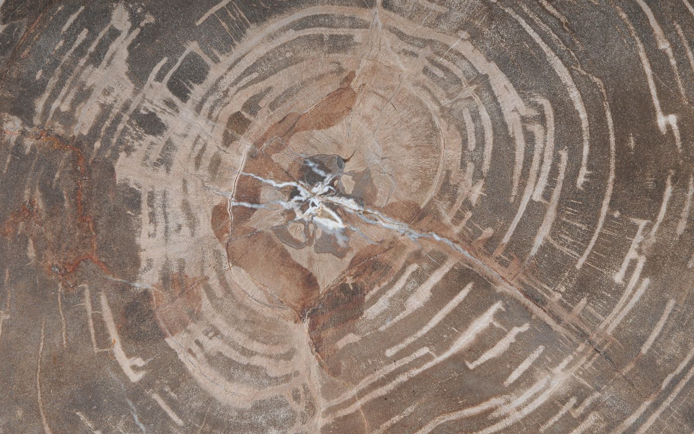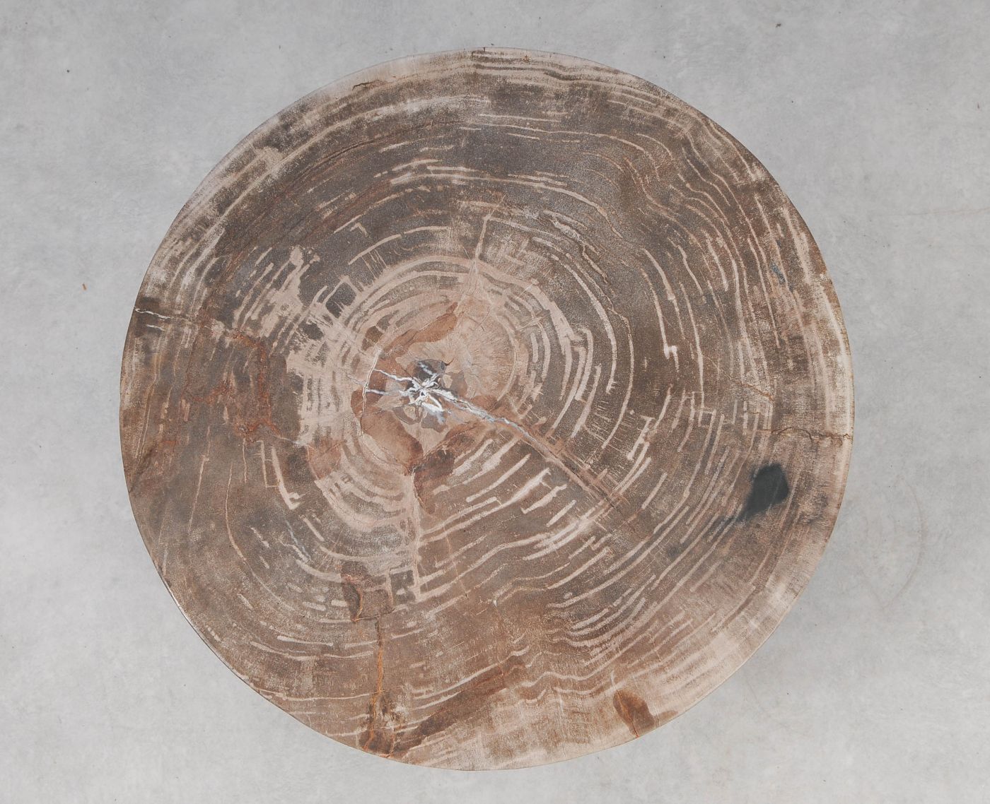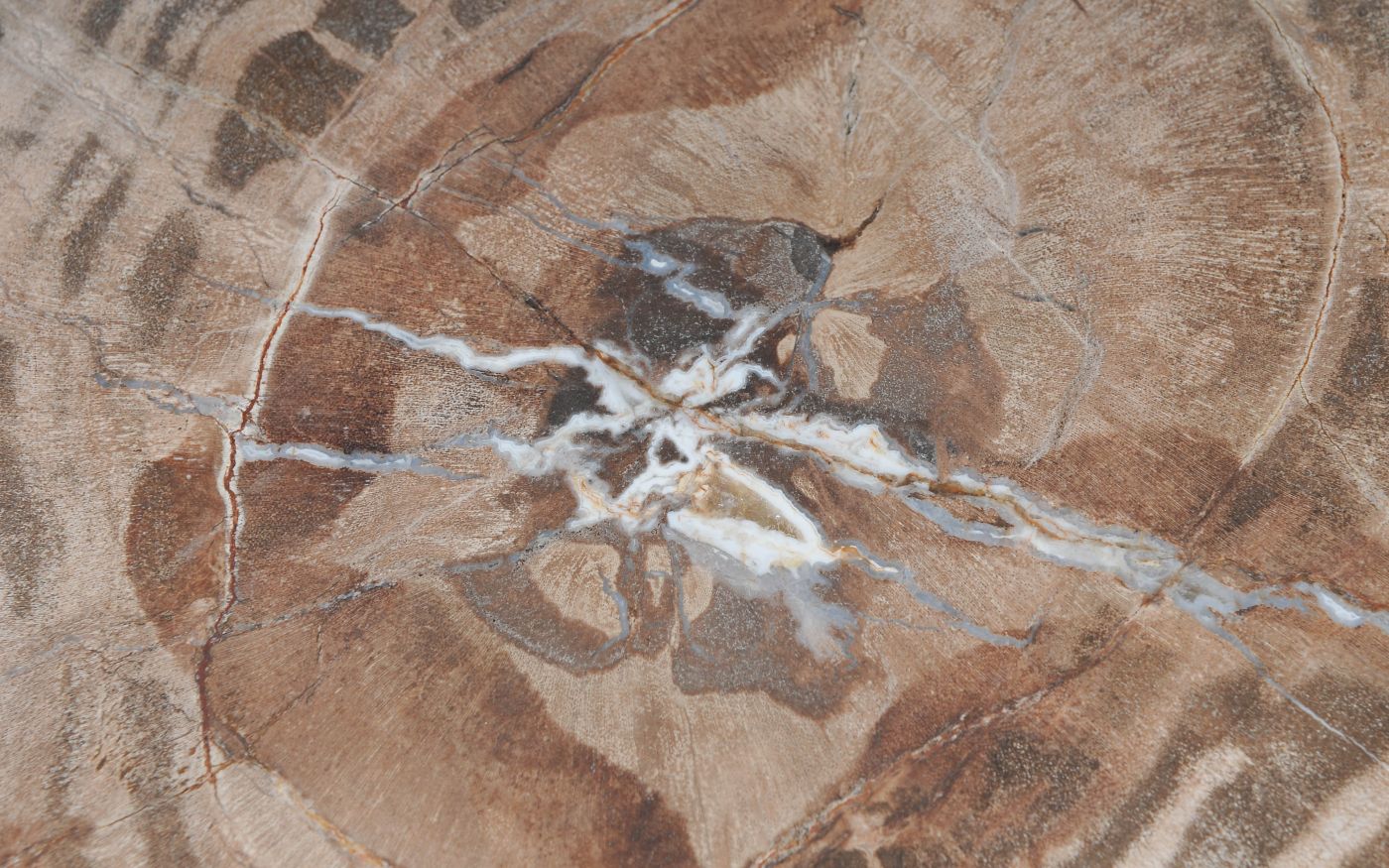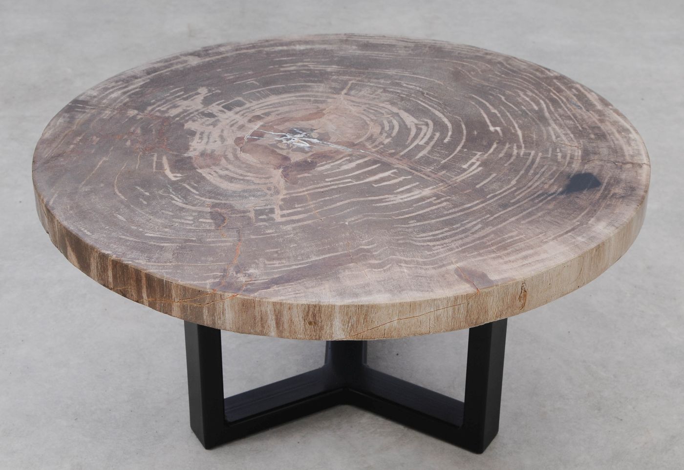 Deze unieke salontafel van versteend hout past in ieder interieur. Het tafelblad is gezaagd uit een grote versteende boom, die ongeveer 20 miljoen jaar geleden geleefd heeft. De kleuren zijn bepaald door de mineralen die het hout van deze boom vervangen hebben.