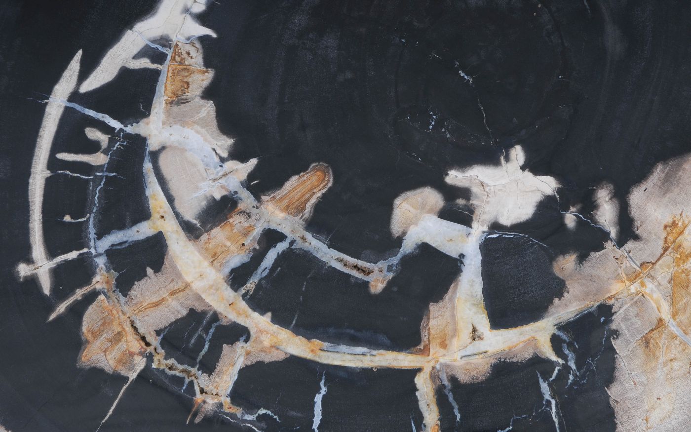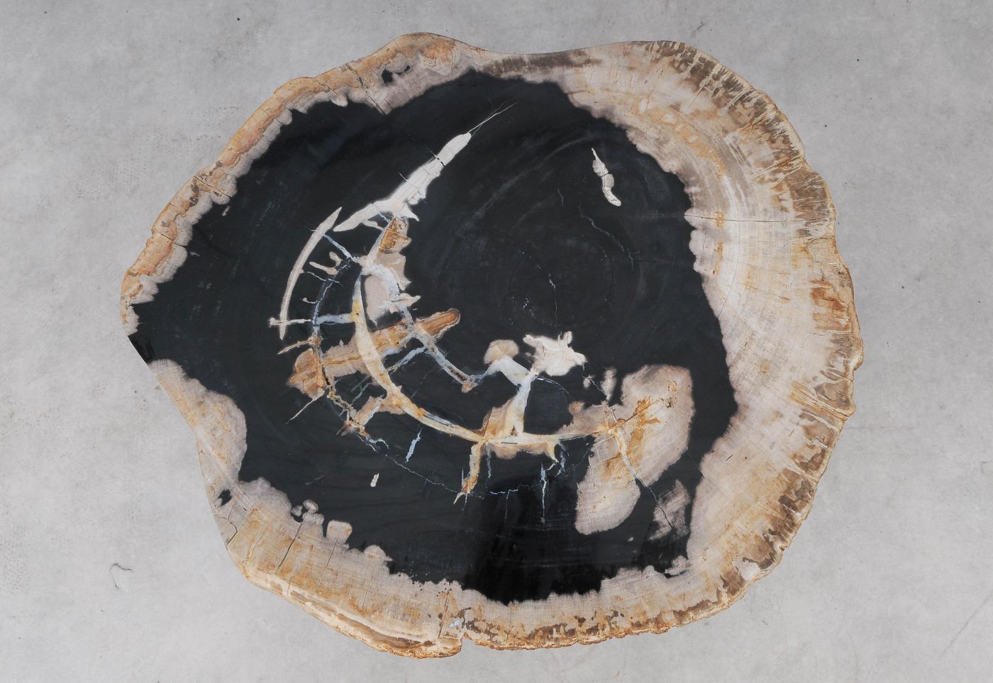 Deze unieke salontafel van versteend hout past in ieder interieur. Het tafelblad is gezaagd uit een grote versteende boom, die ongeveer 20 miljoen jaar geleden geleefd heeft. De kleuren zijn bepaald door de mineralen die het hout van deze boom vervangen hebben.