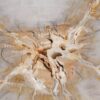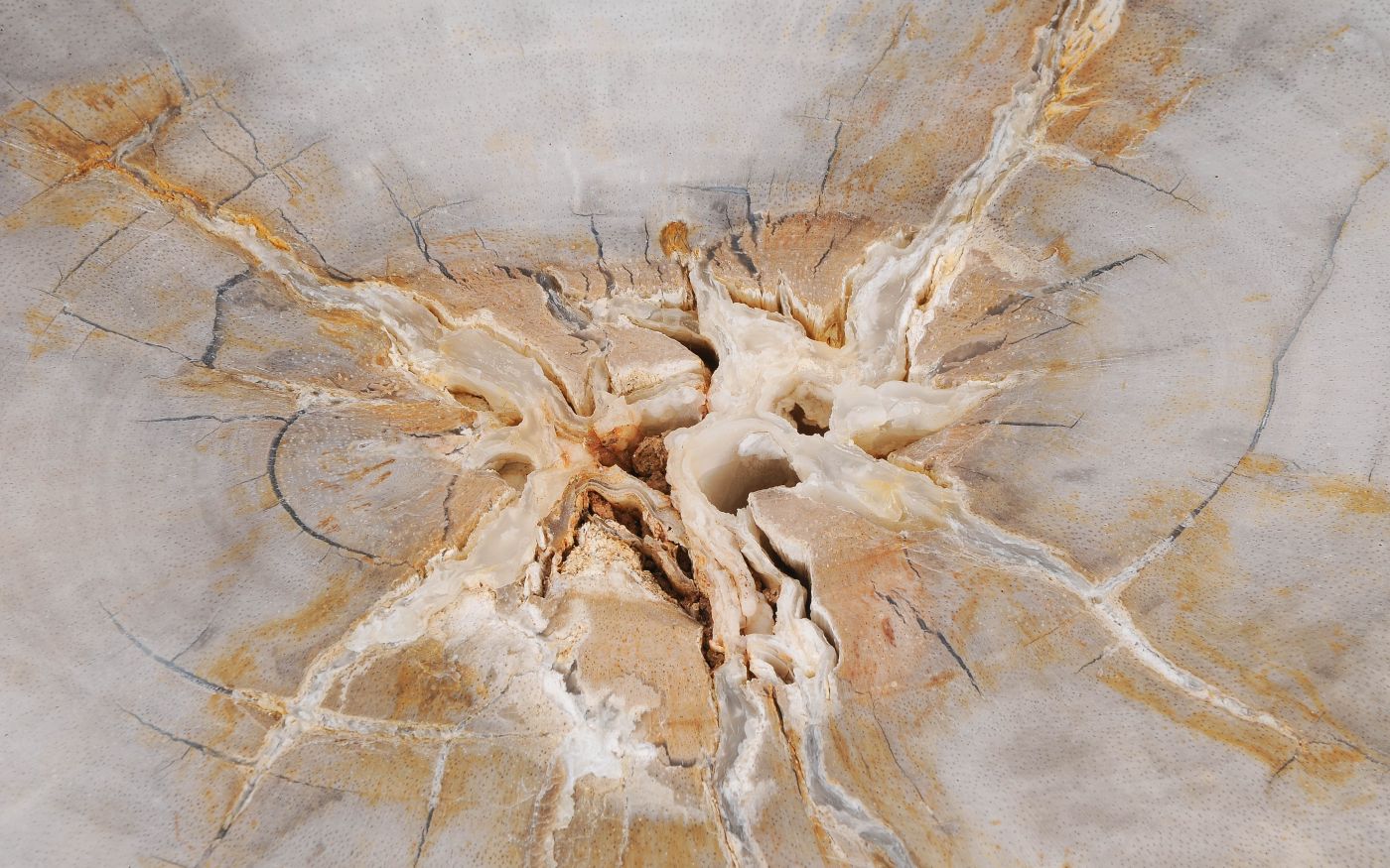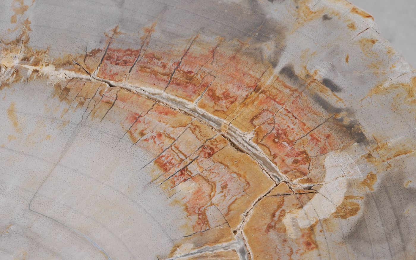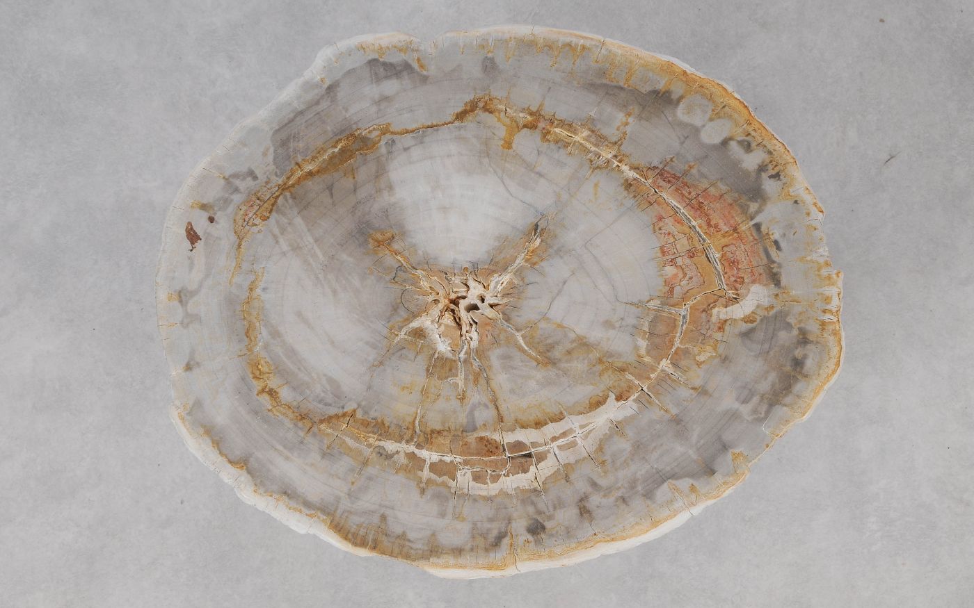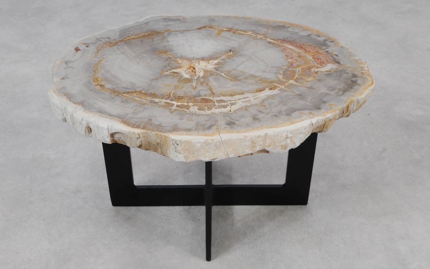 Deze unieke salontafel van versteend hout past in ieder interieur. Het tafelblad is gezaagd uit een grote versteende boom, die ongeveer 20 miljoen jaar geleden geleefd heeft. De kleuren zijn bepaald door de mineralen die het hout van deze boom vervangen hebben.