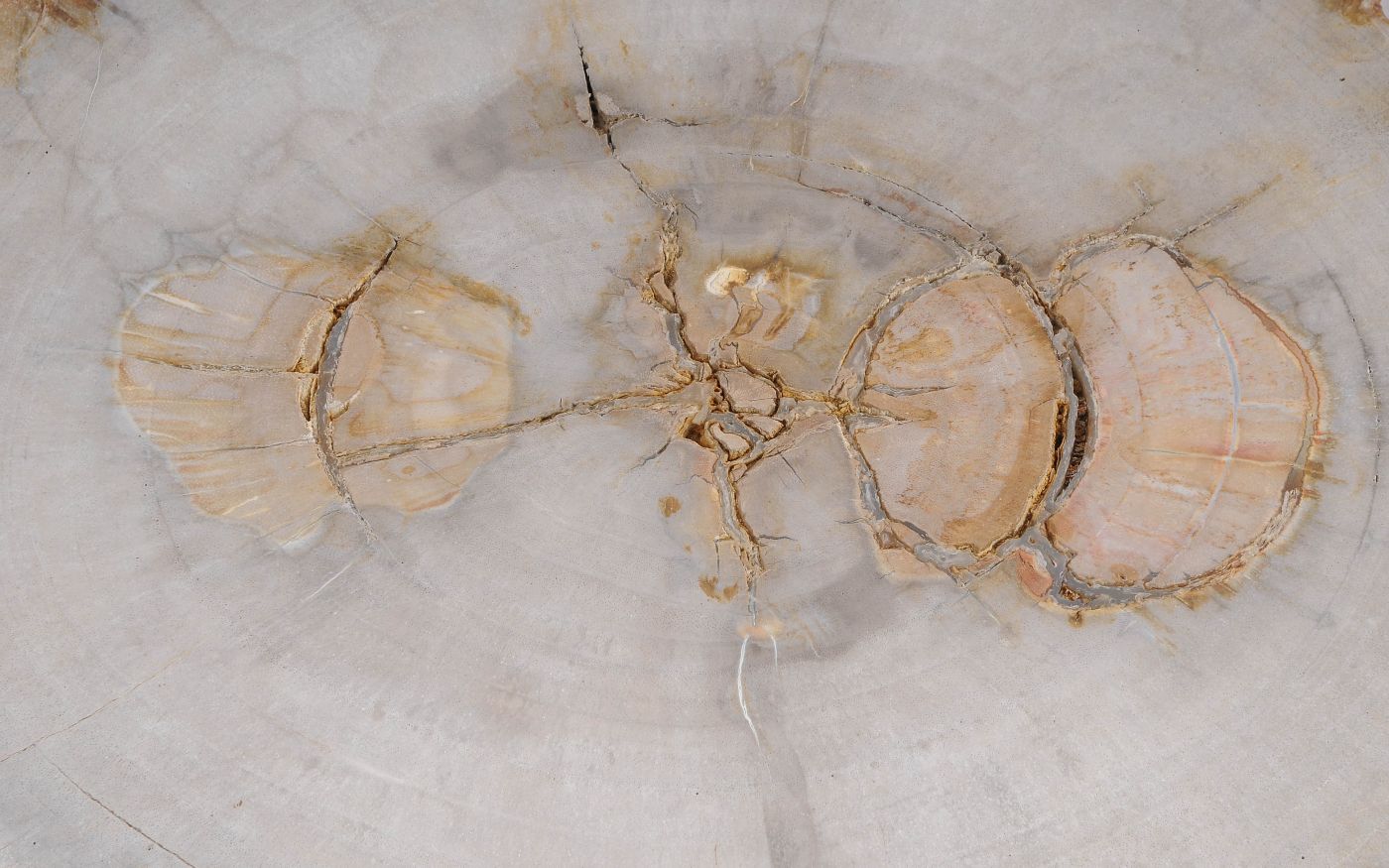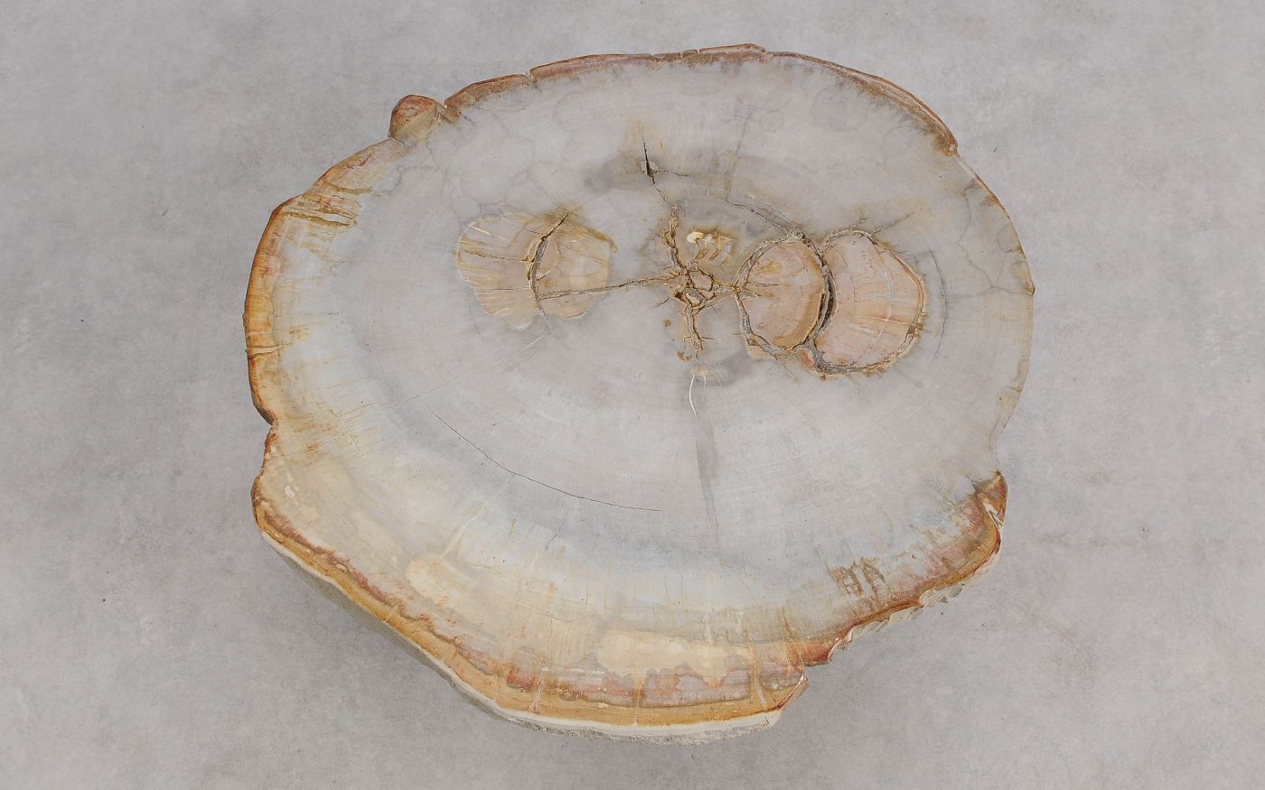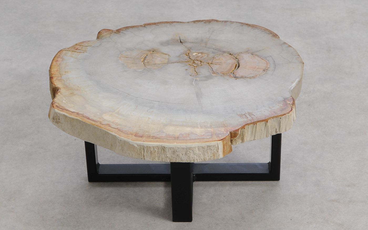Deze unieke salontafel van versteend hout past in ieder interieur. Het tafelblad is gezaagd uit een grote versteende boom, die ongeveer 20 miljoen jaar geleden geleefd heeft. De kleuren zijn bepaald door de mineralen die het hout van deze boom vervangen hebben.