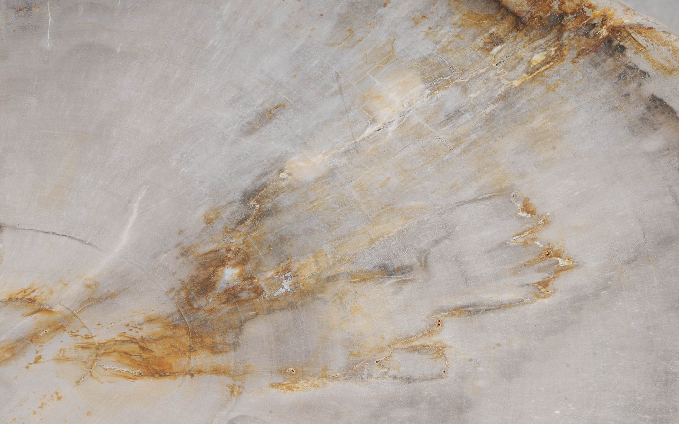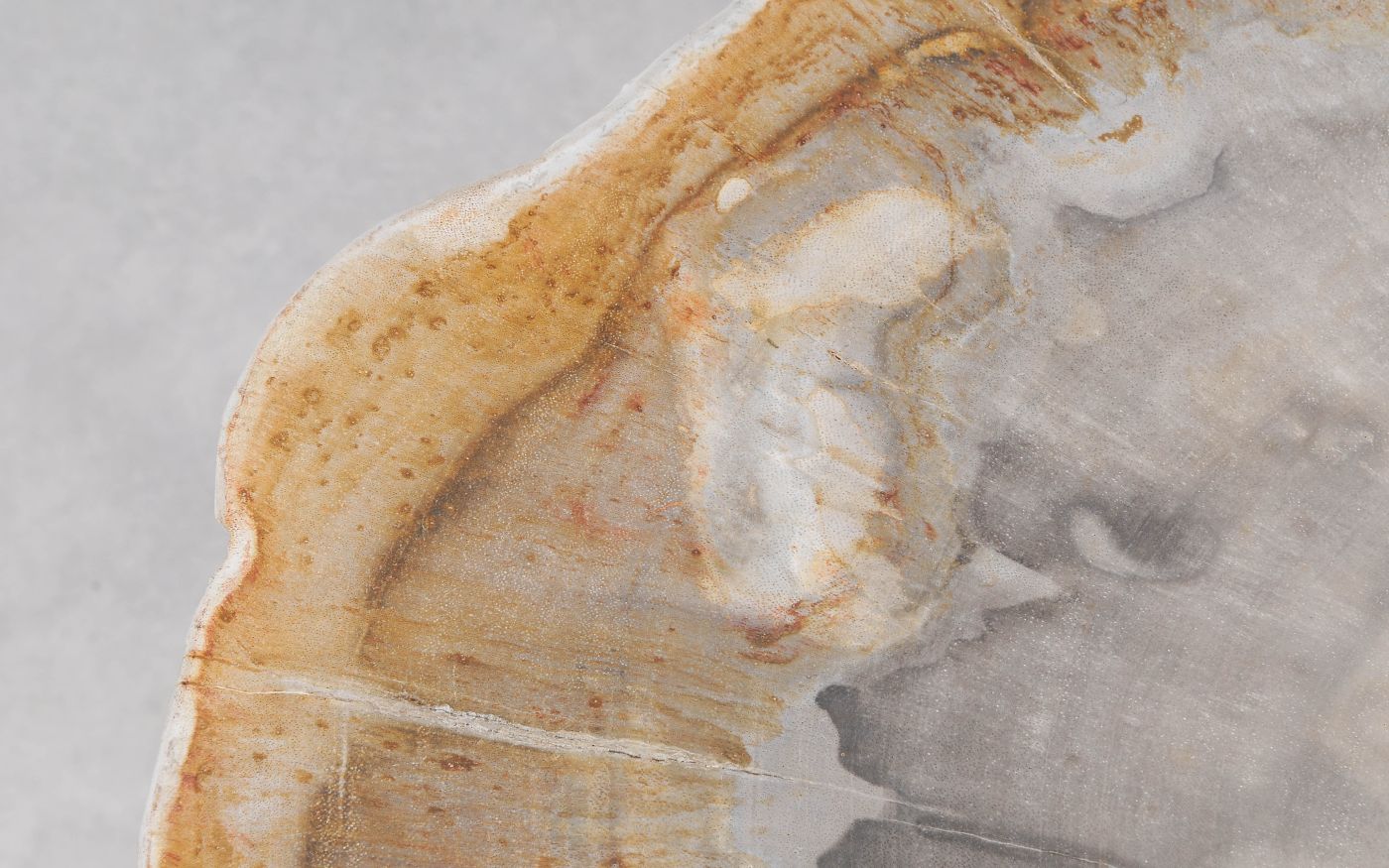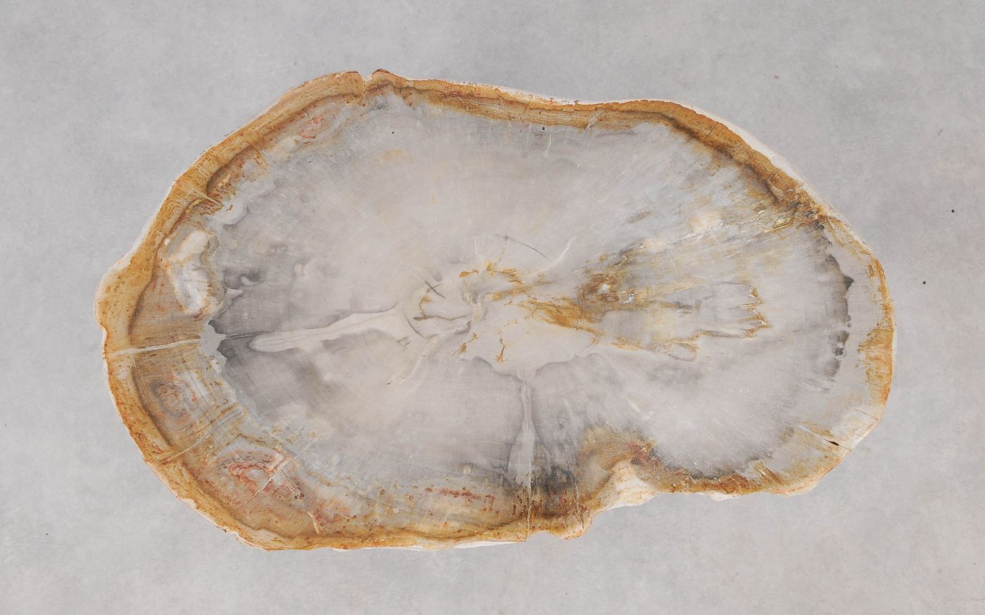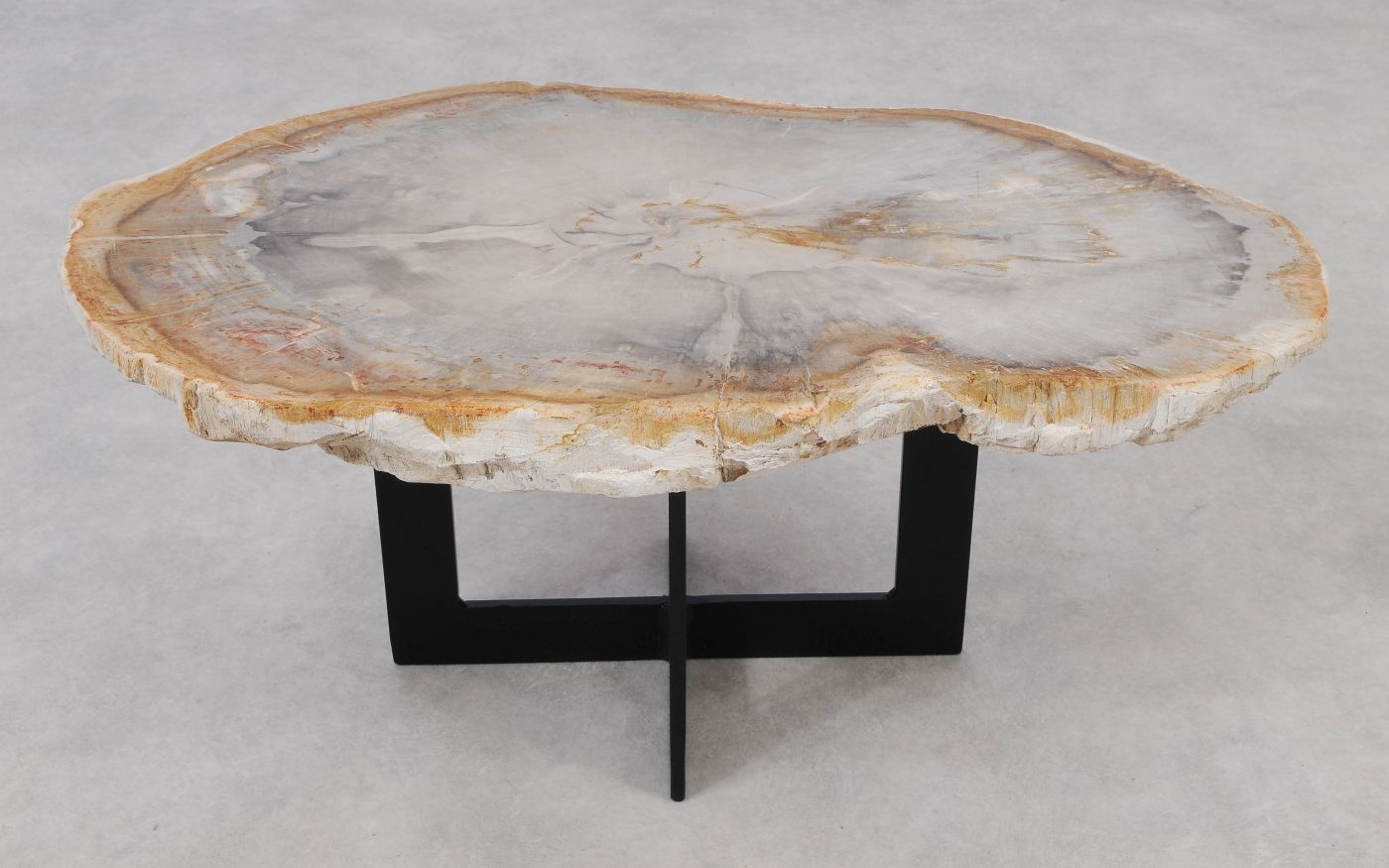 Deze unieke salontafel van versteend hout past in ieder interieur. Het tafelblad is gezaagd uit een grote versteende boom, die ongeveer 20 miljoen jaar geleden geleefd heeft. De kleuren zijn bepaald door de mineralen die het hout van deze boom vervangen hebben.
