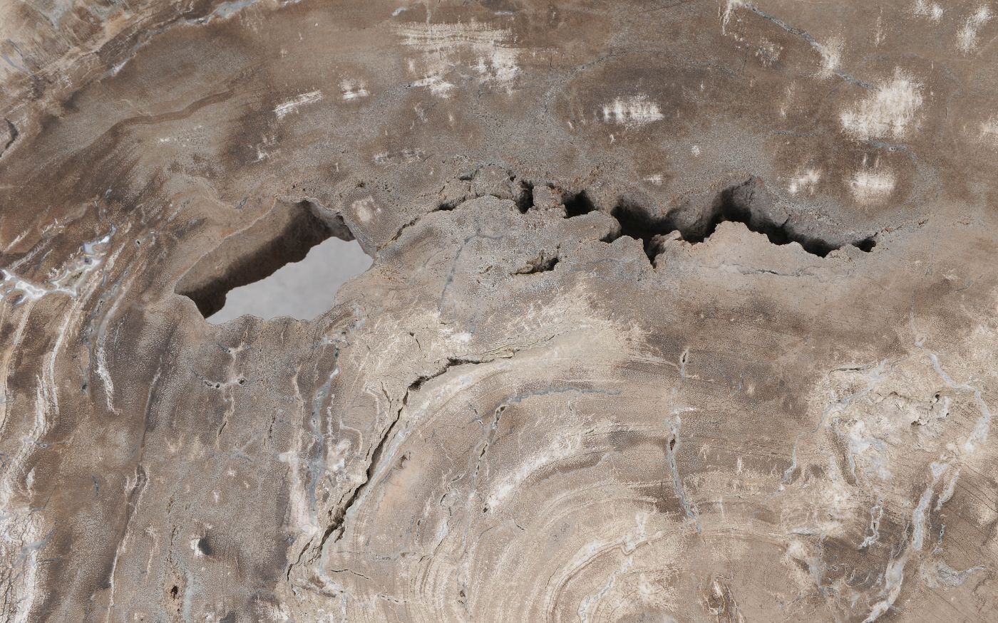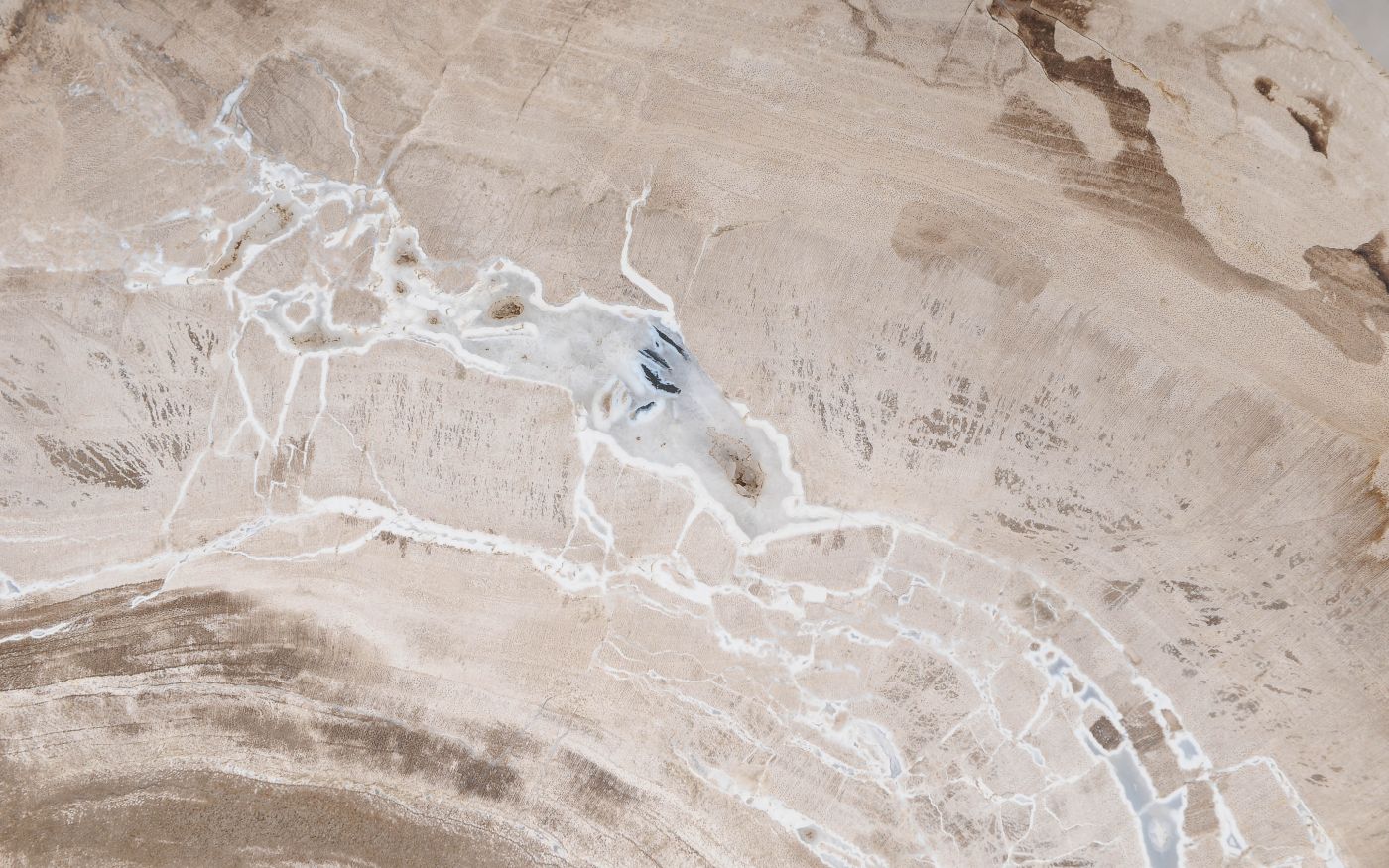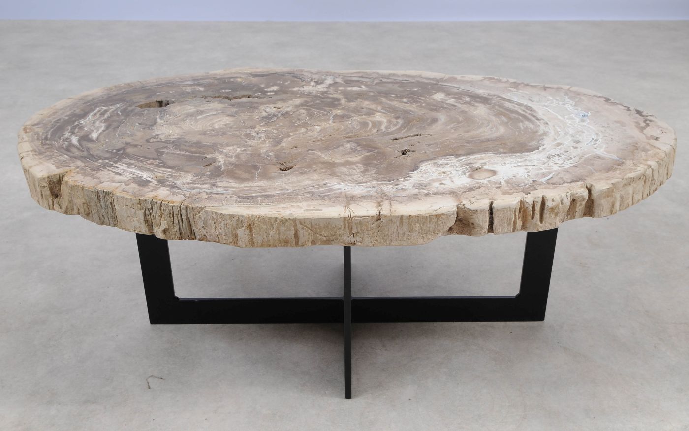 Deze unieke salontafel van versteend hout past in ieder interieur. Het tafelblad is gezaagd uit een grote versteende boom, die ongeveer 20 miljoen jaar geleden geleefd heeft. De kleuren zijn bepaald door de mineralen die het hout van deze boom vervangen hebben.