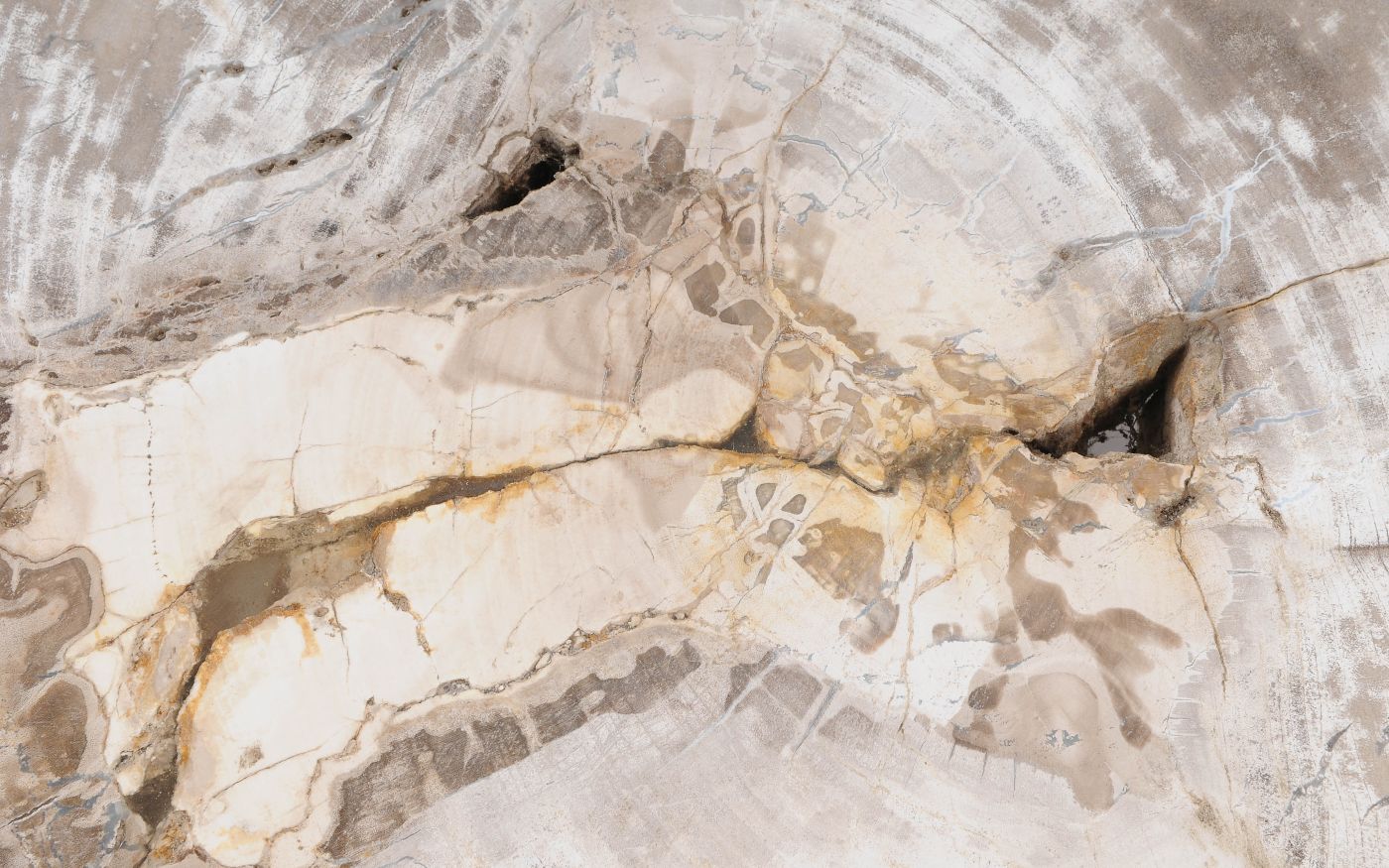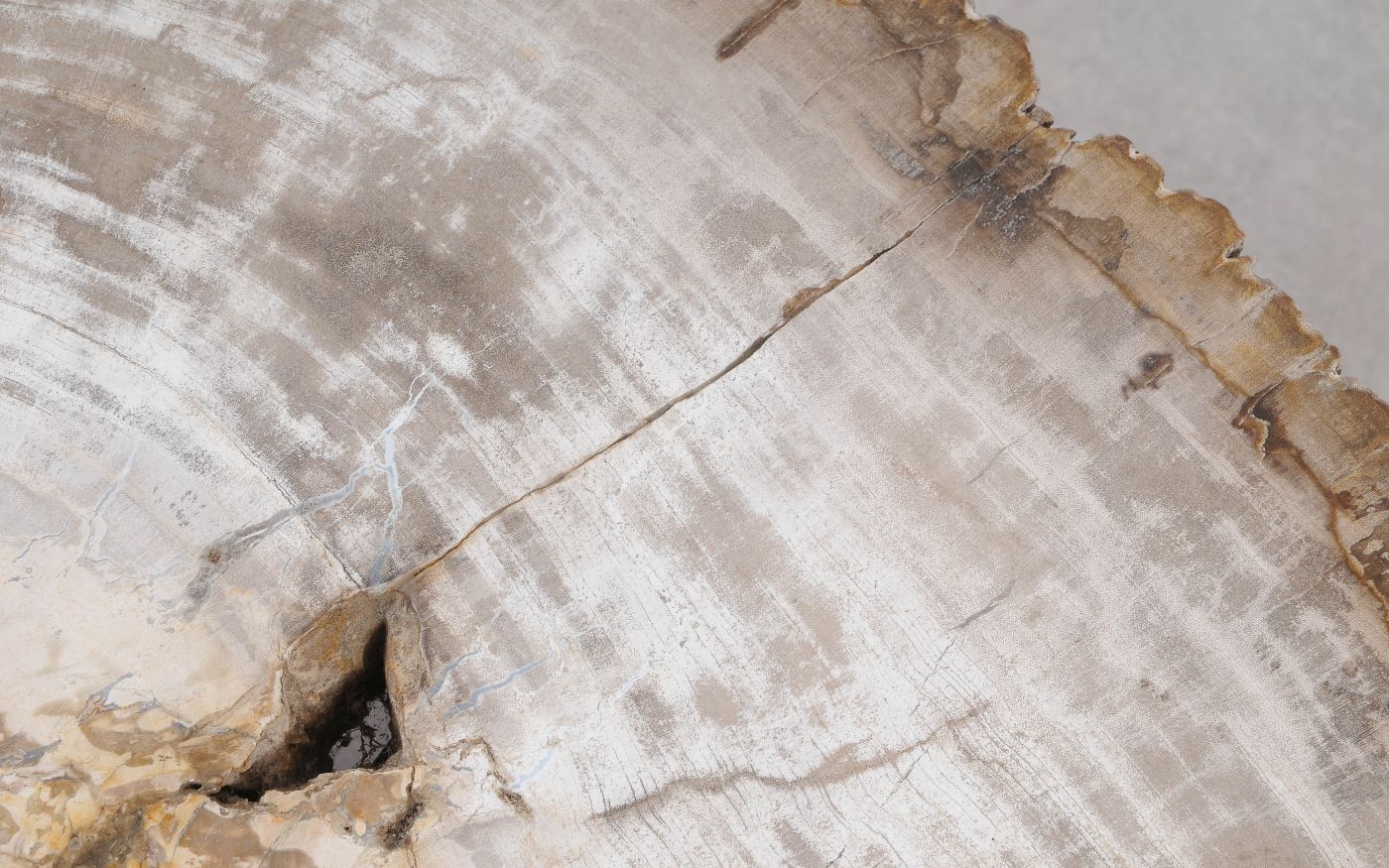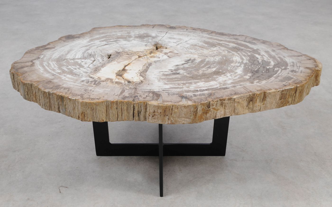 Deze unieke salontafel van versteend hout past in ieder interieur. Het tafelblad is gezaagd uit een grote versteende boom, die ongeveer 20 miljoen jaar geleden geleefd heeft. De kleuren zijn bepaald door de mineralen die het hout van deze boom vervangen hebben.
