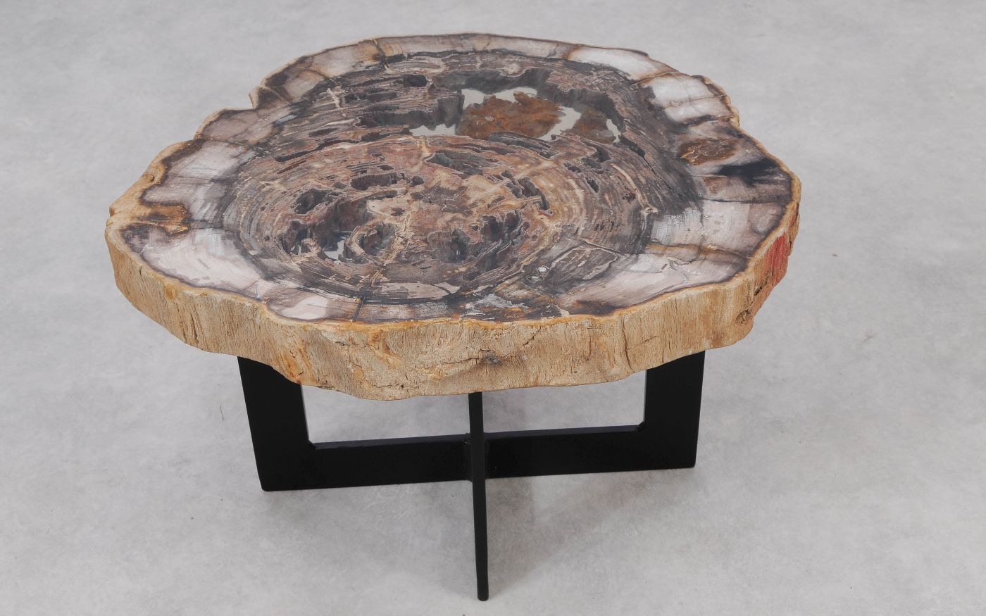 Het is erg moeilijk de schoonheid van versteend hout in een foto te vatten. We nodigen u daarom van harte uit deze salontafel in onze showroom te komen bekijken, maar bestellen via de website kan natuurlijk ook.