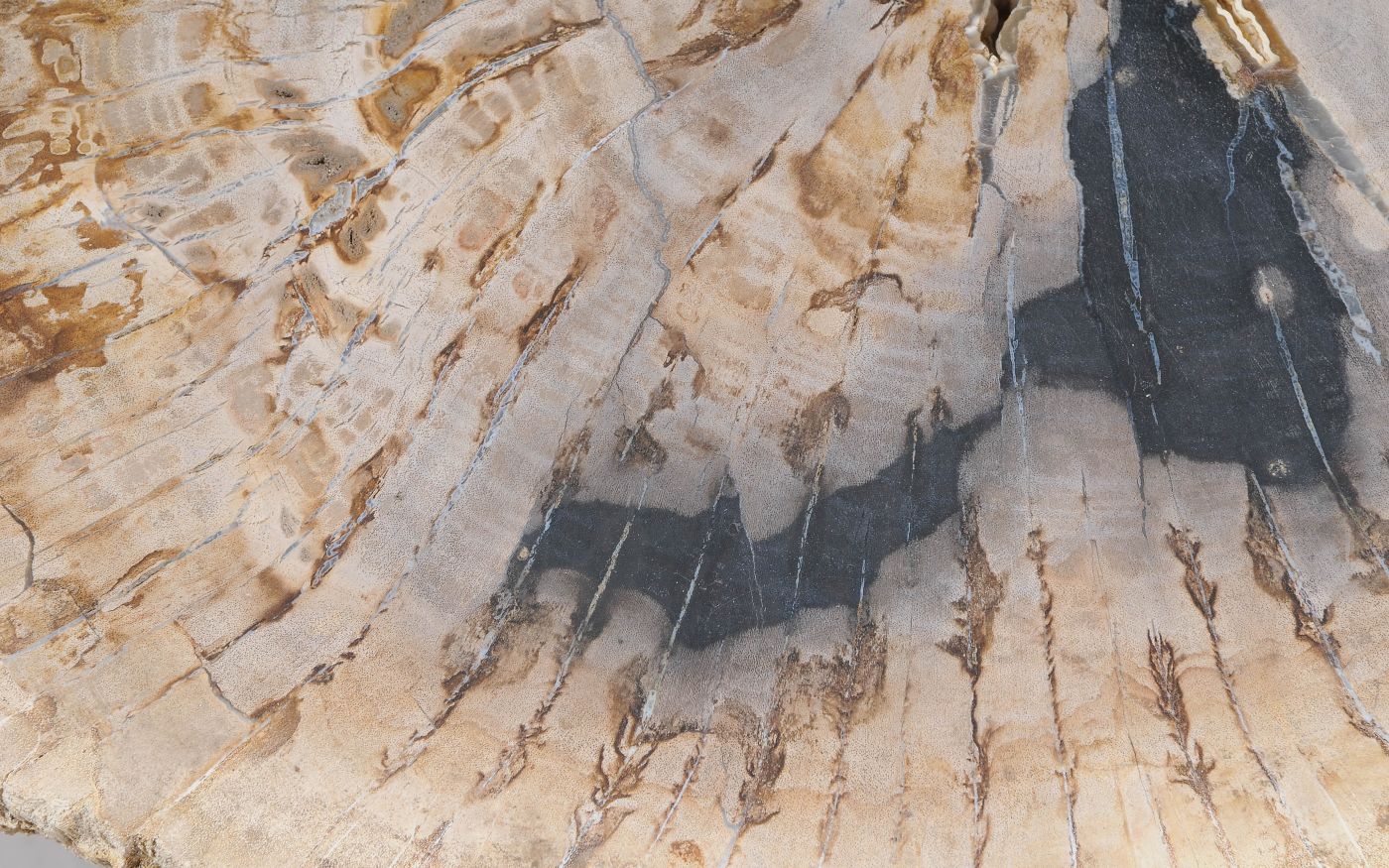 Deze unieke salontafel van versteend hout past in ieder interieur. Het tafelblad is gezaagd uit een grote versteende boom, die ongeveer 20 miljoen jaar geleden geleefd heeft. De kleuren zijn bepaald door de mineralen die het hout van deze boom vervangen hebben.