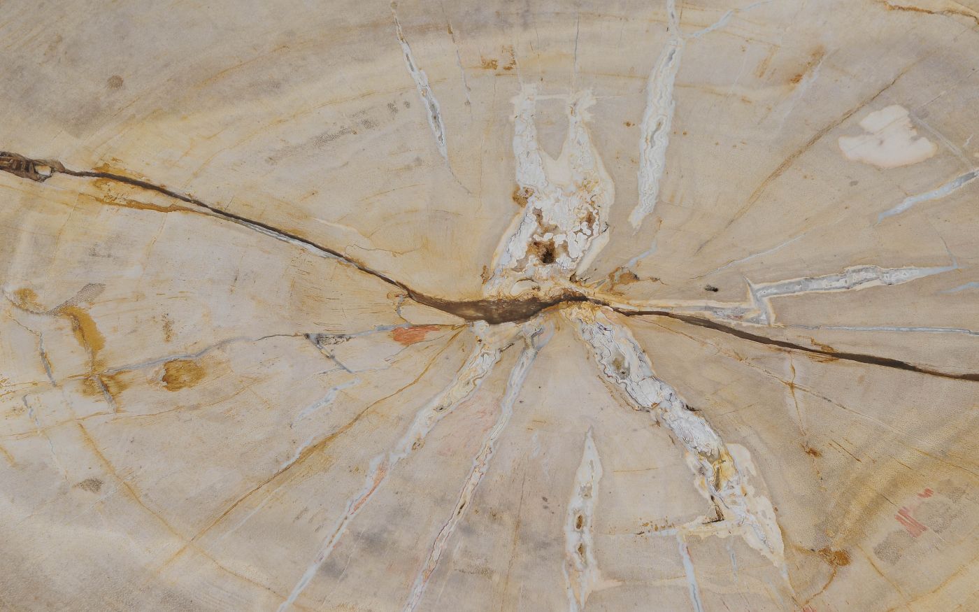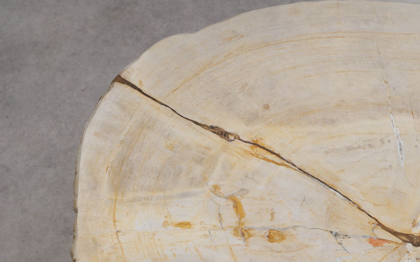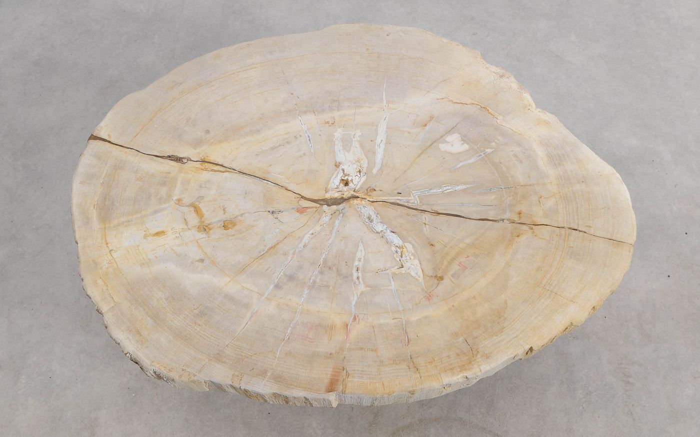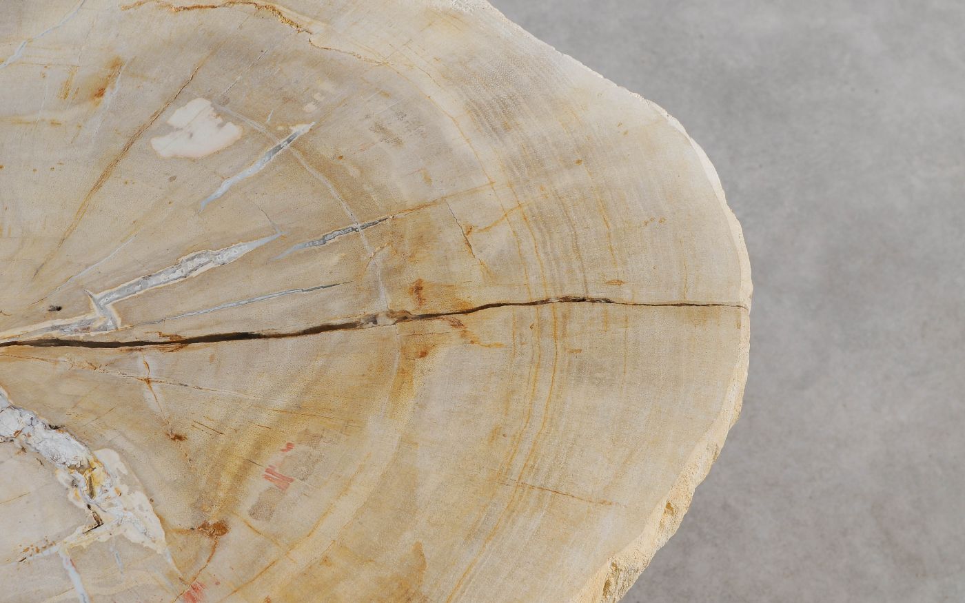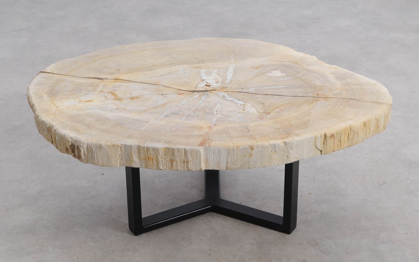 Deze unieke salontafel van versteend hout past in ieder interieur. Het tafelblad is gezaagd uit een grote versteende boom, die ongeveer 20 miljoen jaar geleden geleefd heeft. De kleuren zijn bepaald door de mineralen die het hout van deze boom vervangen hebben.
