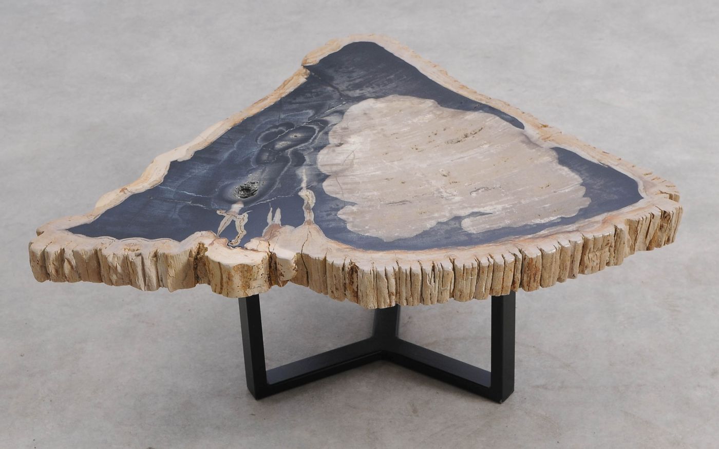 Het is erg moeilijk de schoonheid van versteend hout in een foto te vatten. We nodigen u daarom van harte uit deze salontafel in onze showroom te komen bekijken, maar bestellen via de website kan natuurlijk ook.