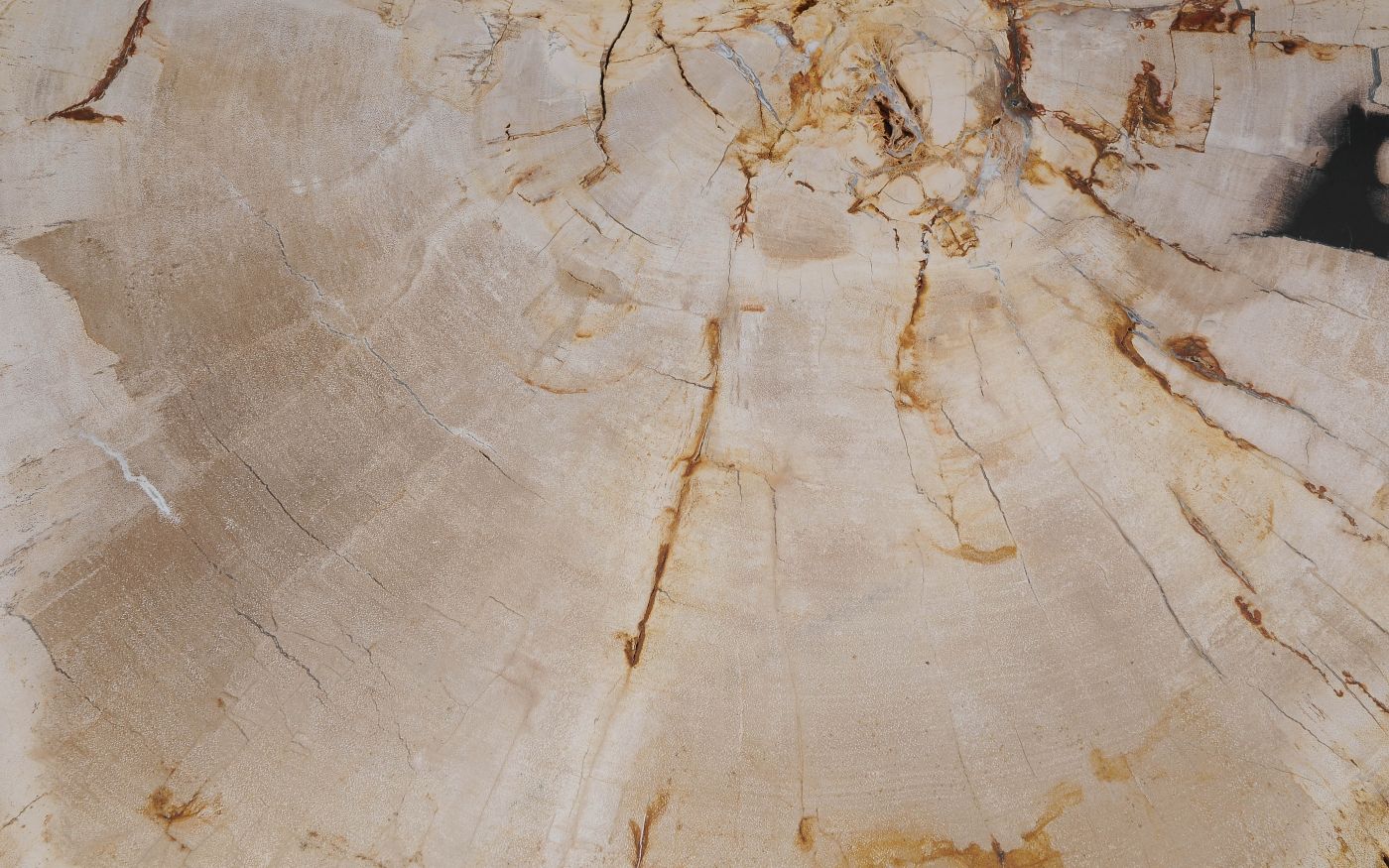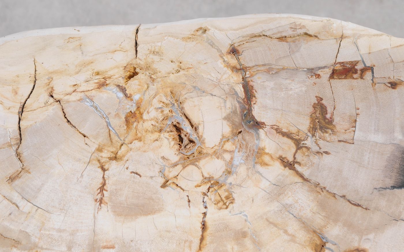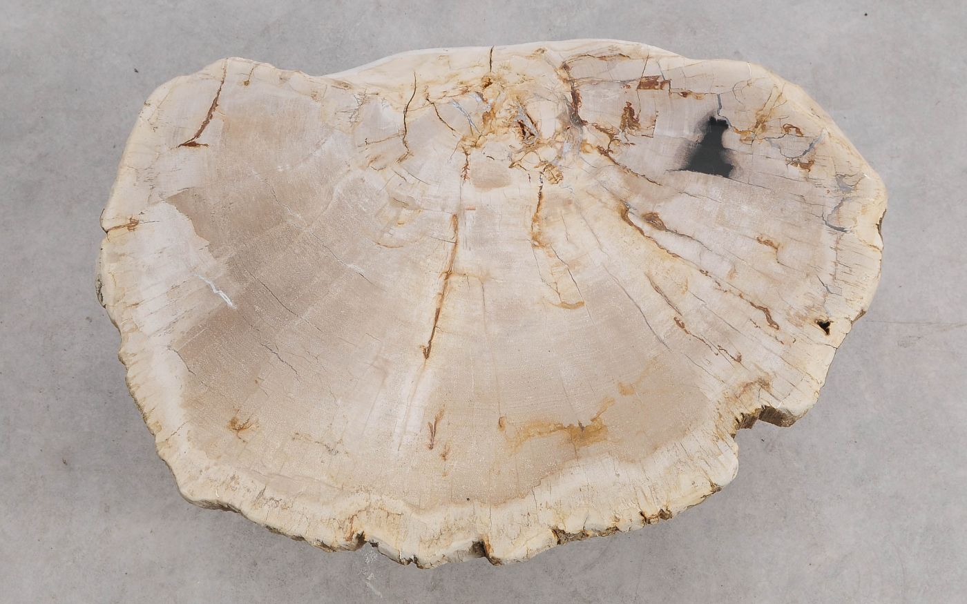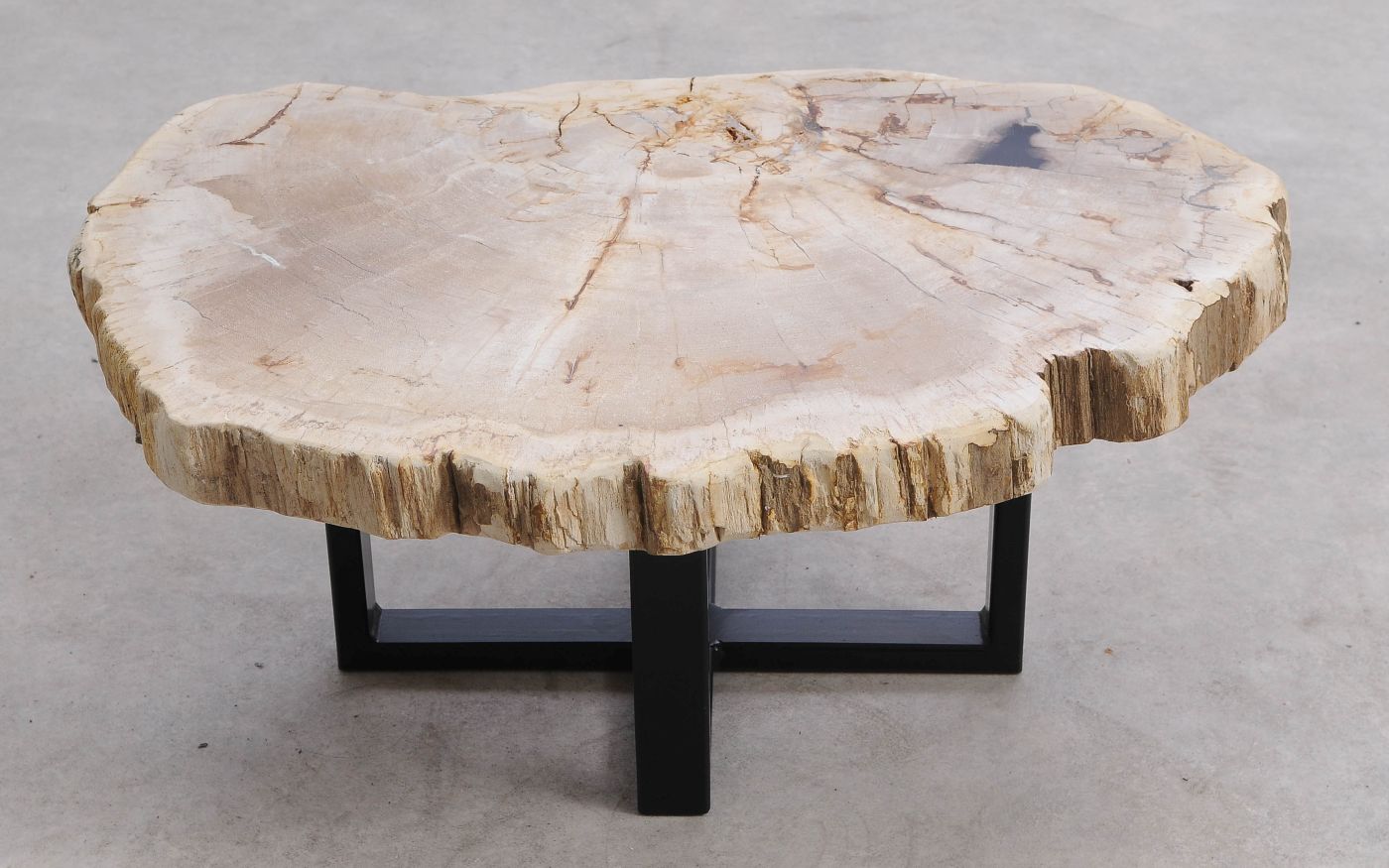 Deze unieke salontafel van versteend hout past in ieder interieur. Het tafelblad is gezaagd uit een grote versteende boom, die ongeveer 20 miljoen jaar geleden geleefd heeft. De kleuren zijn bepaald door de mineralen die het hout van deze boom vervangen hebben.