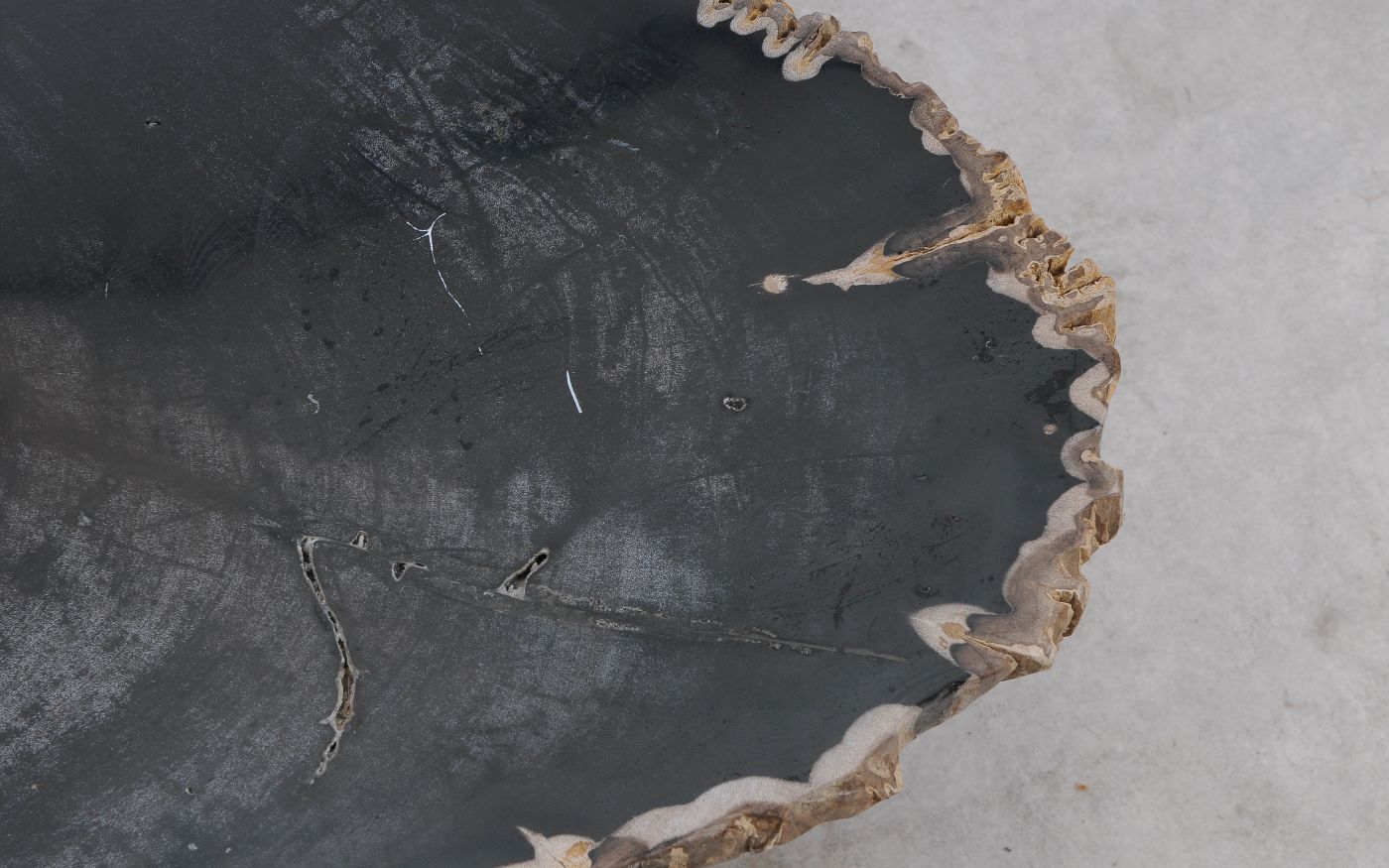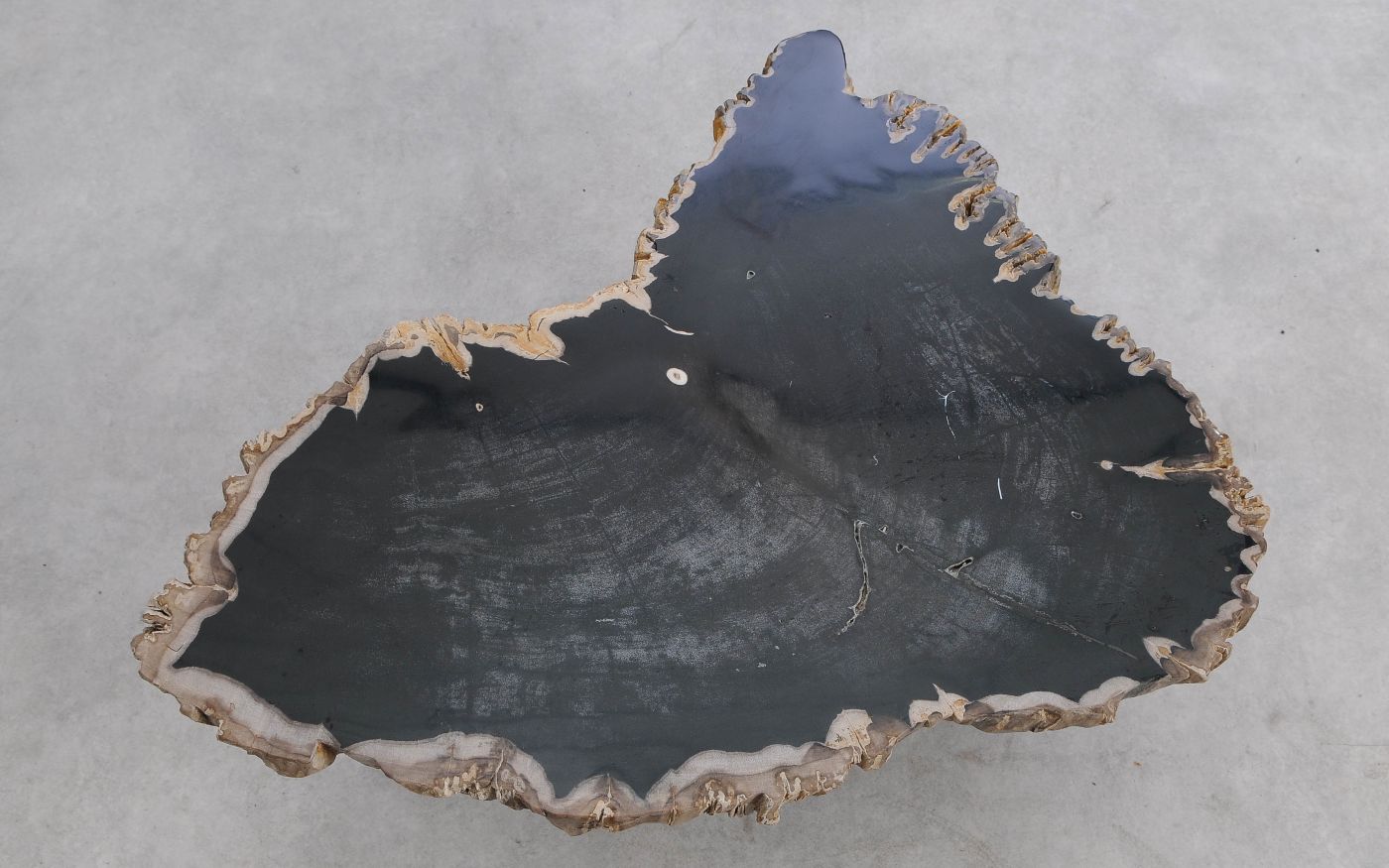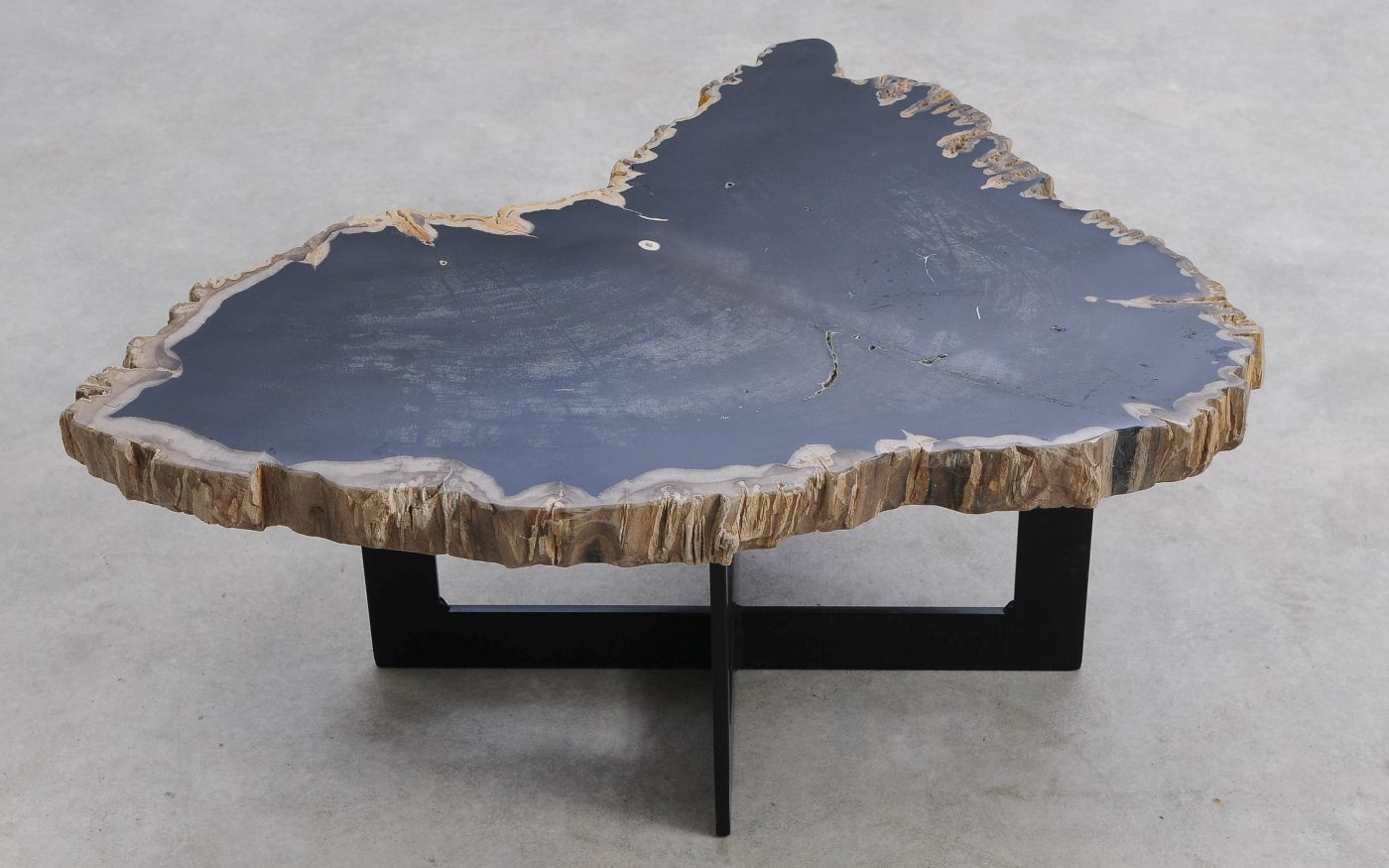 Deze unieke salontafel van versteend hout past in ieder interieur. Het tafelblad is gezaagd uit een grote versteende boom, die ongeveer 20 miljoen jaar geleden geleefd heeft. De kleuren zijn bepaald door de mineralen die het hout van deze boom vervangen hebben.