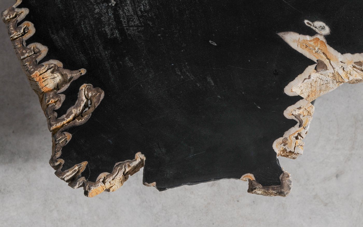- Kleuren versteend hout: Voornamelijk zwart