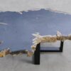 Deze unieke salontafel van versteend hout past in ieder interieur. Het tafelblad is gezaagd uit een grote versteende boom, die ongeveer 20 miljoen jaar geleden geleefd heeft. De kleuren zijn bepaald door de mineralen die het hout van deze boom vervangen hebben.