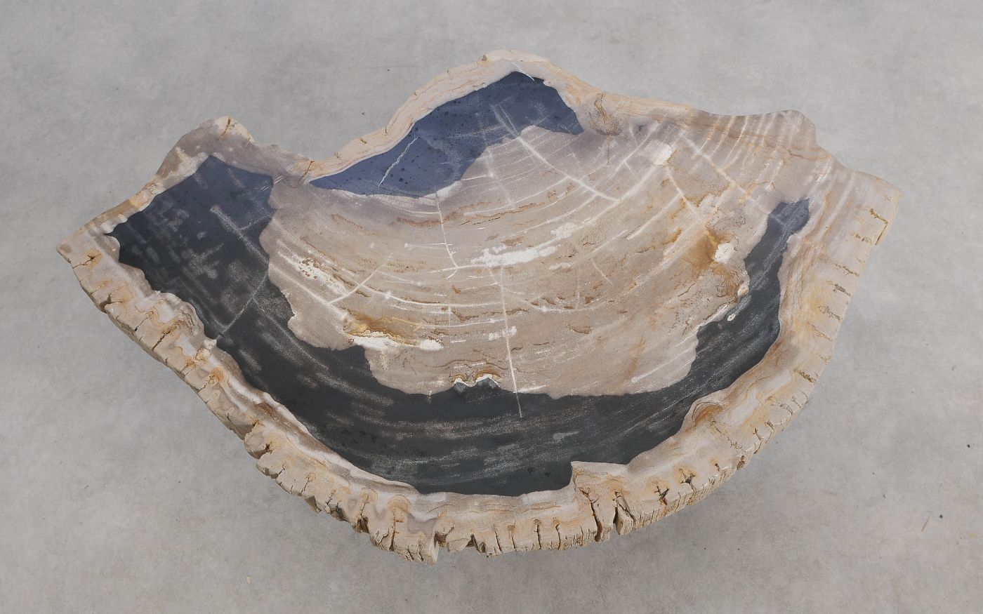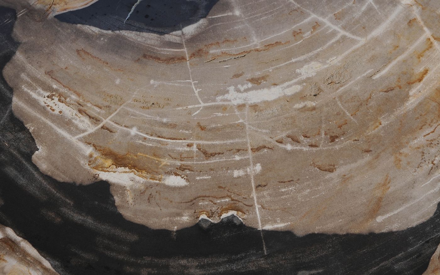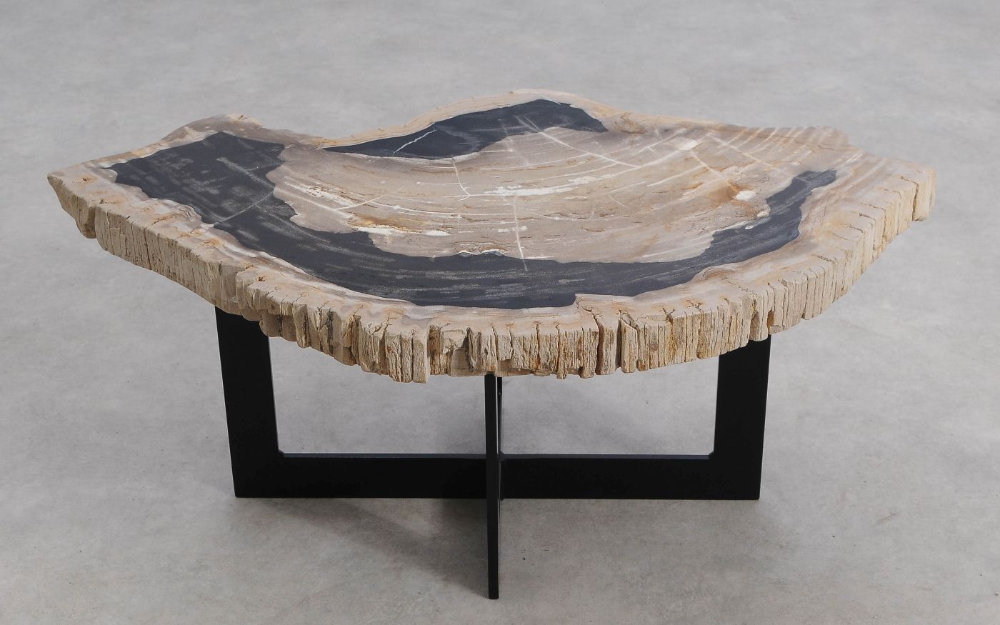 Deze unieke salontafel van versteend hout past in ieder interieur. Het tafelblad is gezaagd uit een grote versteende boom, die ongeveer 20 miljoen jaar geleden geleefd heeft. De kleuren zijn bepaald door de mineralen die het hout van deze boom vervangen hebben.