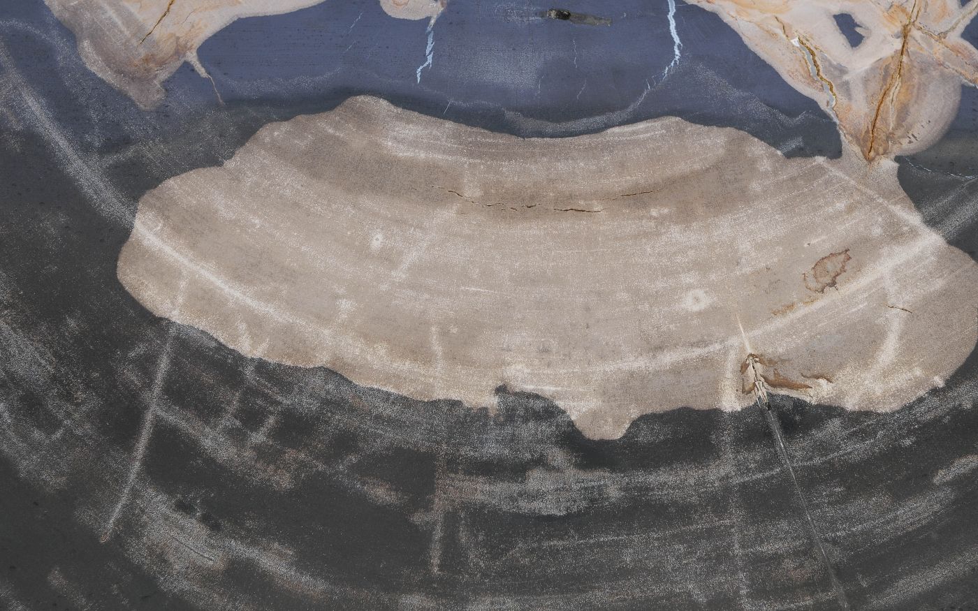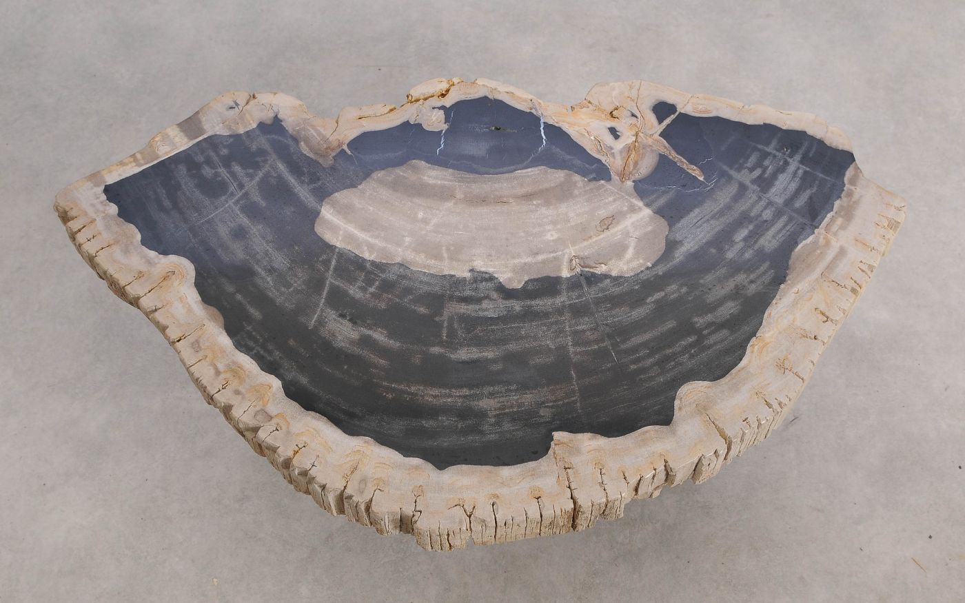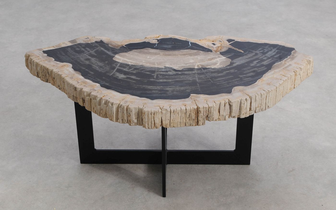 Deze unieke salontafel van versteend hout past in ieder interieur. Het tafelblad is gezaagd uit een grote versteende boom, die ongeveer 20 miljoen jaar geleden geleefd heeft. De kleuren zijn bepaald door de mineralen die het hout van deze boom vervangen hebben.