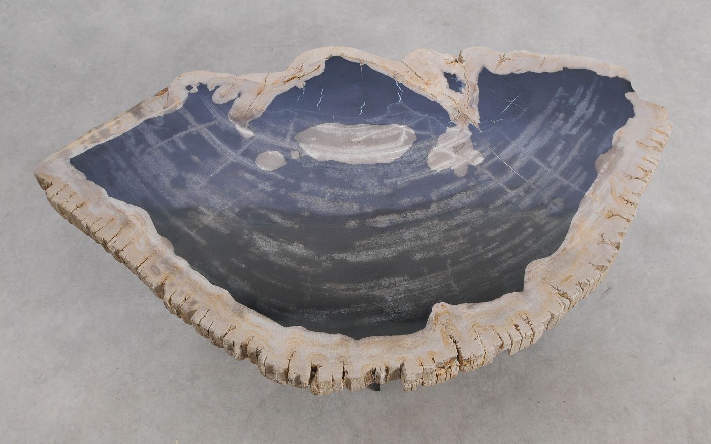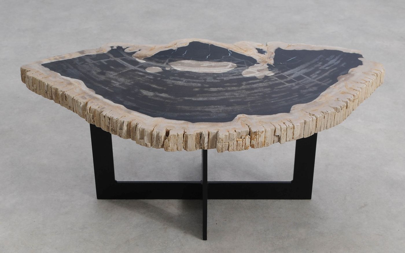 Deze unieke salontafel van versteend hout past in ieder interieur. Het tafelblad is gezaagd uit een grote versteende boom, die ongeveer 20 miljoen jaar geleden geleefd heeft. De kleuren zijn bepaald door de mineralen die het hout van deze boom vervangen hebben.
