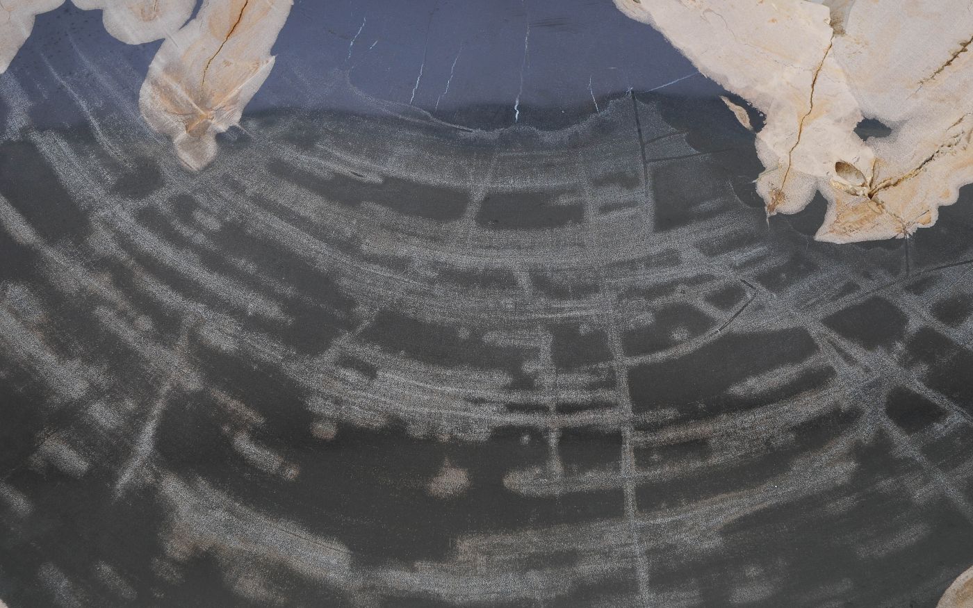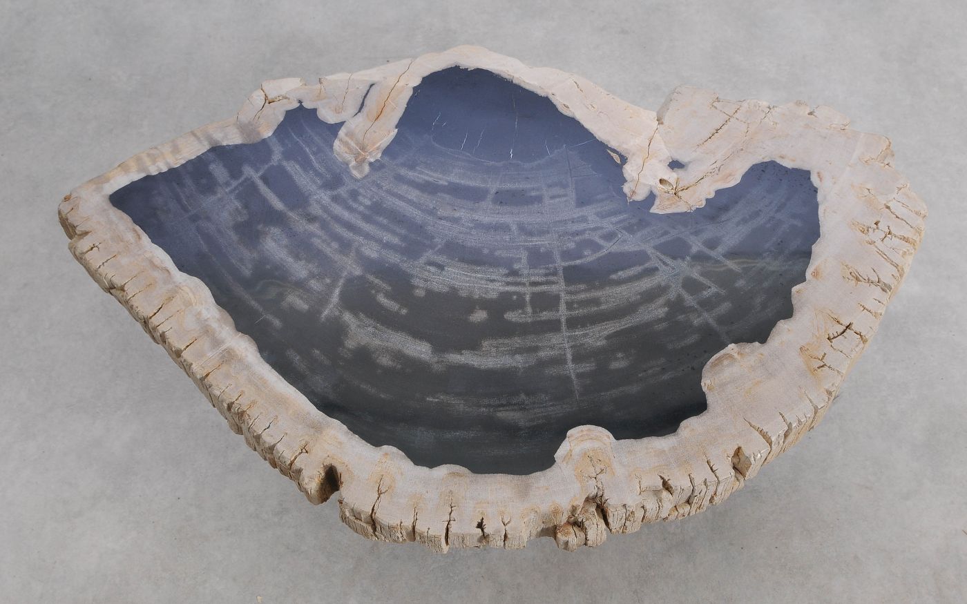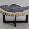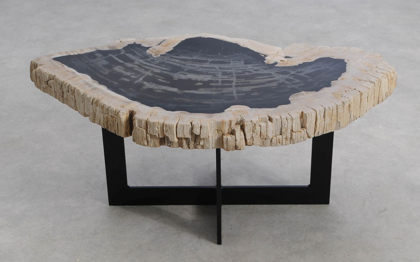 Deze unieke salontafel van versteend hout past in ieder interieur. Het tafelblad is gezaagd uit een grote versteende boom, die ongeveer 20 miljoen jaar geleden geleefd heeft. De kleuren zijn bepaald door de mineralen die het hout van deze boom vervangen hebben.