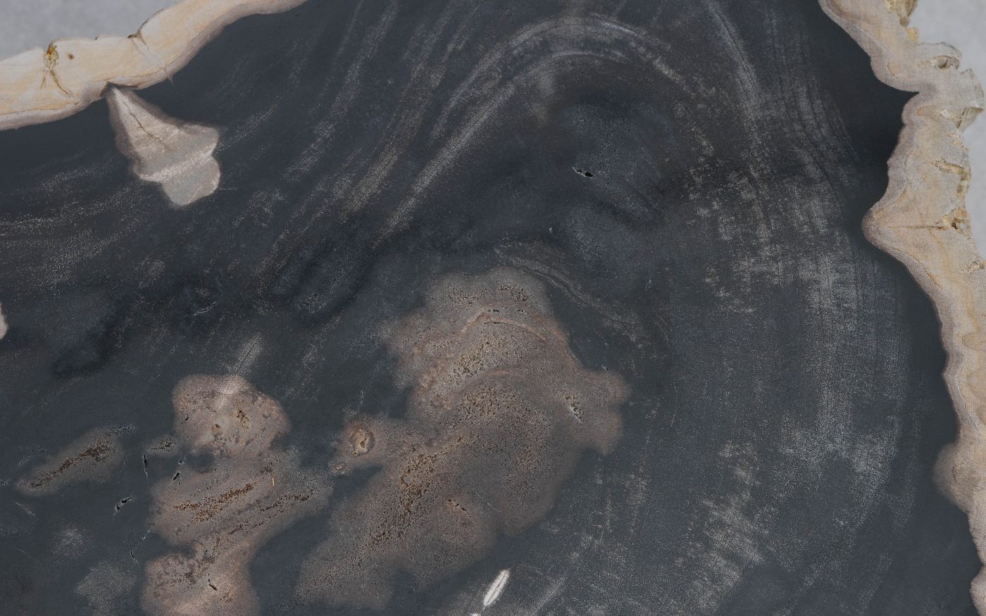 - Kleuren versteend hout: Gemengde kleuren, Voornamelijk zwart