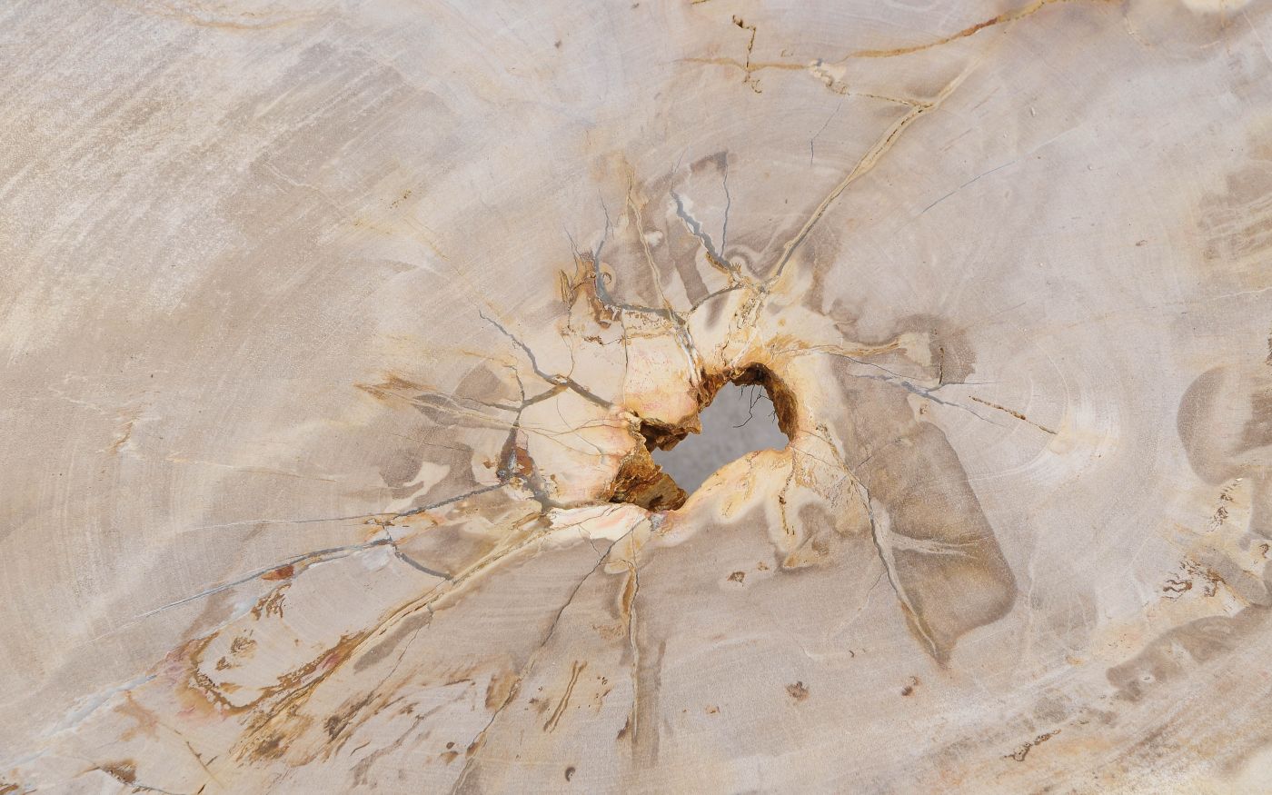 Deze unieke salontafel van versteend hout past in ieder interieur. Het tafelblad is gezaagd uit een grote versteende boom, die ongeveer 20 miljoen jaar geleden geleefd heeft. De kleuren zijn bepaald door de mineralen die het hout van deze boom vervangen hebben.