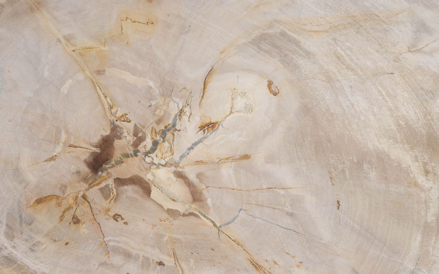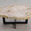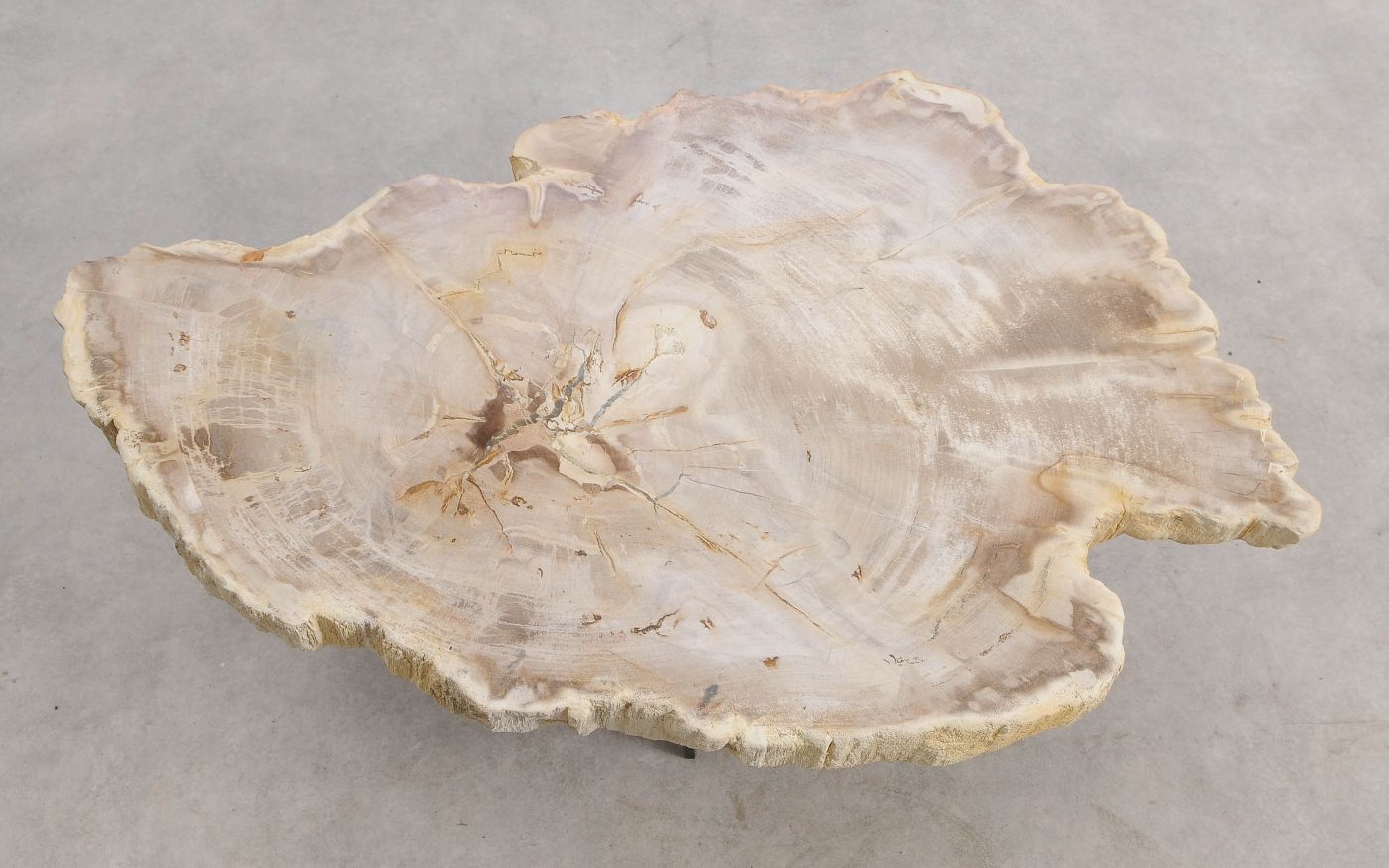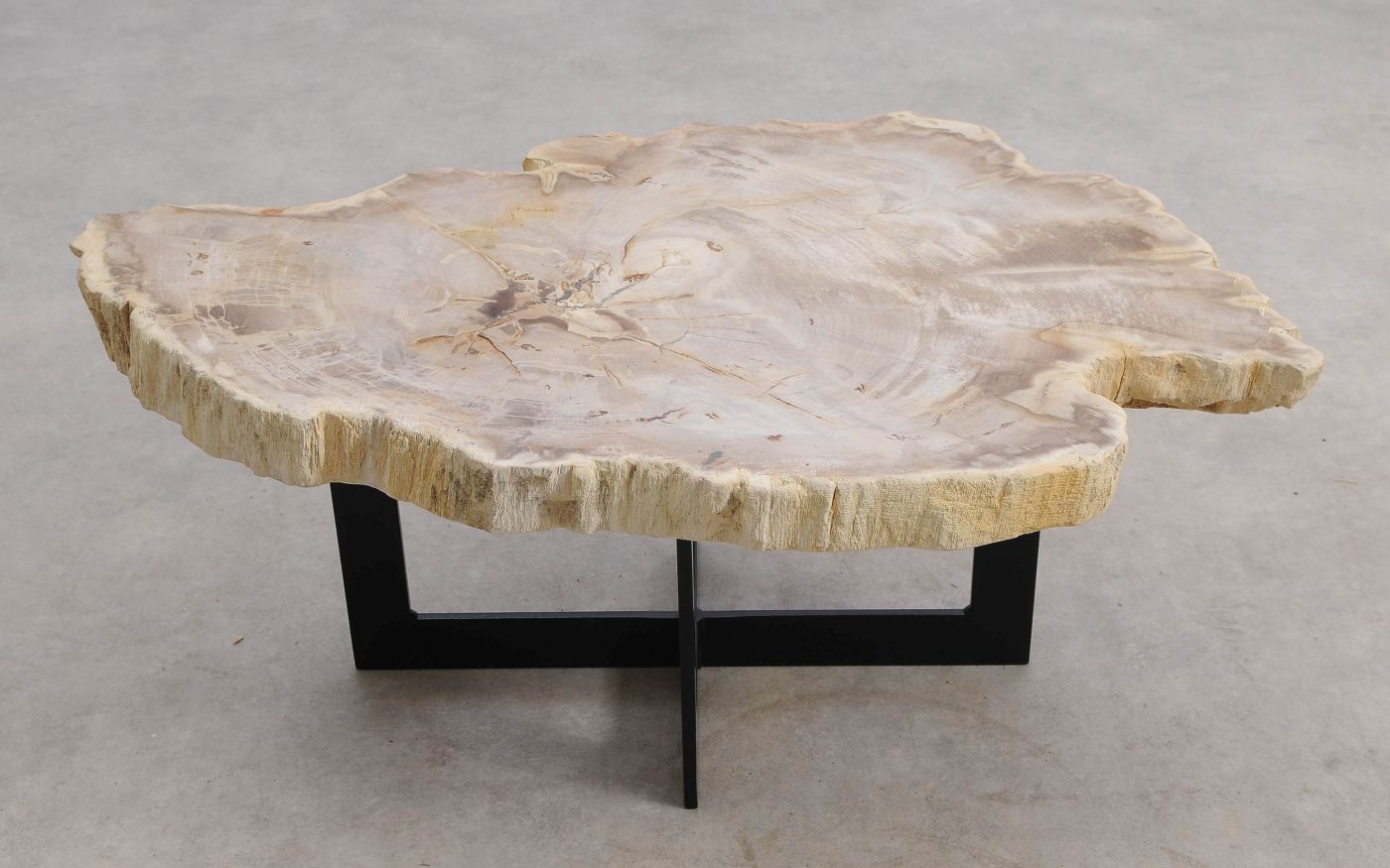 Deze unieke salontafel van versteend hout past in ieder interieur. Het tafelblad is gezaagd uit een grote versteende boom, die ongeveer 20 miljoen jaar geleden geleefd heeft. De kleuren zijn bepaald door de mineralen die het hout van deze boom vervangen hebben.