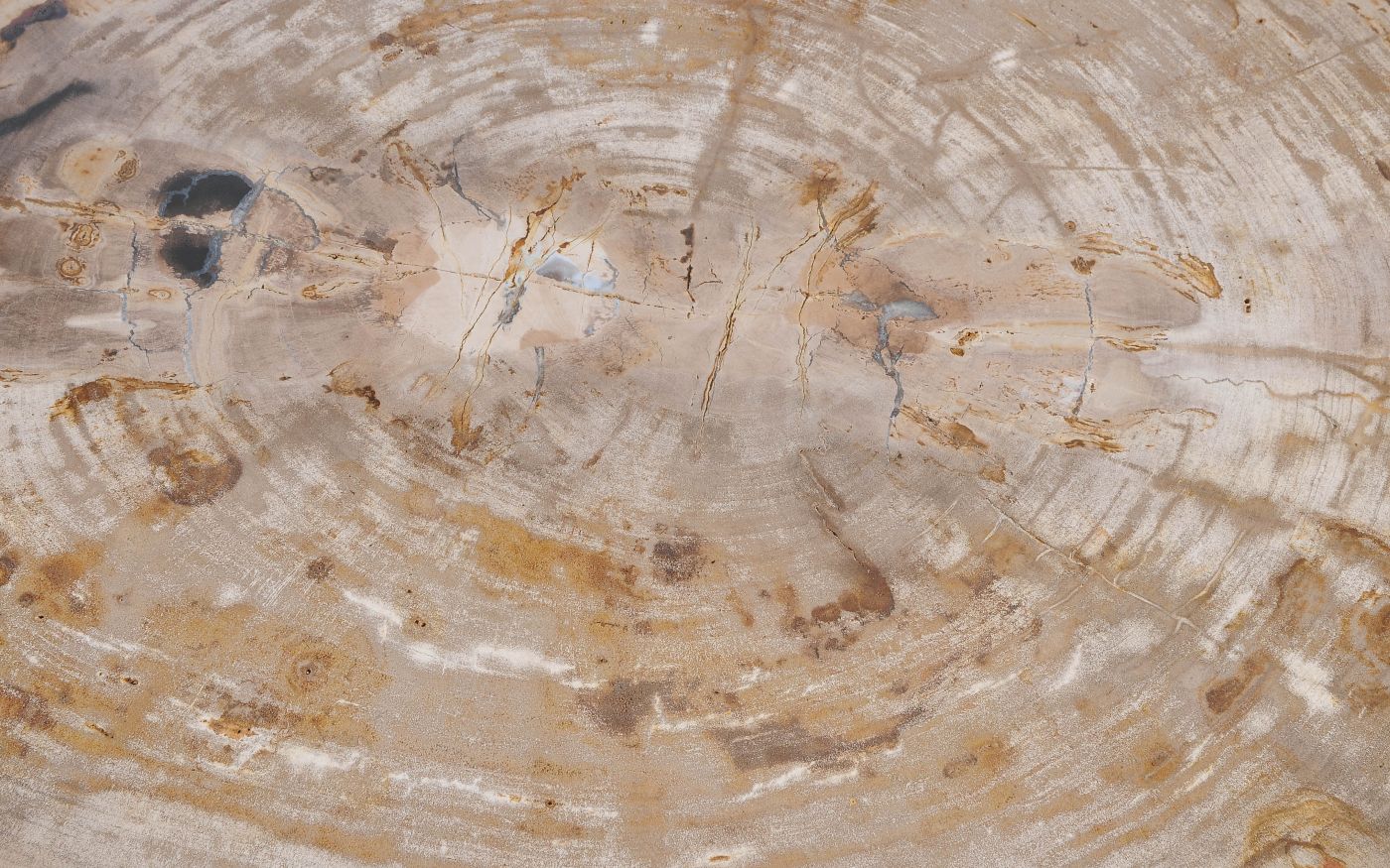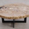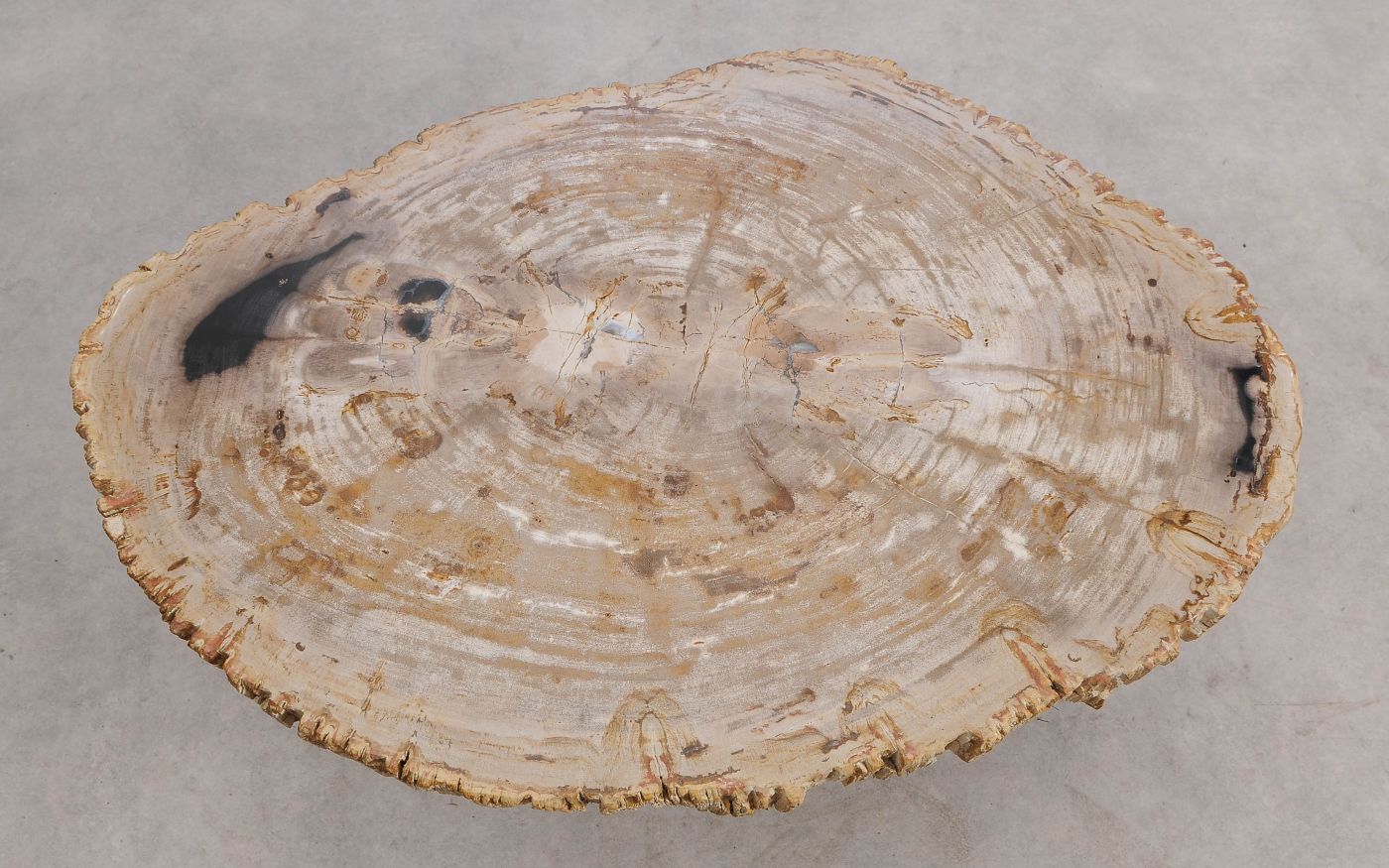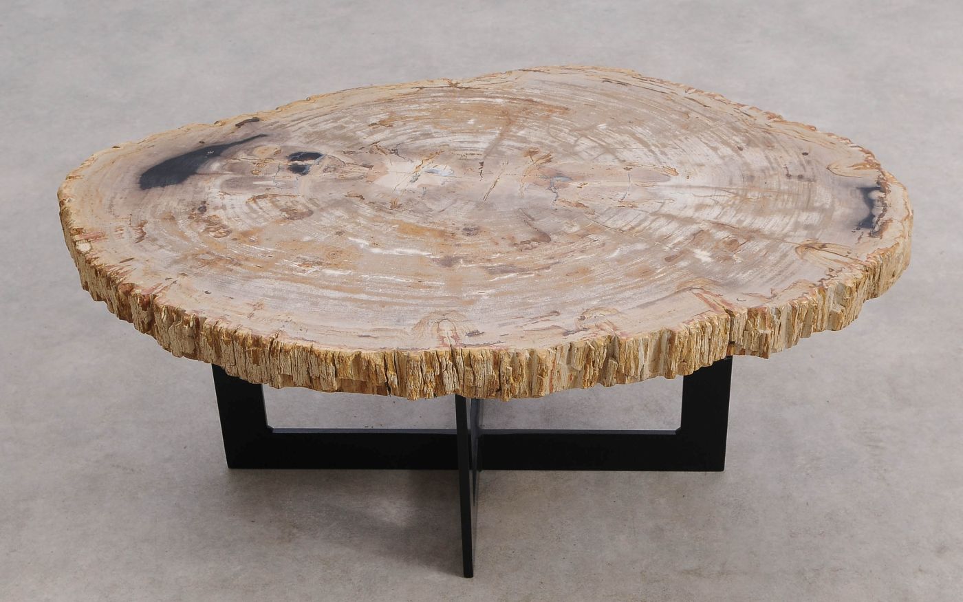 Deze unieke salontafel van versteend hout past in ieder interieur. Het tafelblad is gezaagd uit een grote versteende boom, die ongeveer 20 miljoen jaar geleden geleefd heeft. De kleuren zijn bepaald door de mineralen die het hout van deze boom vervangen hebben.