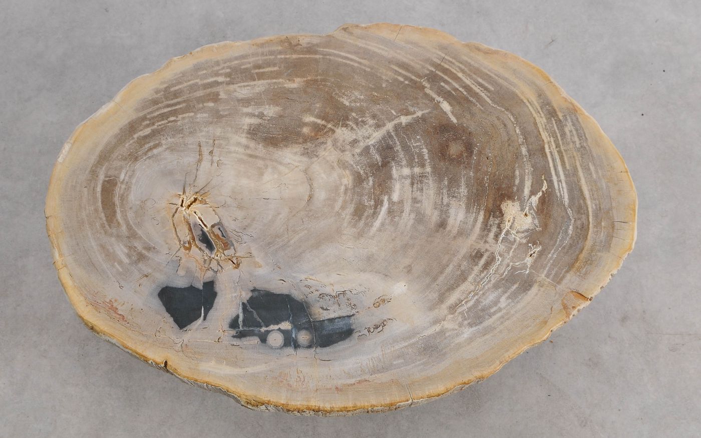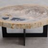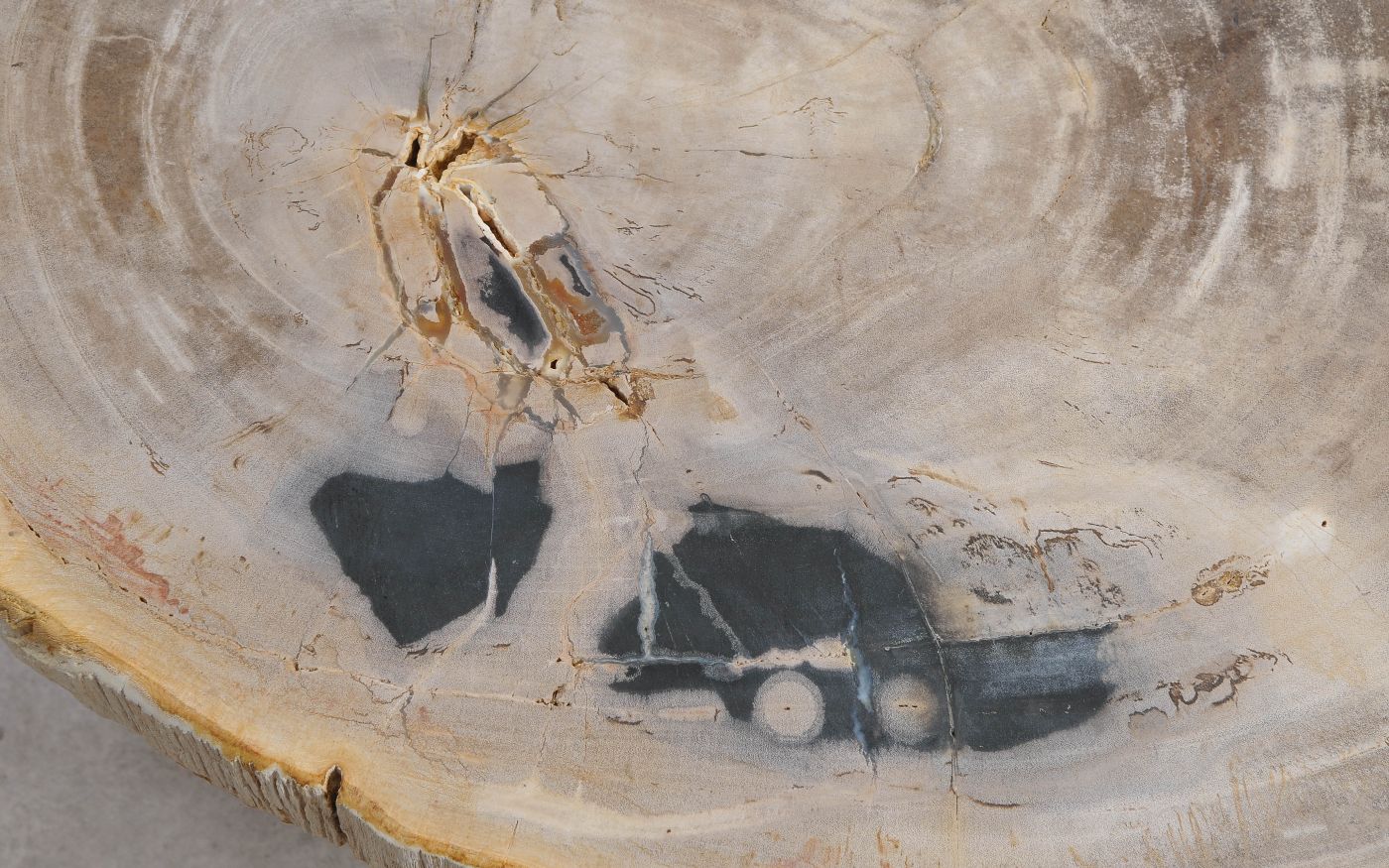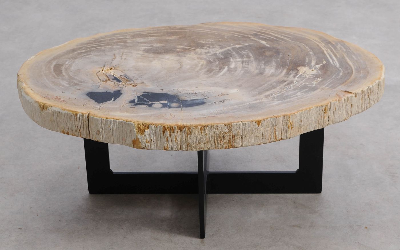 Deze unieke salontafel van versteend hout past in ieder interieur. Het tafelblad is gezaagd uit een grote versteende boom, die ongeveer 20 miljoen jaar geleden geleefd heeft. De kleuren zijn bepaald door de mineralen die het hout van deze boom vervangen hebben.