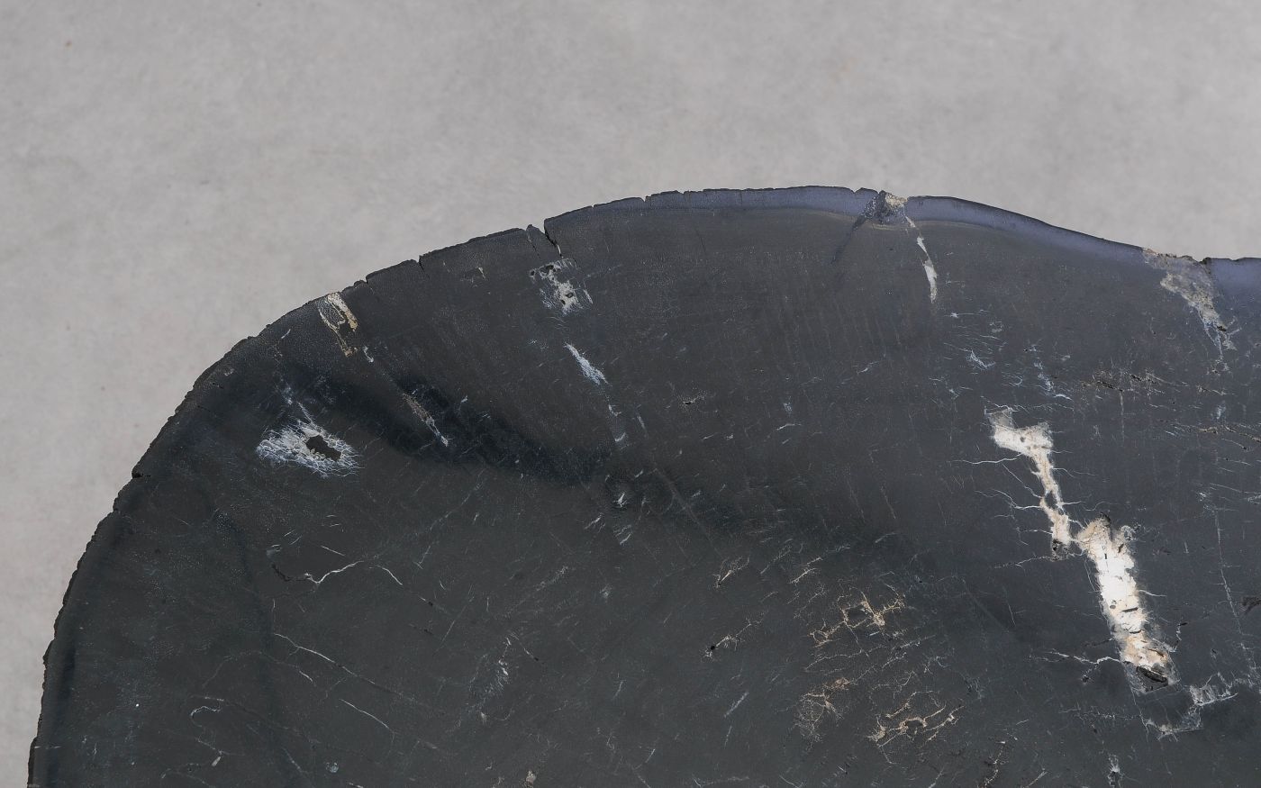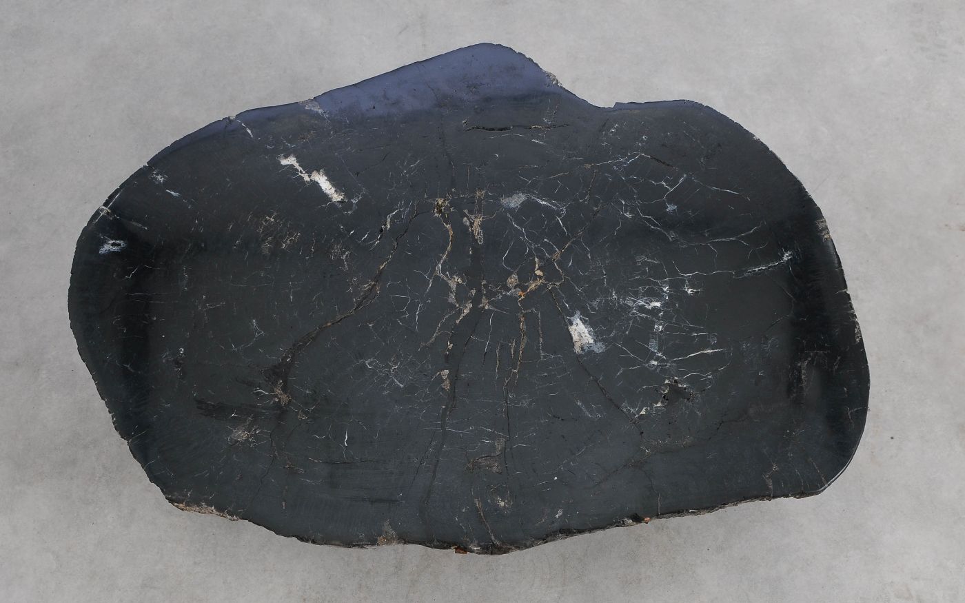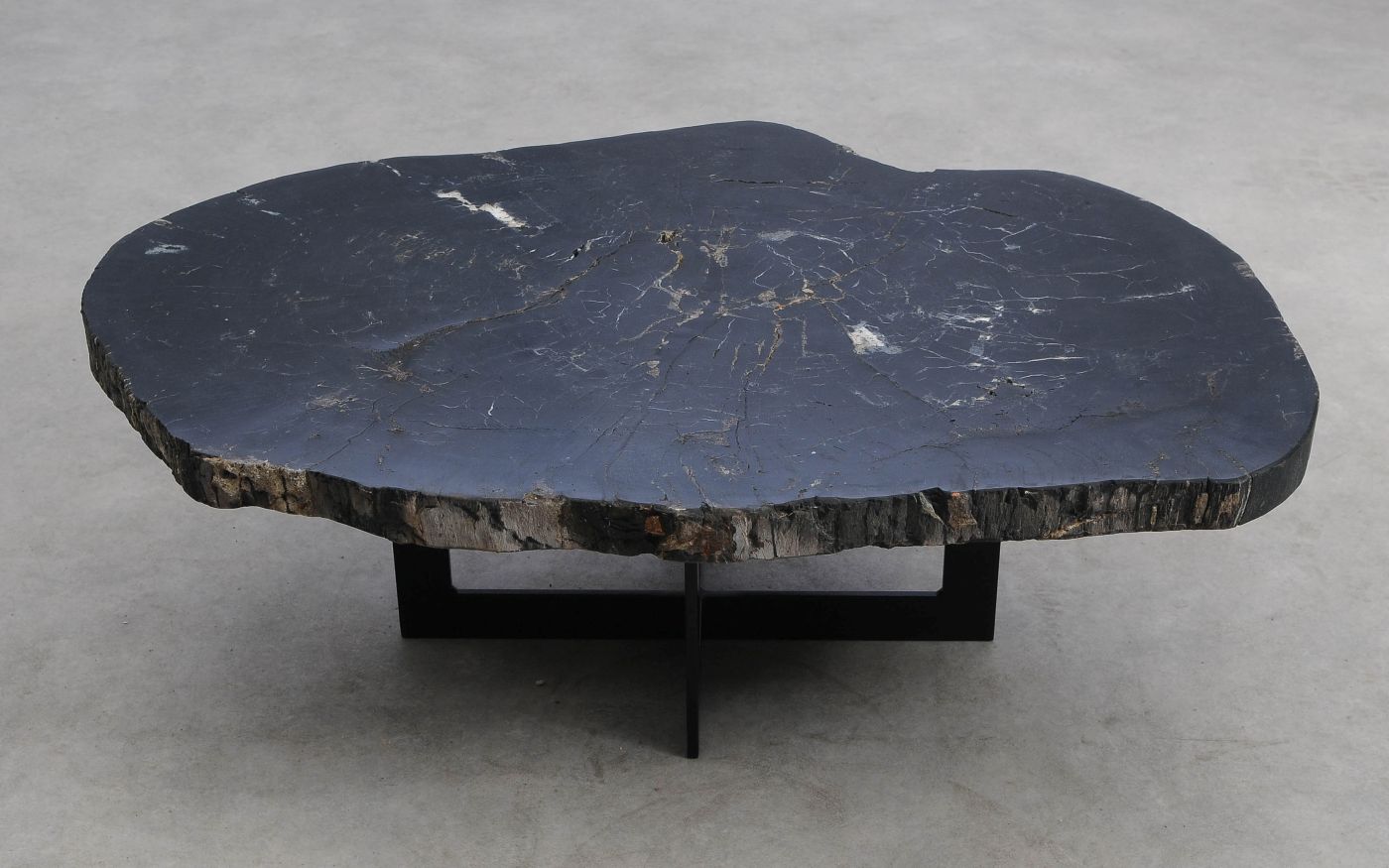 Deze unieke salontafel van versteend hout past in ieder interieur. Het tafelblad is gezaagd uit een grote versteende boom, die ongeveer 20 miljoen jaar geleden geleefd heeft. De kleuren zijn bepaald door de mineralen die het hout van deze boom vervangen hebben.
