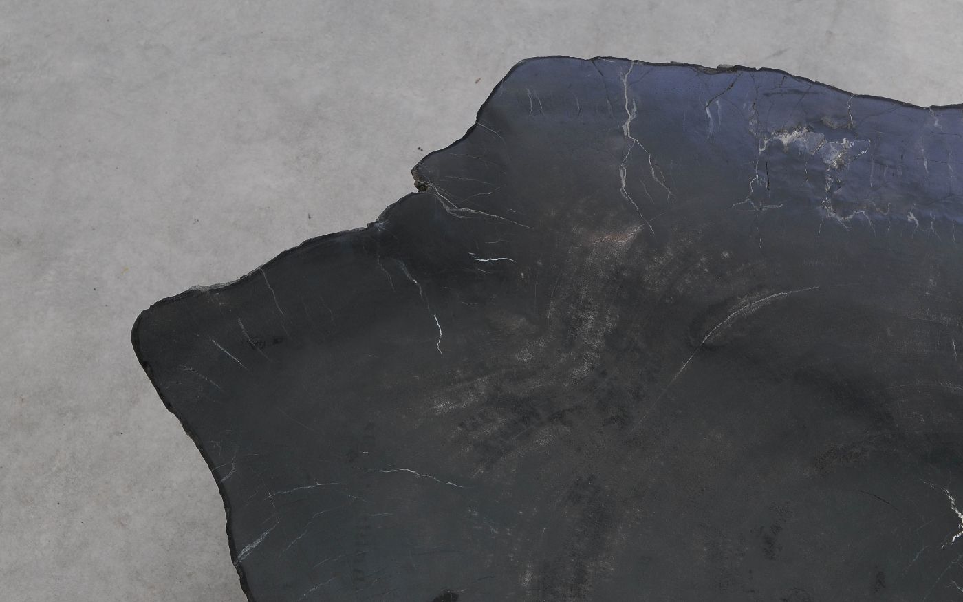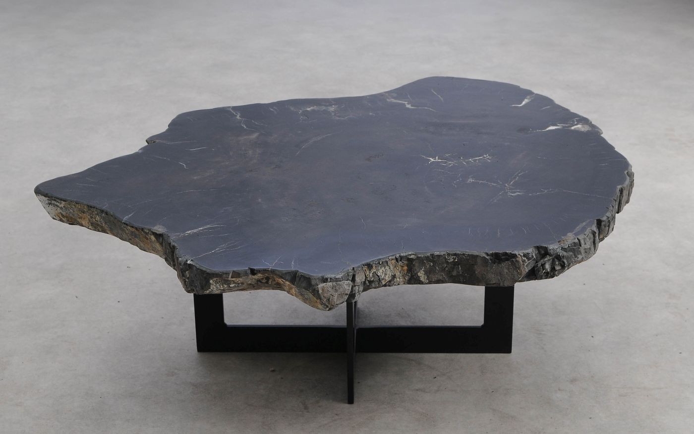 Deze unieke salontafel van versteend hout past in ieder interieur. Het tafelblad is gezaagd uit een grote versteende boom, die ongeveer 20 miljoen jaar geleden geleefd heeft. De kleuren zijn bepaald door de mineralen die het hout van deze boom vervangen hebben.