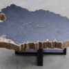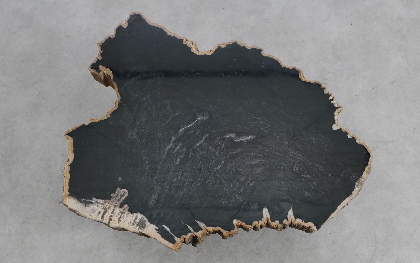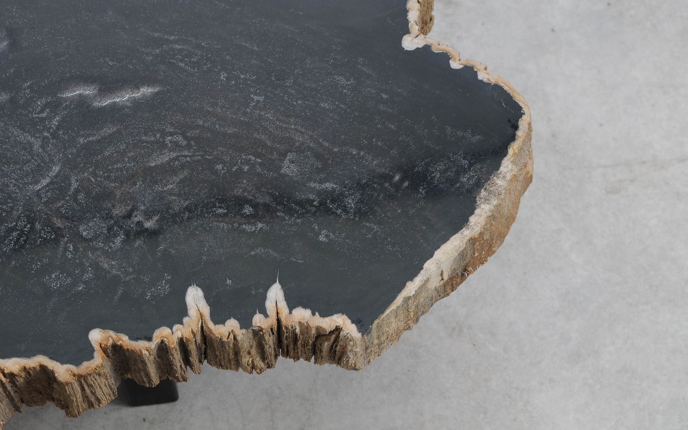 Deze unieke salontafel van versteend hout past in ieder interieur. Het tafelblad is gezaagd uit een grote versteende boom, die ongeveer 20 miljoen jaar geleden geleefd heeft. De kleuren zijn bepaald door de mineralen die het hout van deze boom vervangen hebben.
