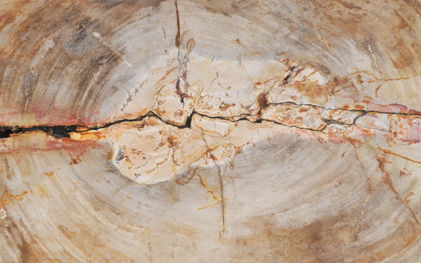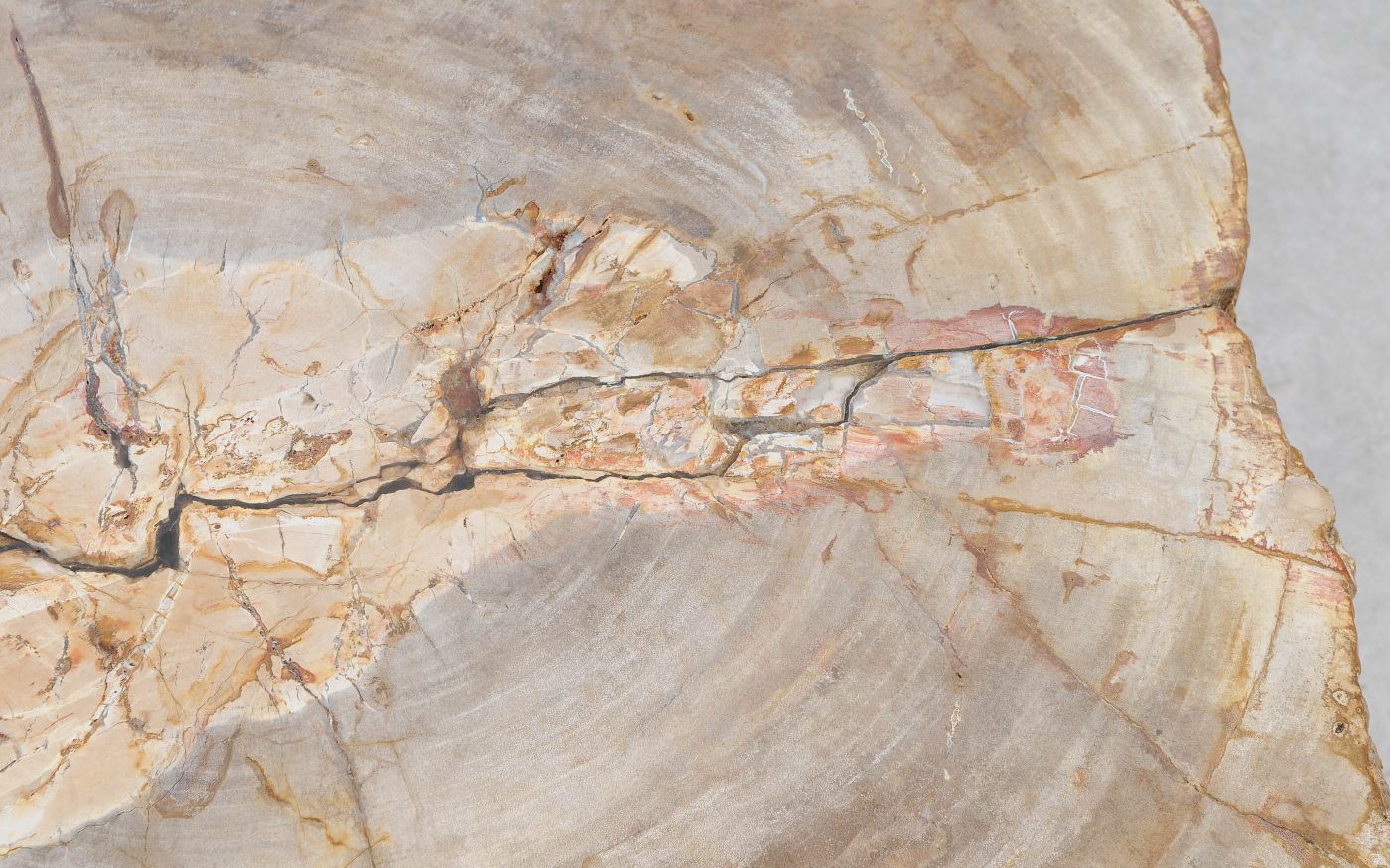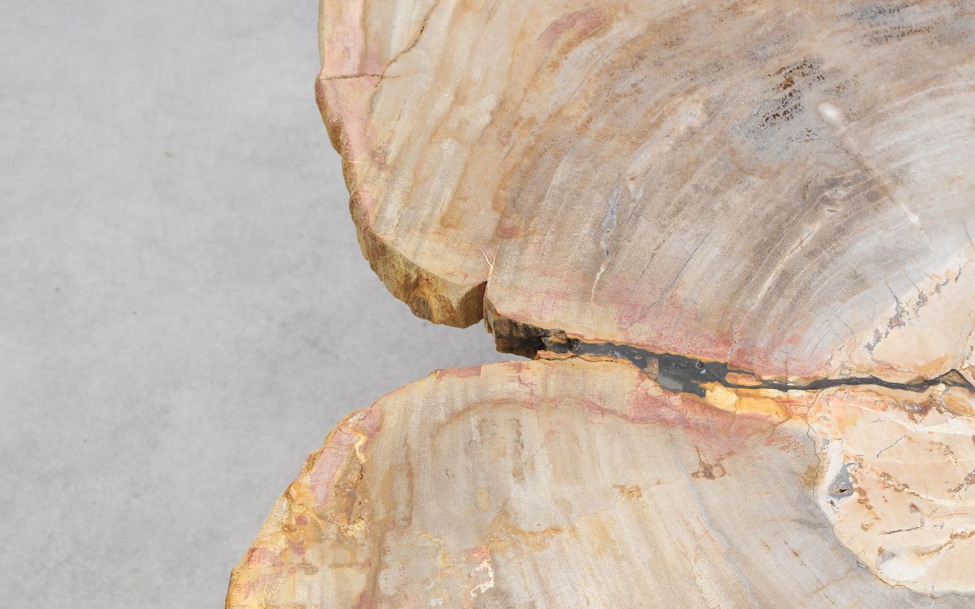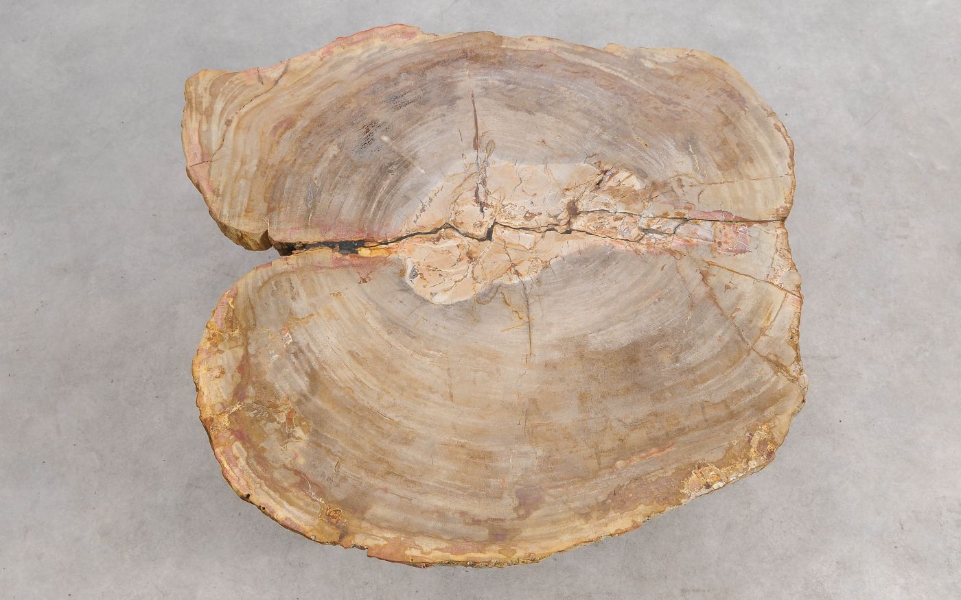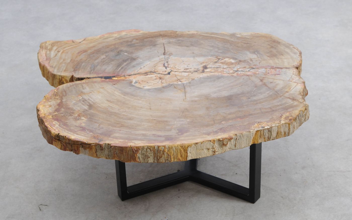 Deze unieke salontafel van versteend hout past in ieder interieur. Het tafelblad is gezaagd uit een grote versteende boom, die ongeveer 20 miljoen jaar geleden geleefd heeft. De kleuren zijn bepaald door de mineralen die het hout van deze boom vervangen hebben.