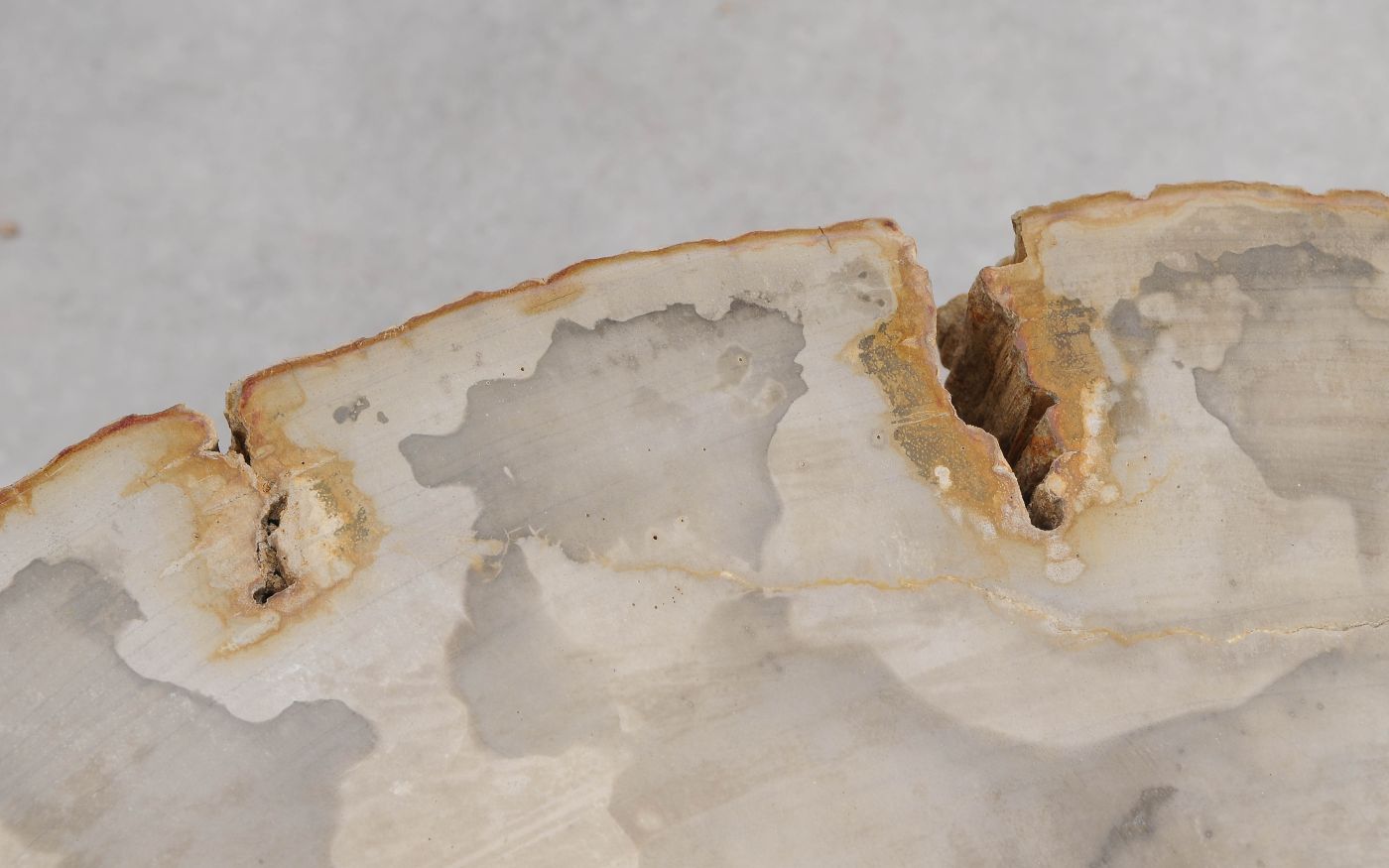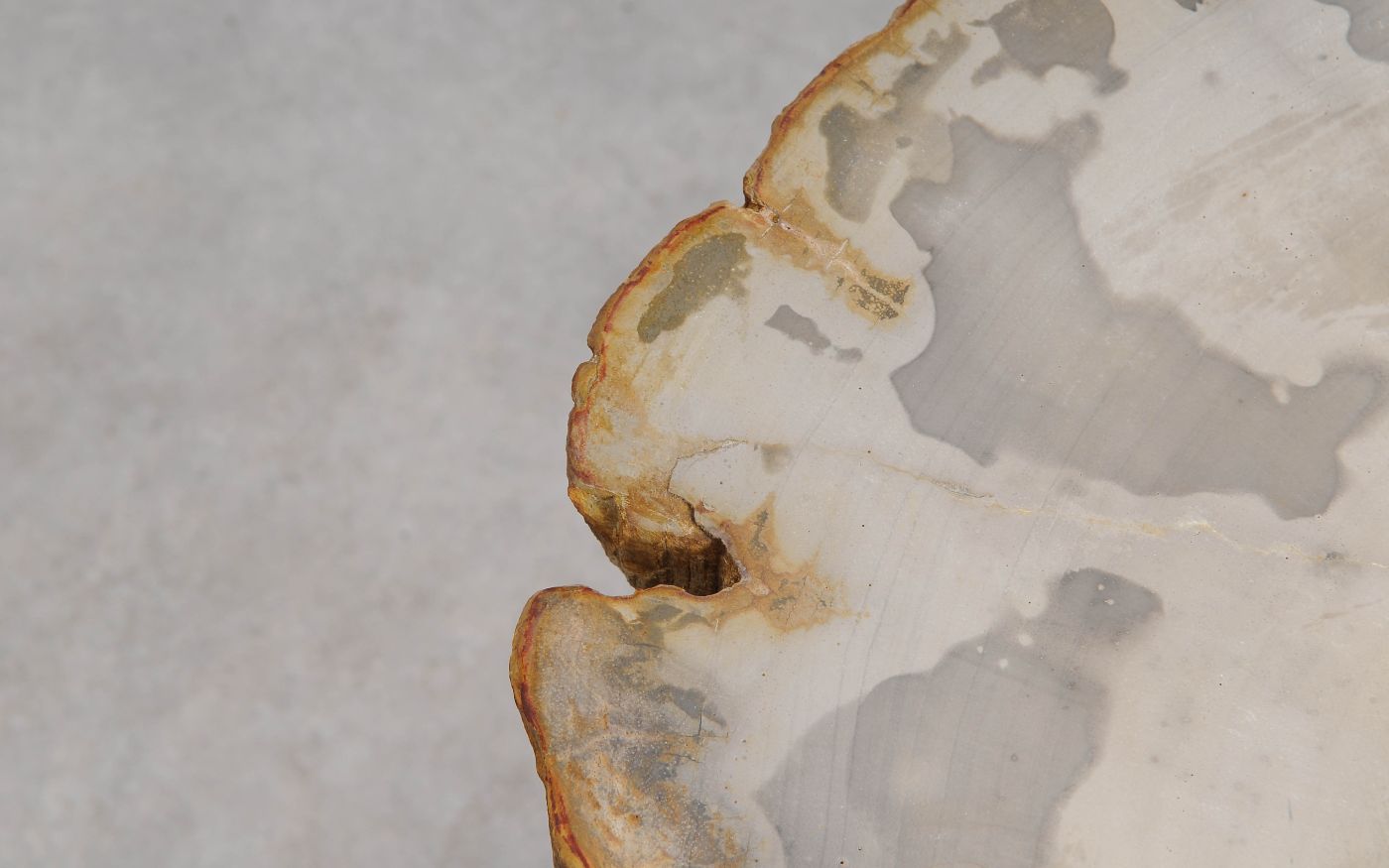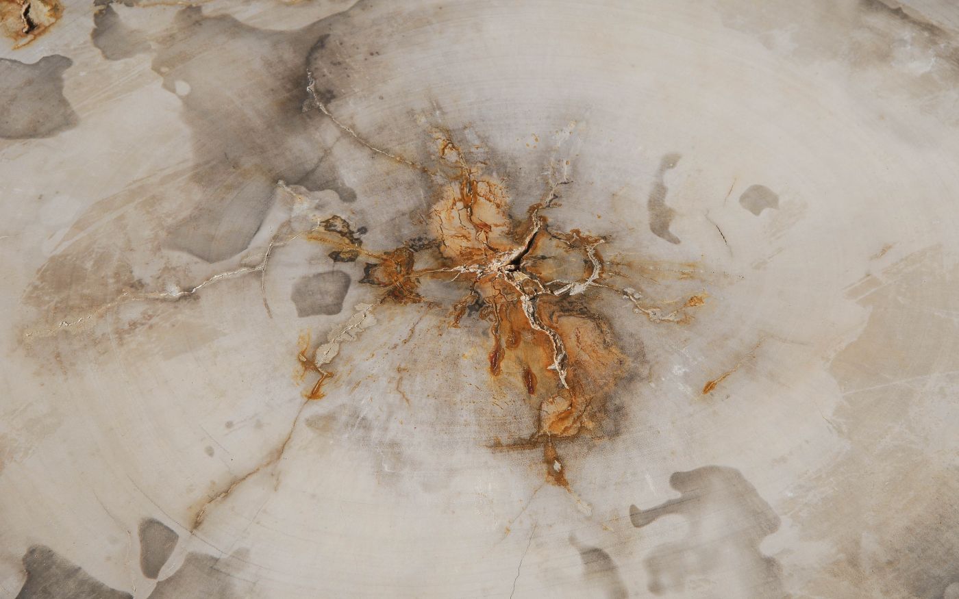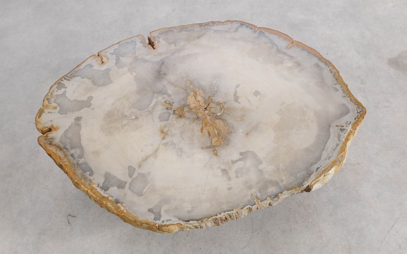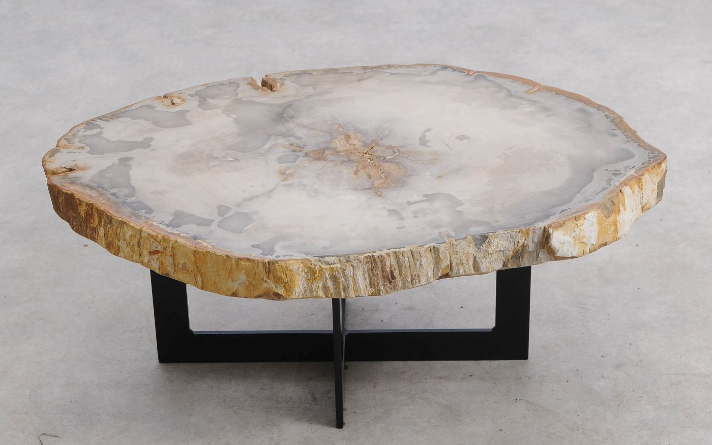 Deze unieke salontafel van versteend hout past in ieder interieur. Het tafelblad is gezaagd uit een grote versteende boom, die ongeveer 20 miljoen jaar geleden geleefd heeft. De kleuren zijn bepaald door de mineralen die het hout van deze boom vervangen hebben.