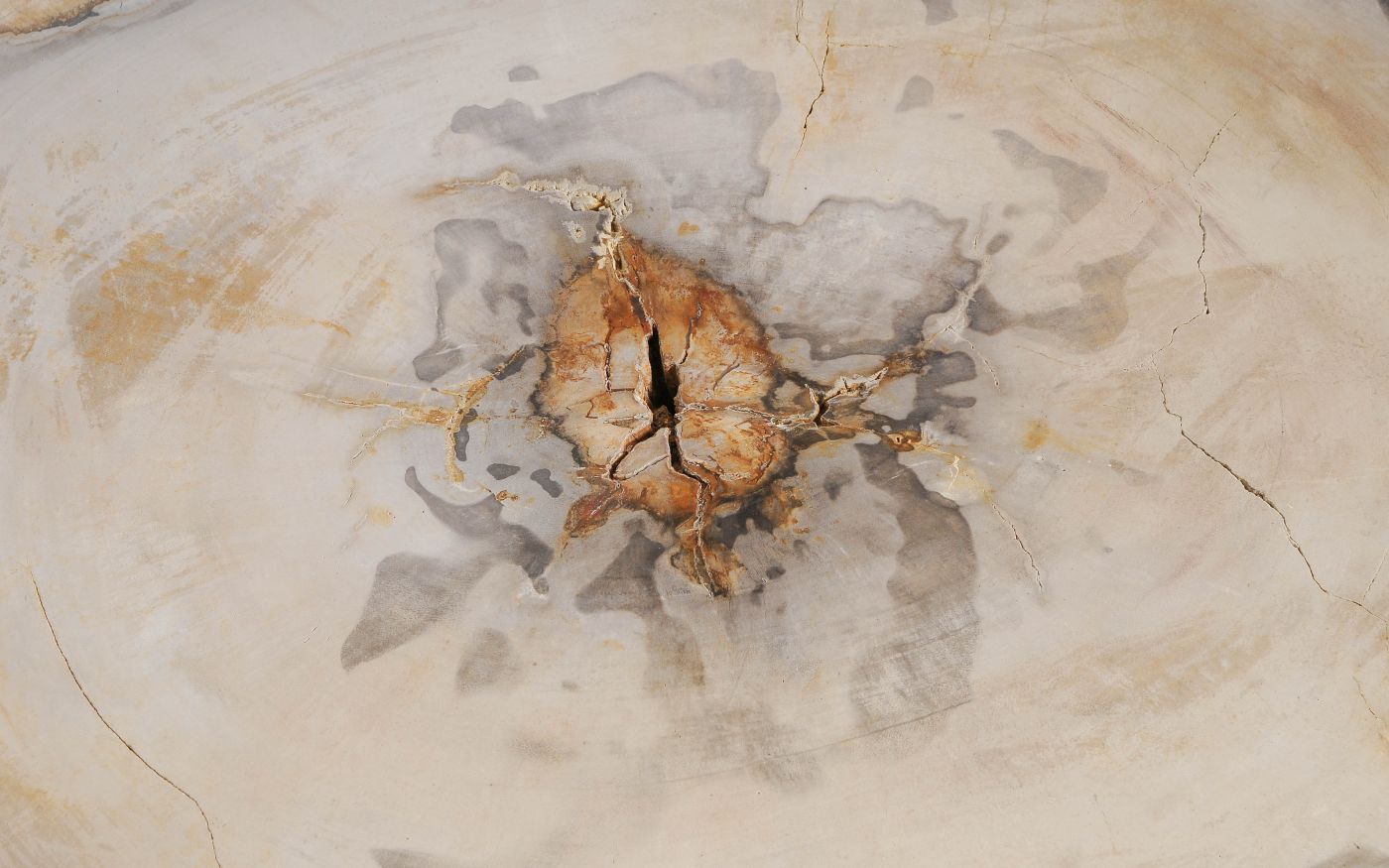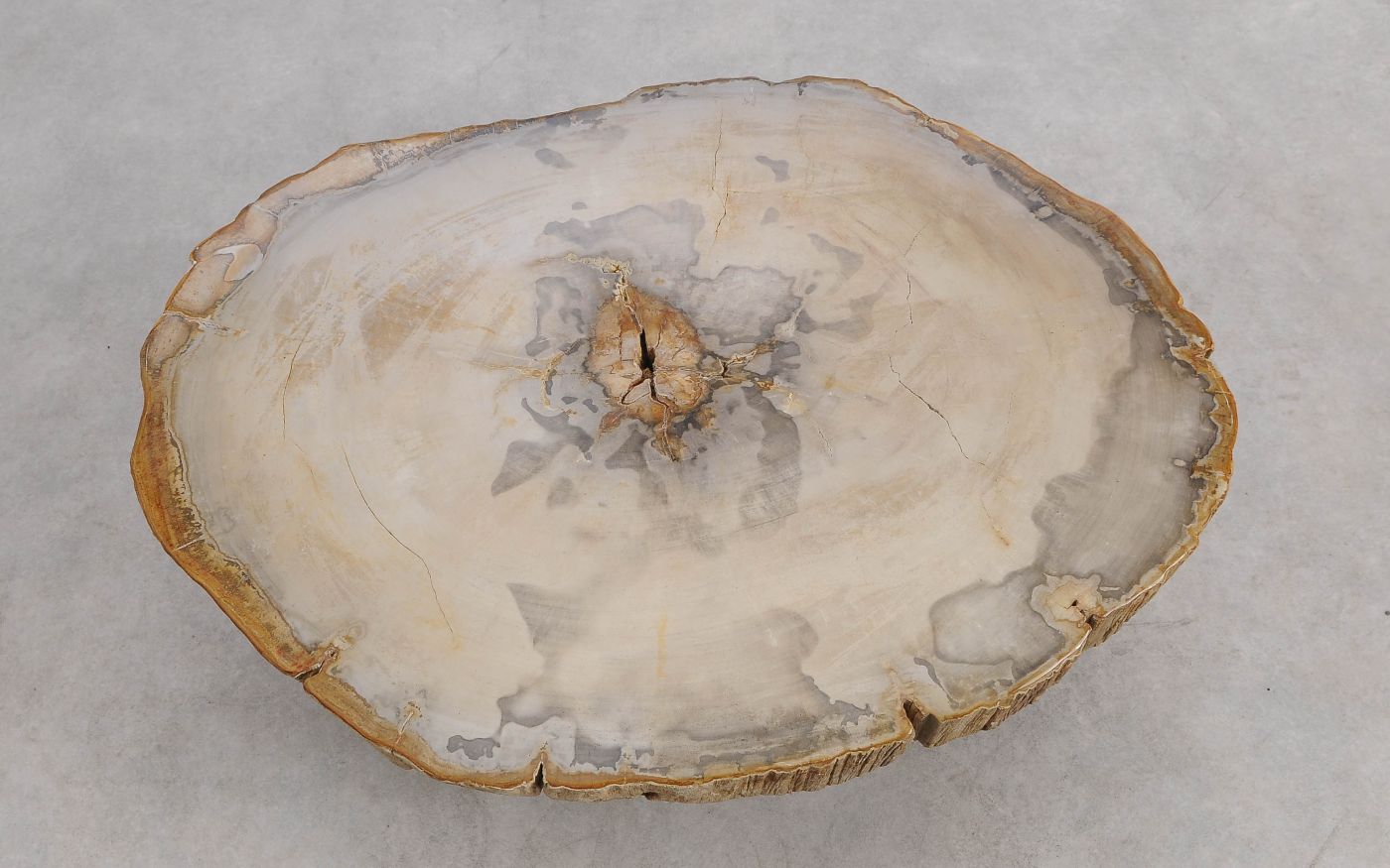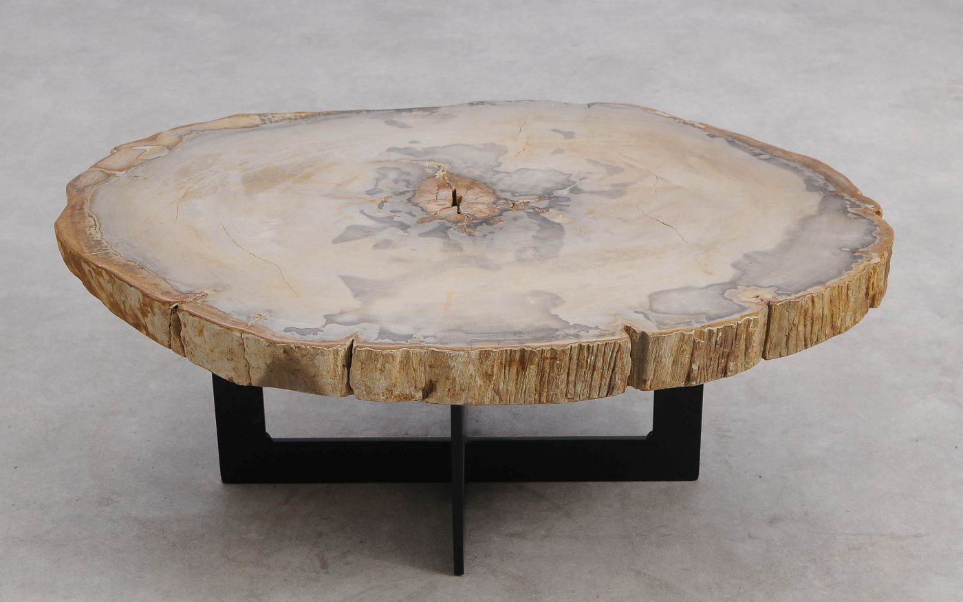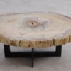 Deze unieke salontafel van versteend hout past in ieder interieur. Het tafelblad is gezaagd uit een grote versteende boom, die ongeveer 20 miljoen jaar geleden geleefd heeft. De kleuren zijn bepaald door de mineralen die het hout van deze boom vervangen hebben.