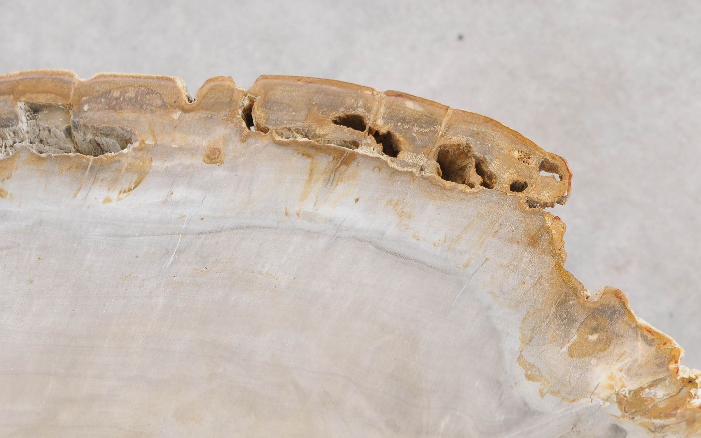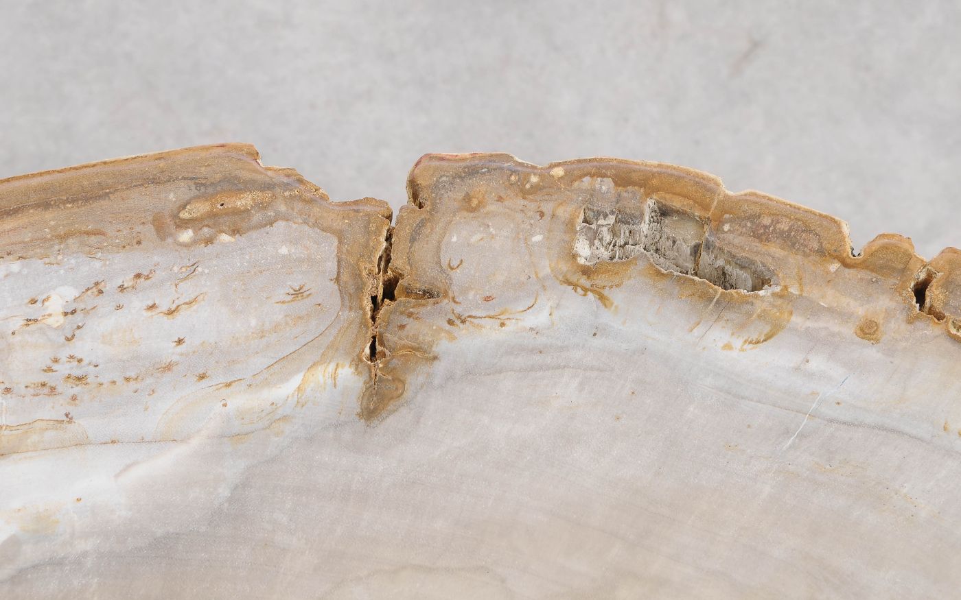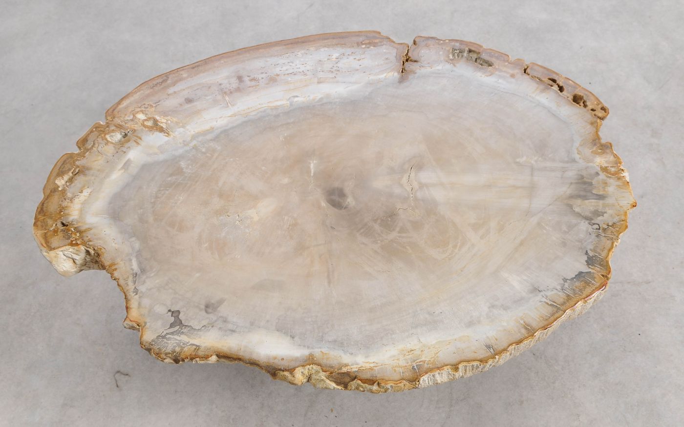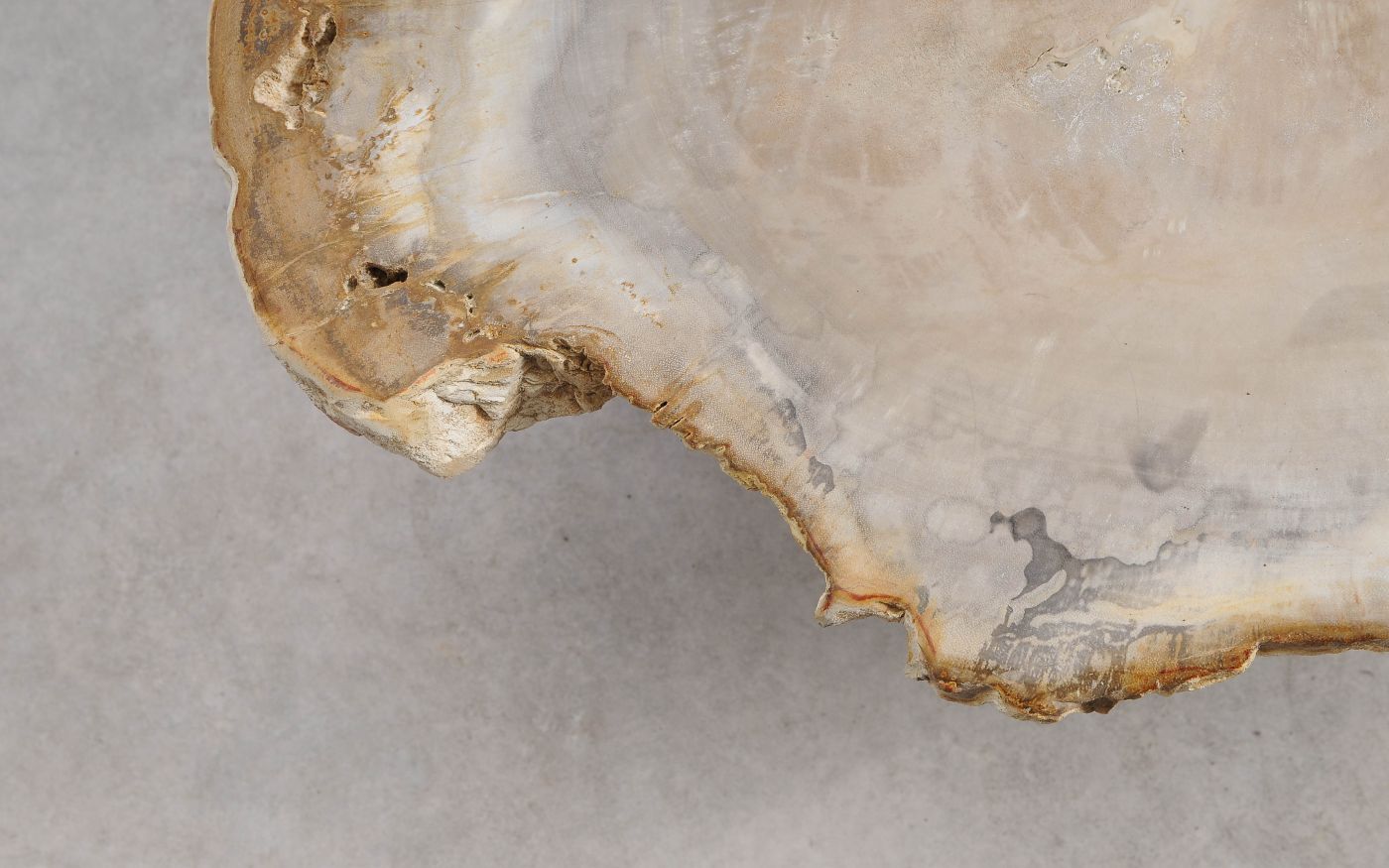 Deze unieke salontafel van versteend hout past in ieder interieur. Het tafelblad is gezaagd uit een grote versteende boom, die ongeveer 20 miljoen jaar geleden geleefd heeft. De kleuren zijn bepaald door de mineralen die het hout van deze boom vervangen hebben.