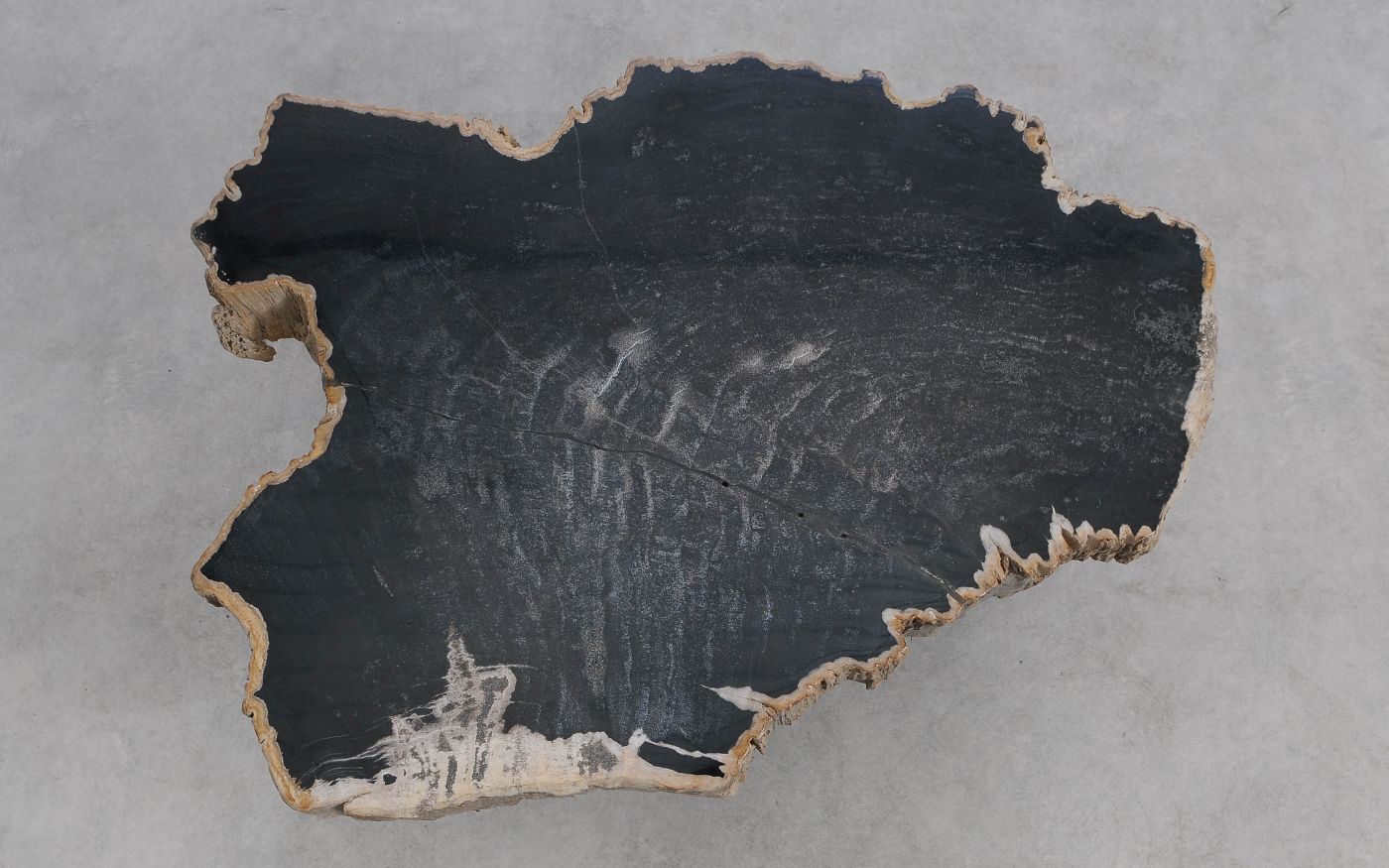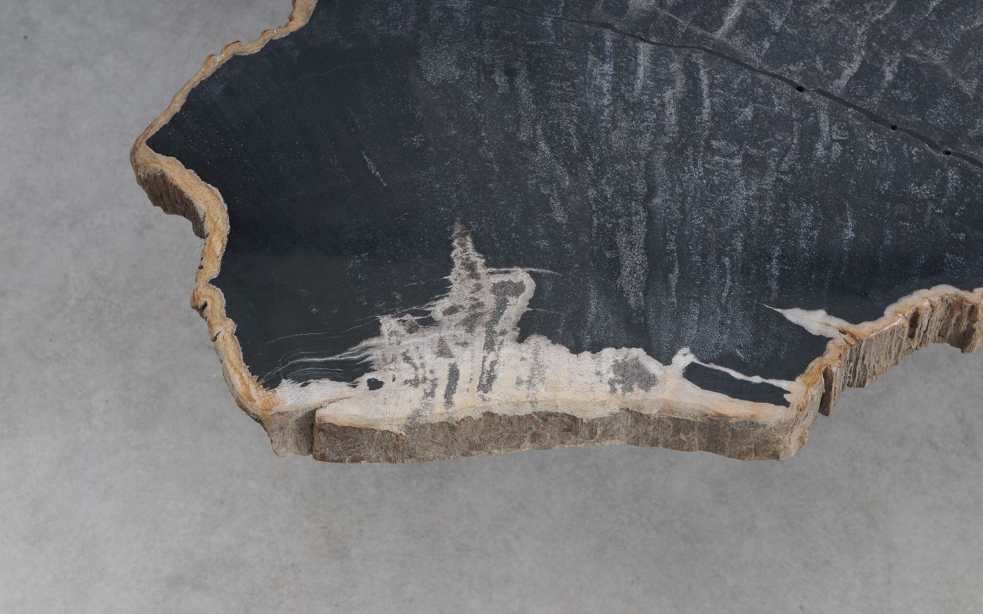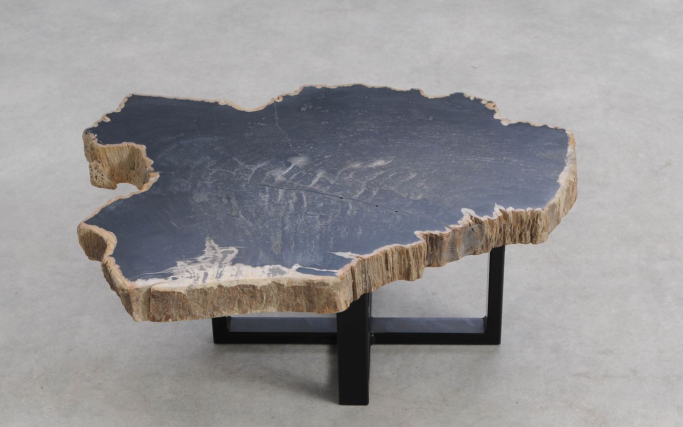 Deze unieke salontafel van versteend hout past in ieder interieur. Het tafelblad is gezaagd uit een grote versteende boom, die ongeveer 20 miljoen jaar geleden geleefd heeft. De kleuren zijn bepaald door de mineralen die het hout van deze boom vervangen hebben.