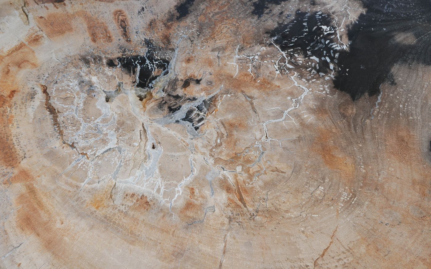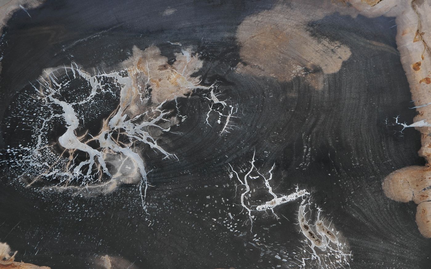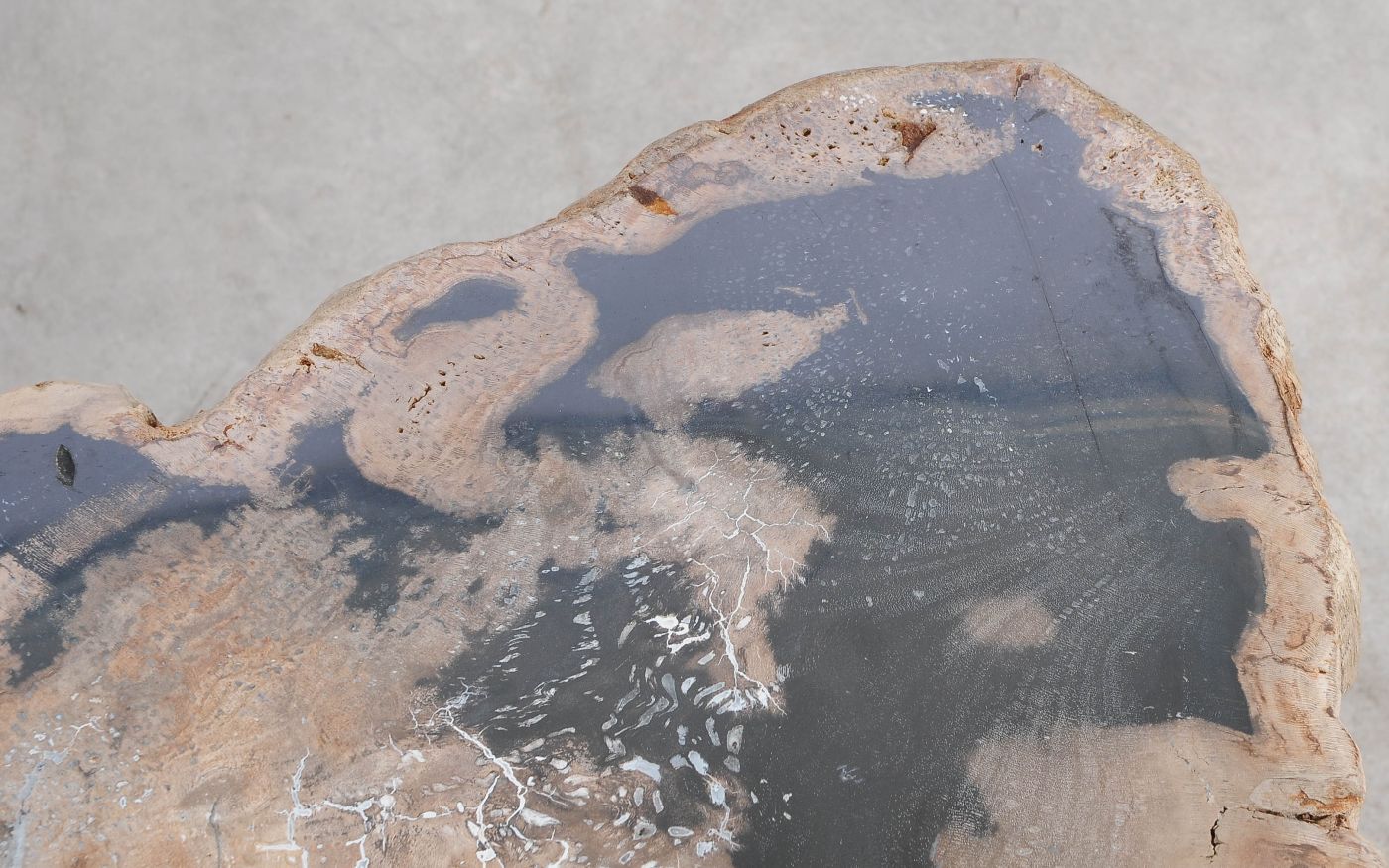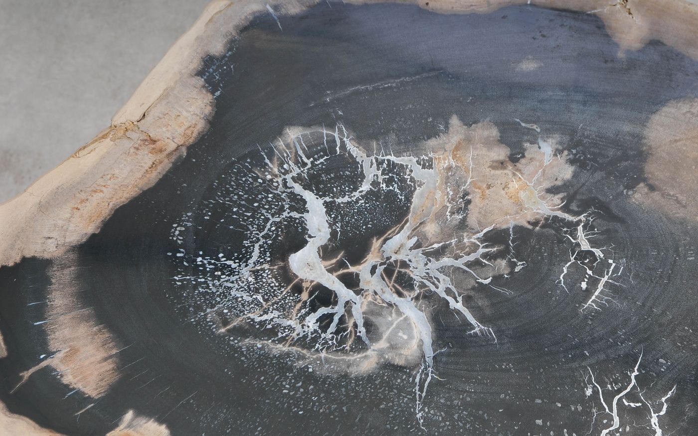 Deze unieke salontafel van versteend hout past in ieder interieur. Het tafelblad is gezaagd uit een grote versteende boom, die ongeveer 20 miljoen jaar geleden geleefd heeft. De kleuren zijn bepaald door de mineralen die het hout van deze boom vervangen hebben.