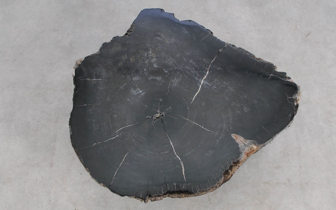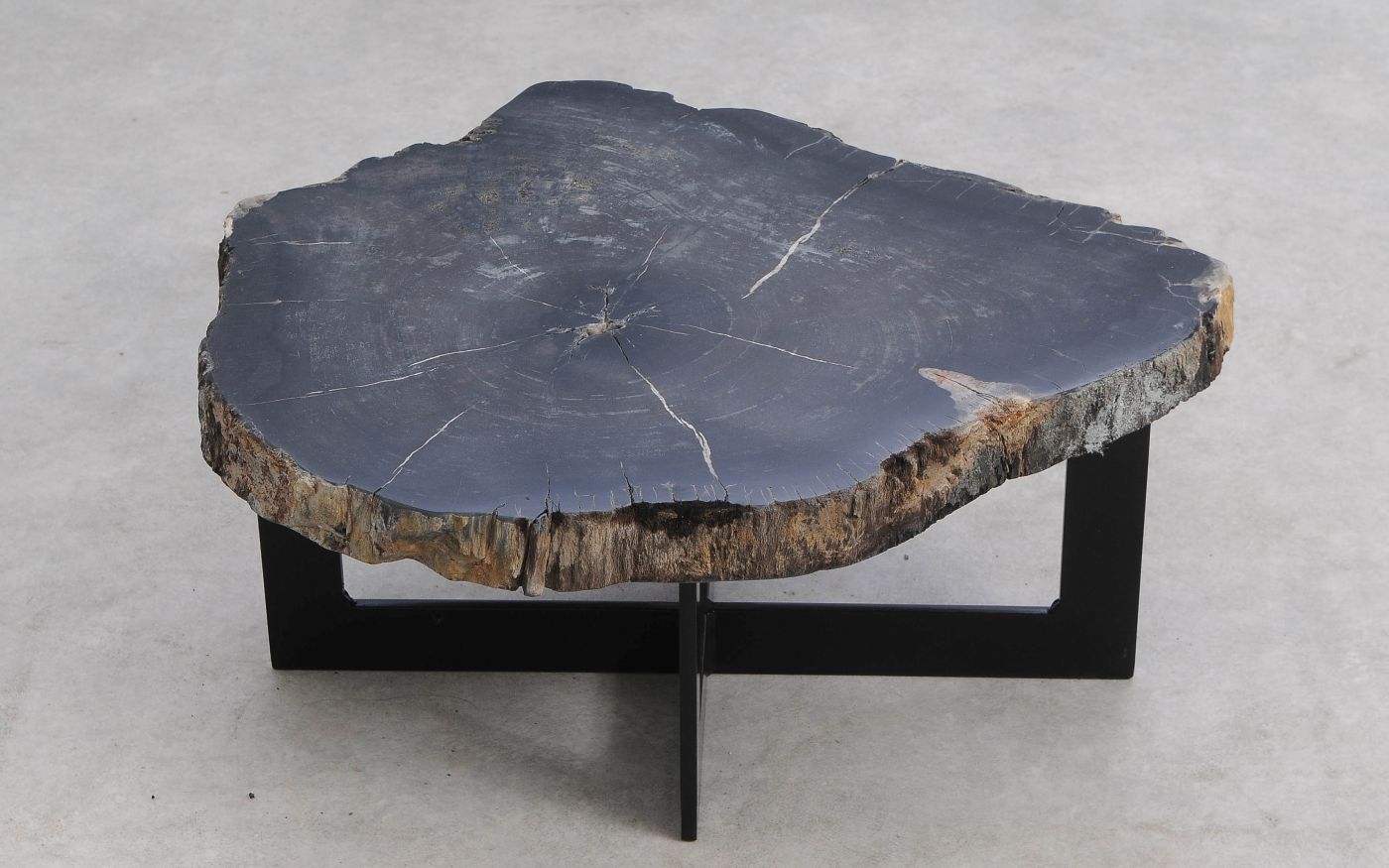 Deze unieke salontafel van versteend hout past in ieder interieur. Het tafelblad is gezaagd uit een grote versteende boom, die ongeveer 20 miljoen jaar geleden geleefd heeft. De kleuren zijn bepaald door de mineralen die het hout van deze boom vervangen hebben.
