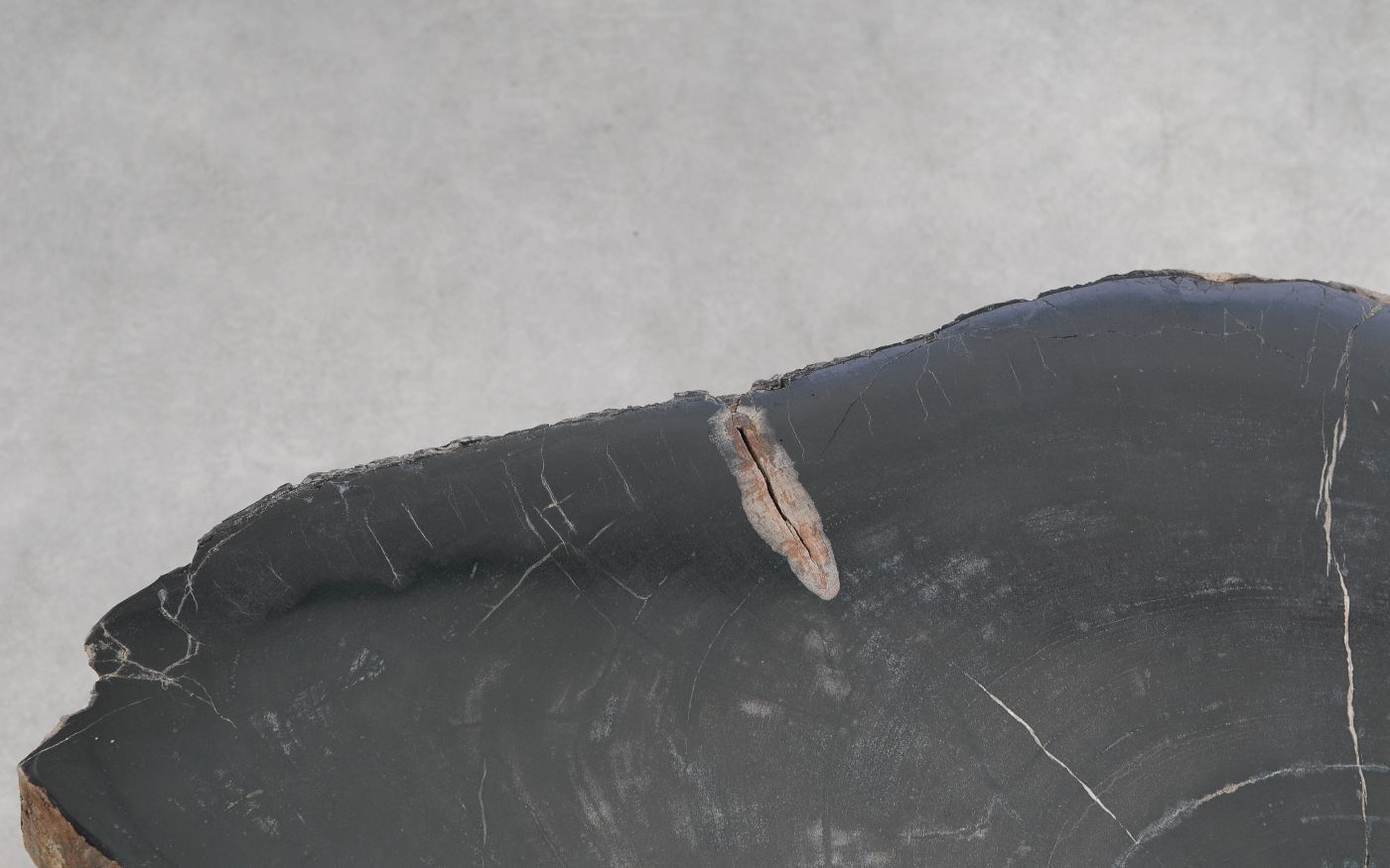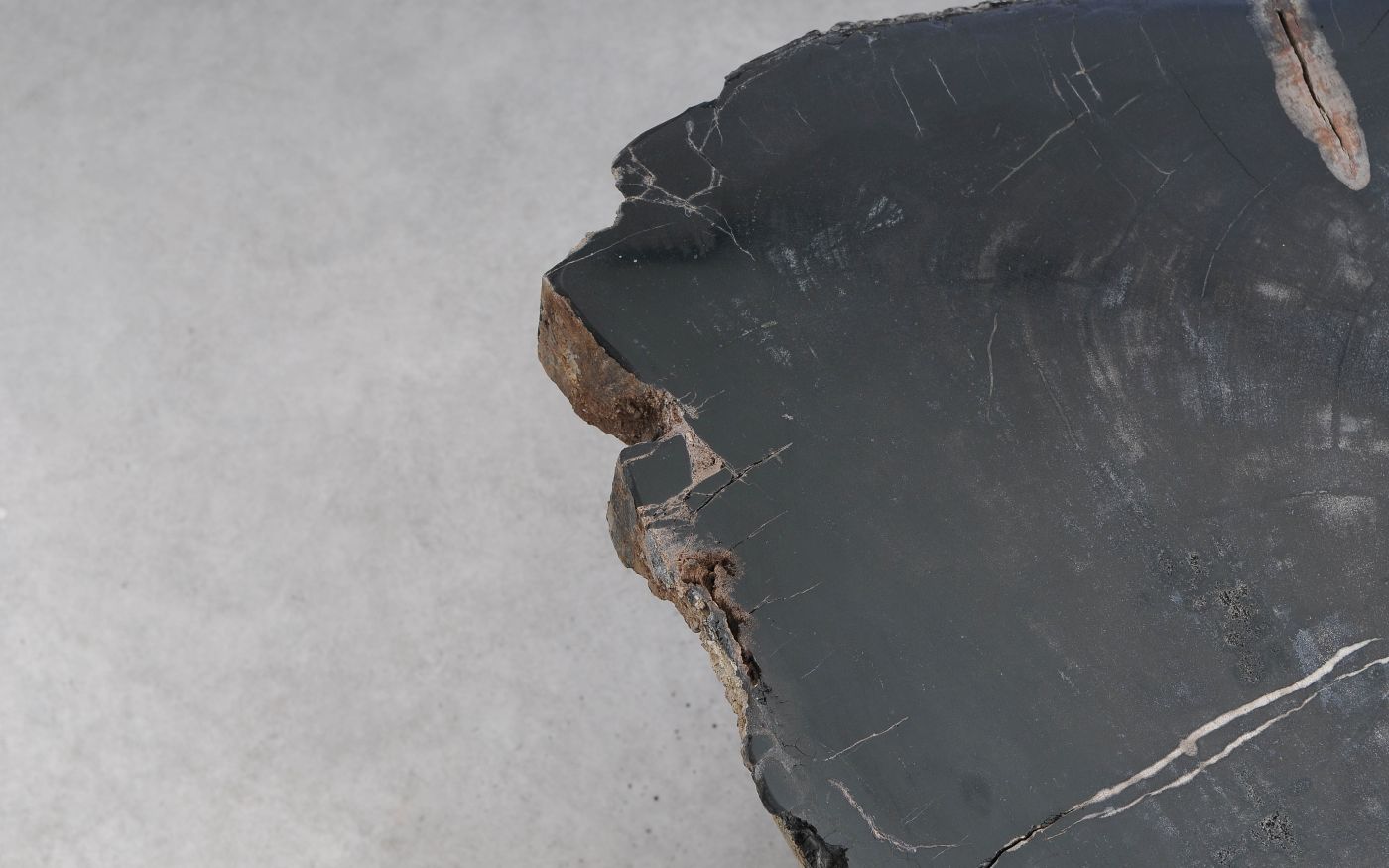 Deze unieke salontafel van versteend hout past in ieder interieur. Het tafelblad is gezaagd uit een grote versteende boom, die ongeveer 20 miljoen jaar geleden geleefd heeft. De kleuren zijn bepaald door de mineralen die het hout van deze boom vervangen hebben.