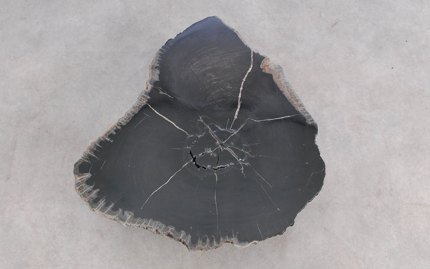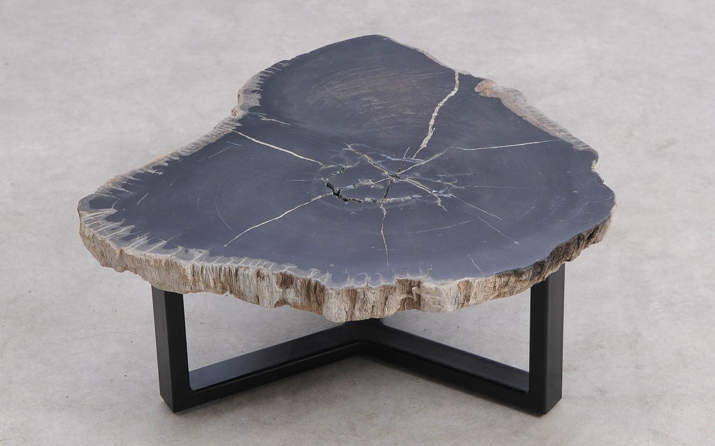 Deze unieke salontafel van versteend hout past in ieder interieur. Het tafelblad is gezaagd uit een grote versteende boom, die ongeveer 20 miljoen jaar geleden geleefd heeft. De kleuren zijn bepaald door de mineralen die het hout van deze boom vervangen hebben.