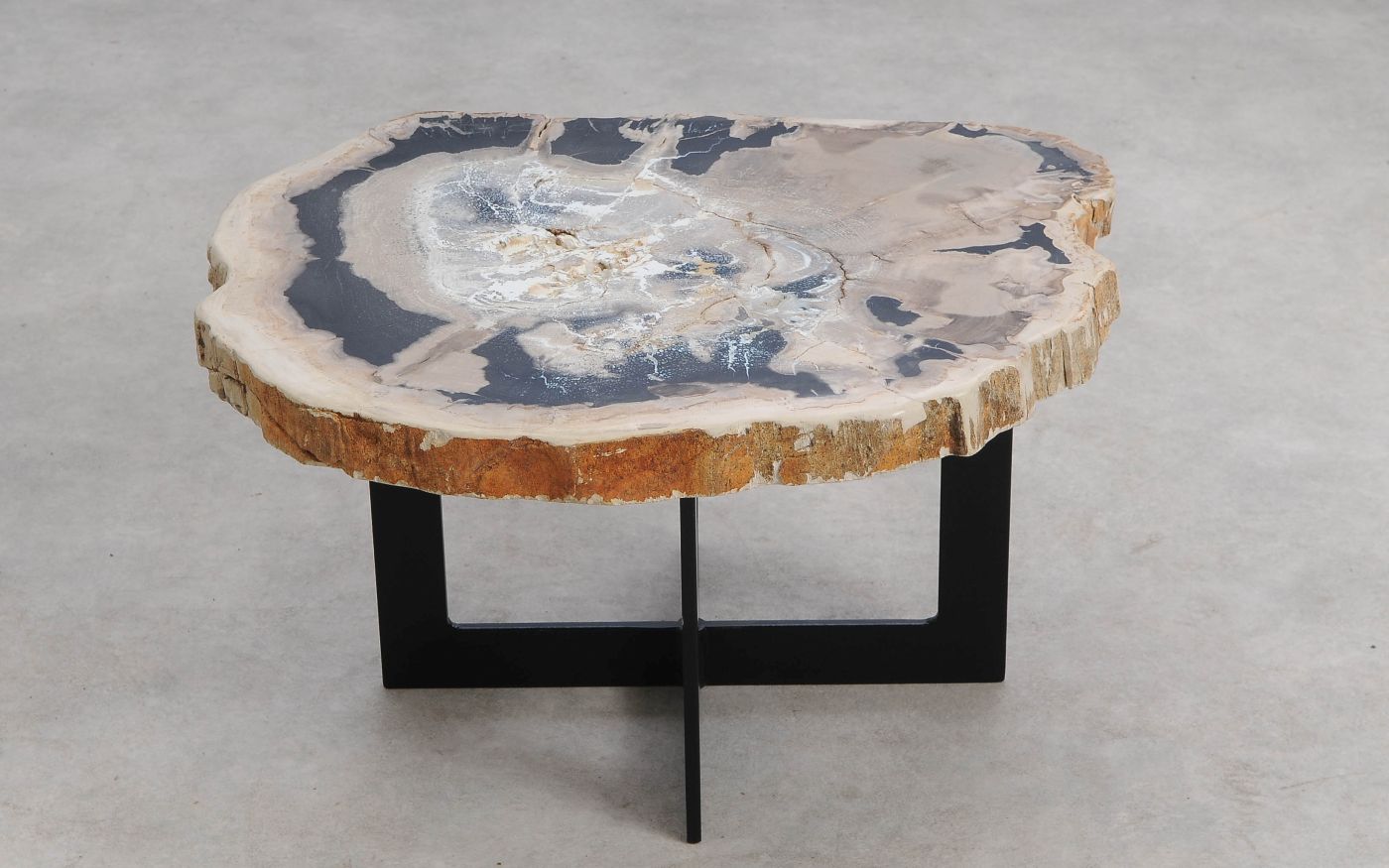 Het is erg moeilijk de schoonheid van versteend hout in een foto te vatten. We nodigen u daarom van harte uit deze salontafel in onze showroom te komen bekijken, maar bestellen via de website kan natuurlijk ook.