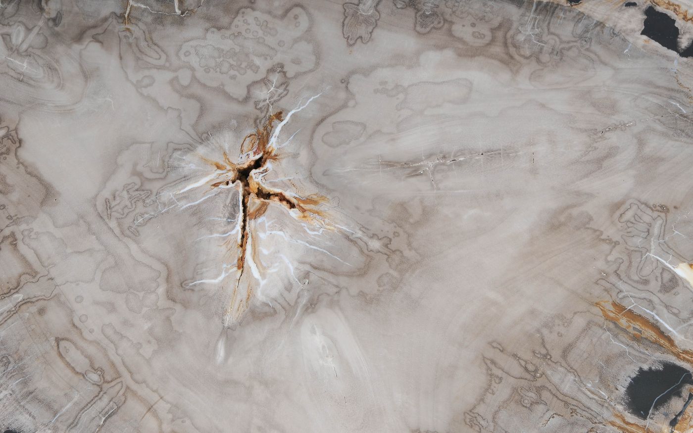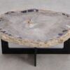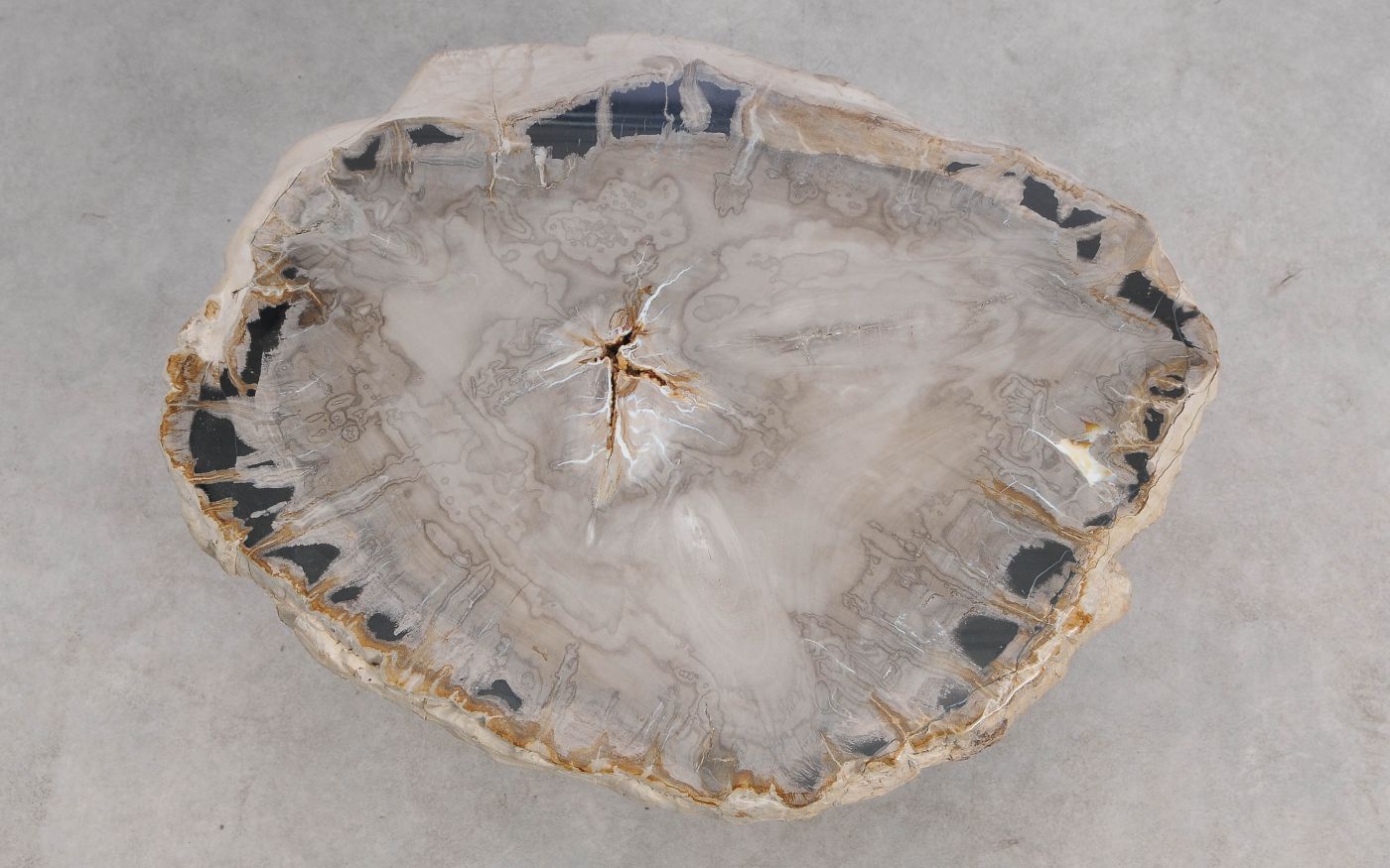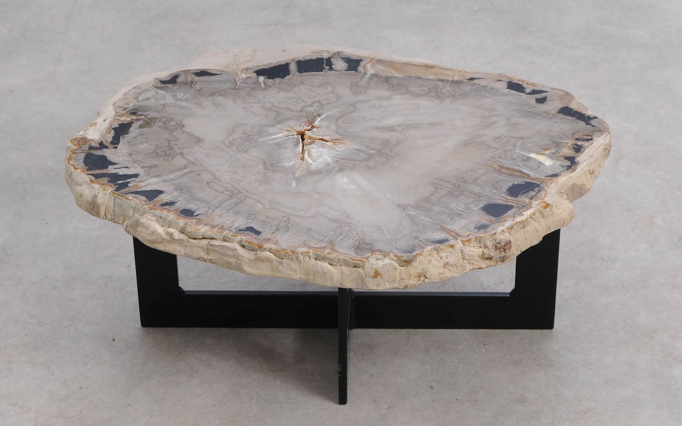 Deze unieke salontafel van versteend hout past in ieder interieur. Het tafelblad is gezaagd uit een grote versteende boom, die ongeveer 20 miljoen jaar geleden geleefd heeft. De kleuren zijn bepaald door de mineralen die het hout van deze boom vervangen hebben.