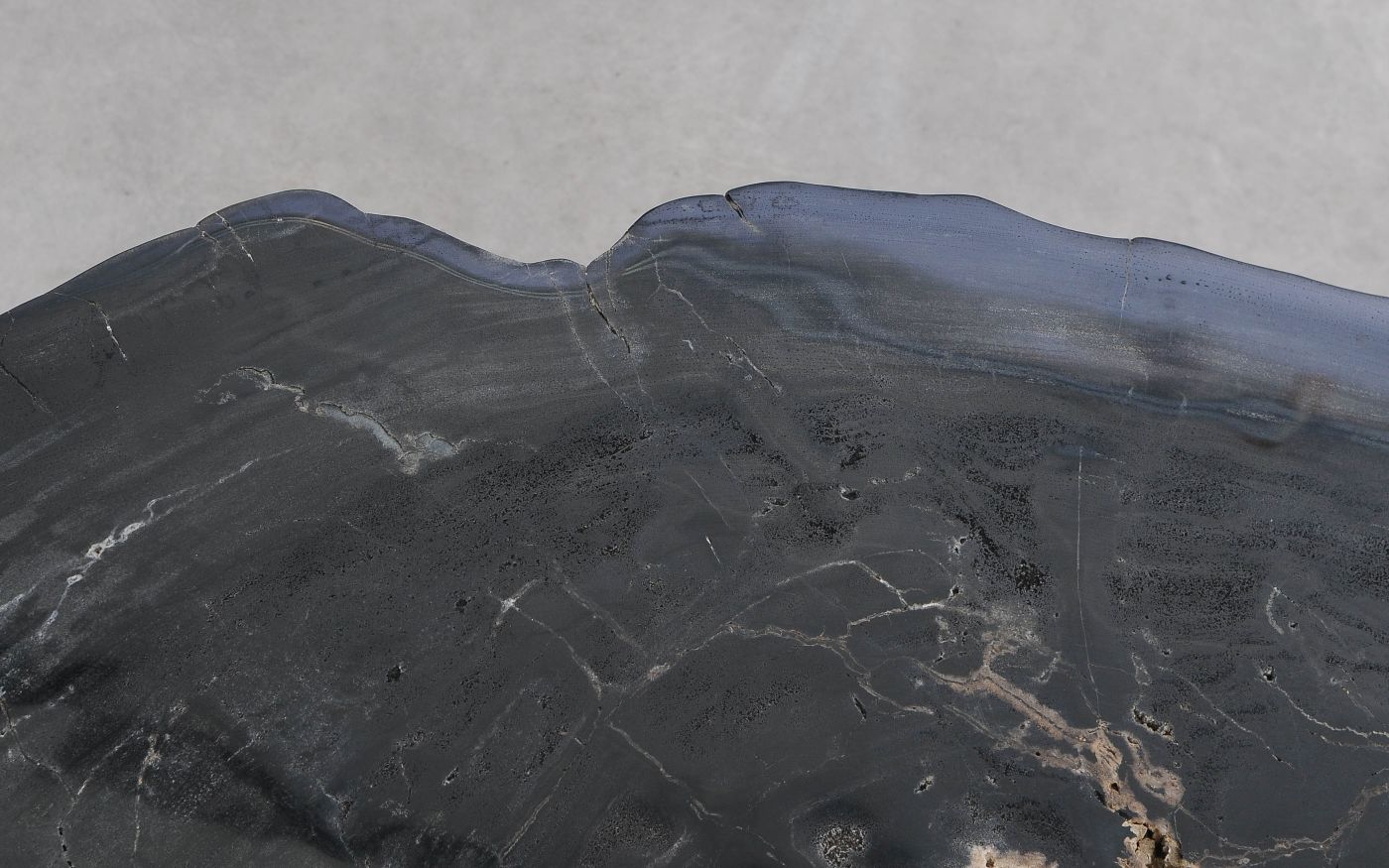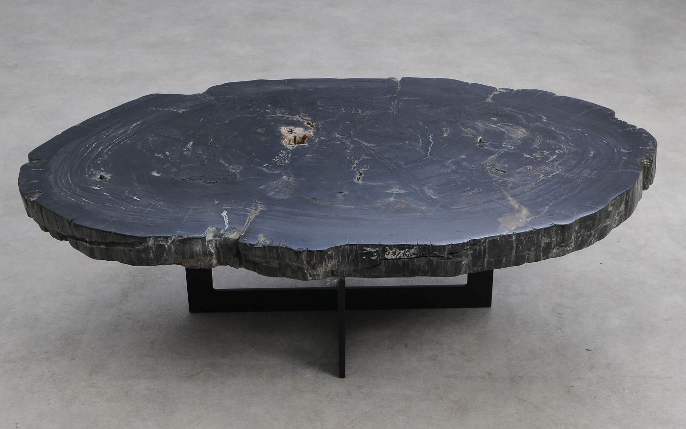 Deze unieke salontafel van versteend hout past in ieder interieur. Het tafelblad is gezaagd uit een grote versteende boom, die ongeveer 20 miljoen jaar geleden geleefd heeft. De kleuren zijn bepaald door de mineralen die het hout van deze boom vervangen hebben.