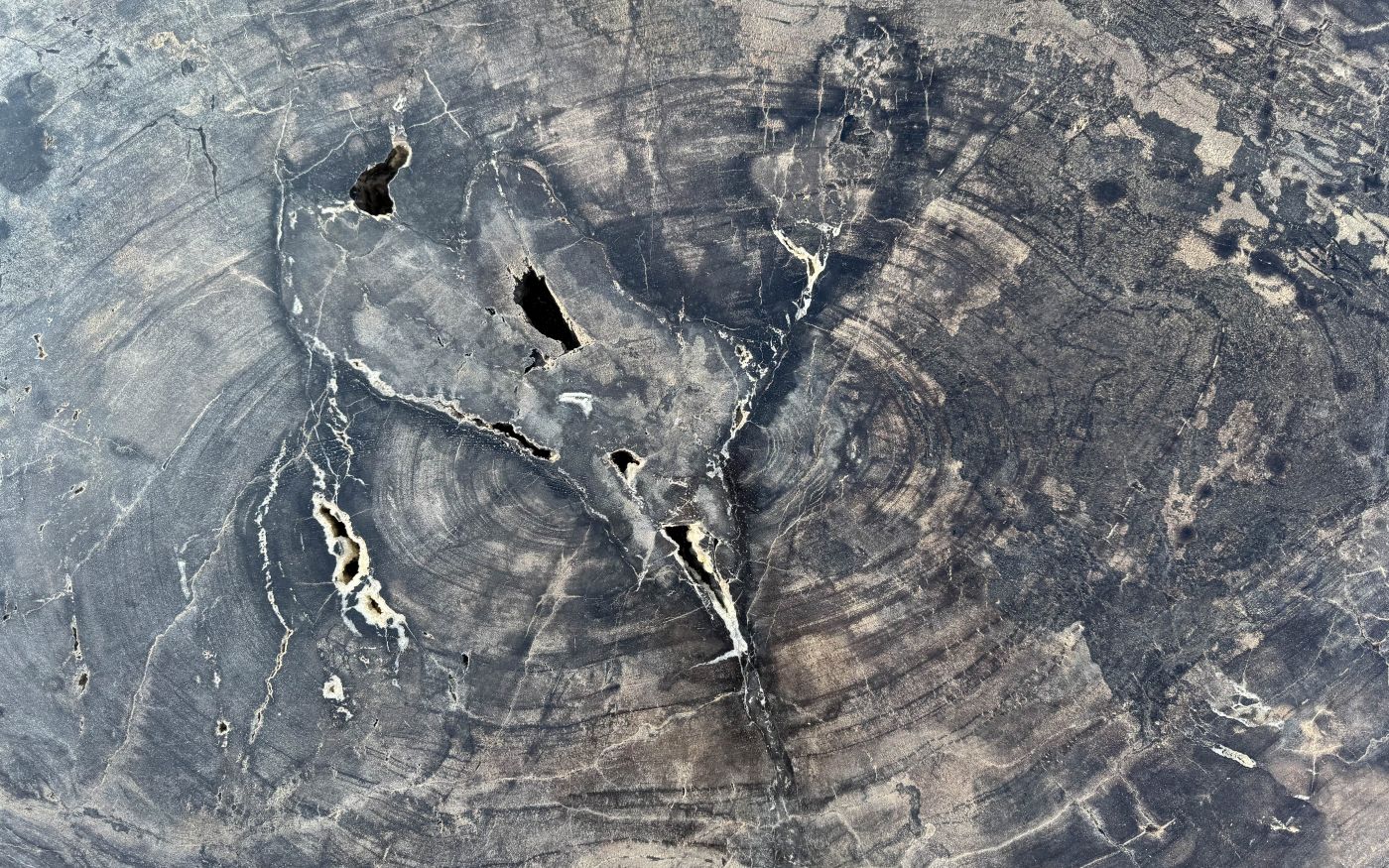 Deze unieke salontafel van versteend hout past in ieder interieur. Het tafelblad is gezaagd uit een grote versteende boom, die ongeveer 20 miljoen jaar geleden geleefd heeft. De kleuren zijn bepaald door de mineralen die het hout van deze boom vervangen hebben.