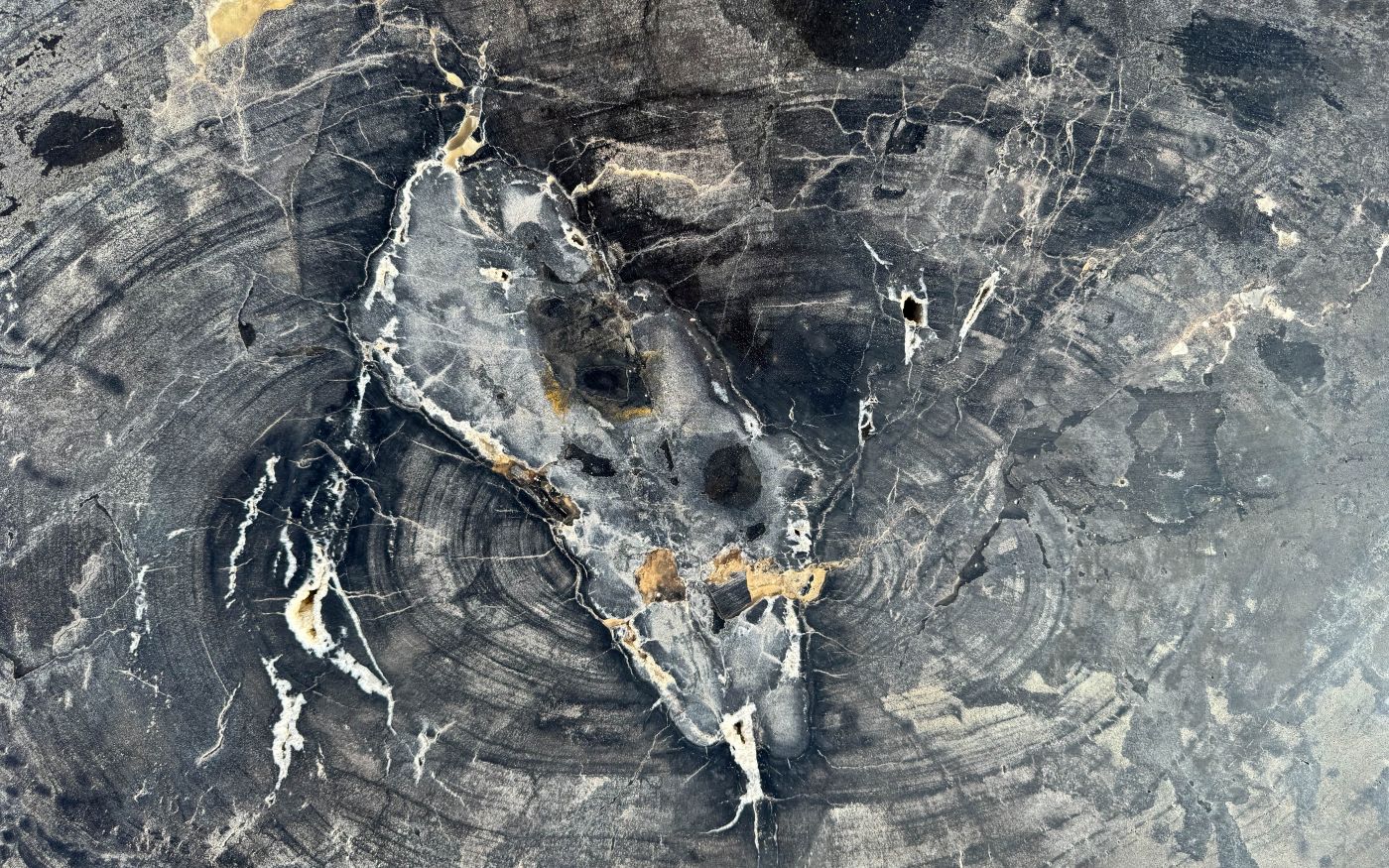 Deze unieke salontafel van versteend hout past in ieder interieur. Het tafelblad is gezaagd uit een grote versteende boom, die ongeveer 20 miljoen jaar geleden geleefd heeft. De kleuren zijn bepaald door de mineralen die het hout van deze boom vervangen hebben.