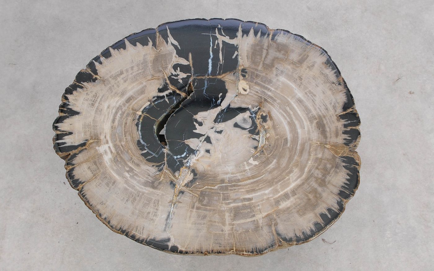 Het is erg moeilijk de schoonheid van versteend hout in een foto te vatten. We nodigen u daarom van harte uit deze salontafel in onze showroom te komen bekijken, maar bestellen via de website kan natuurlijk ook.