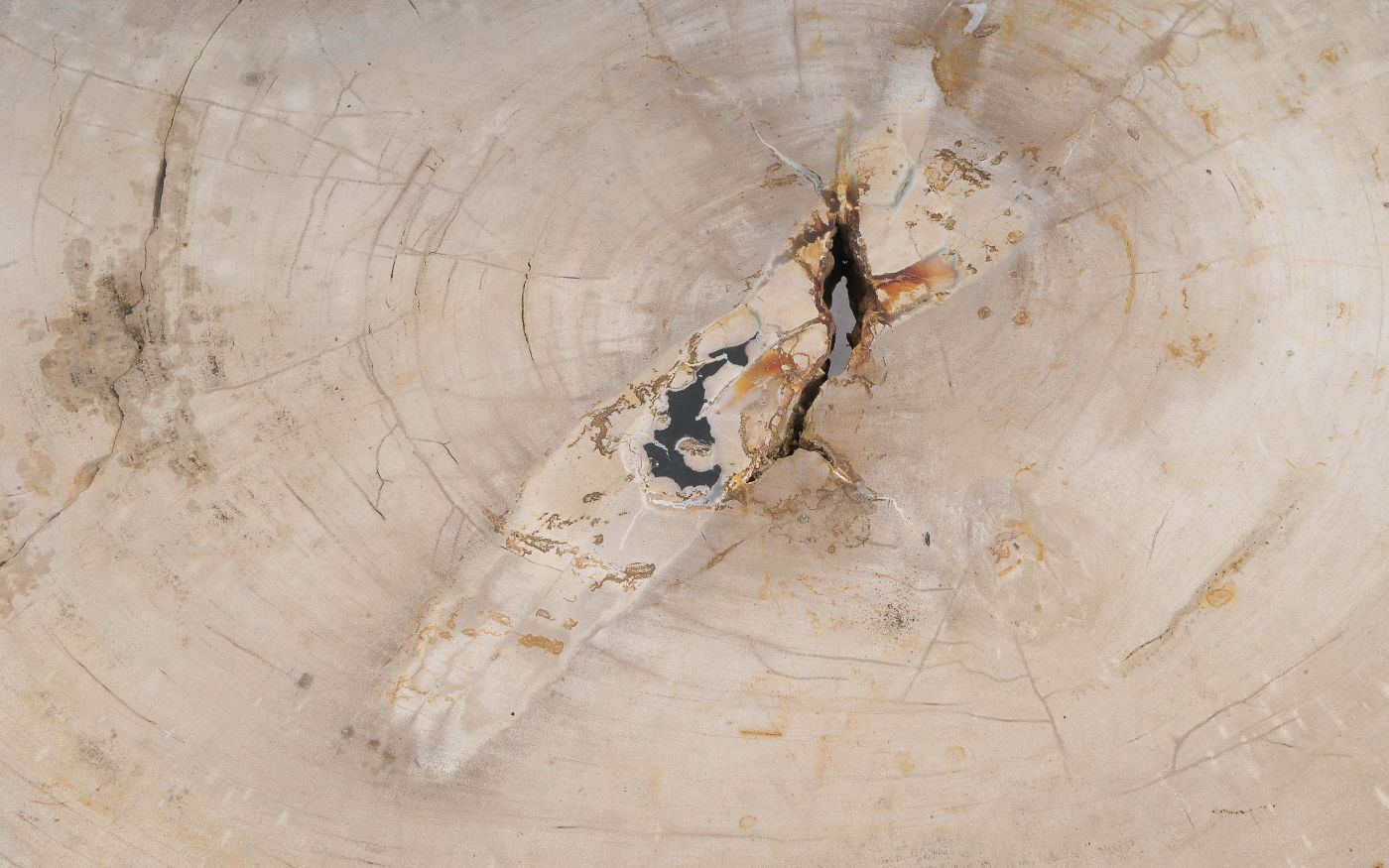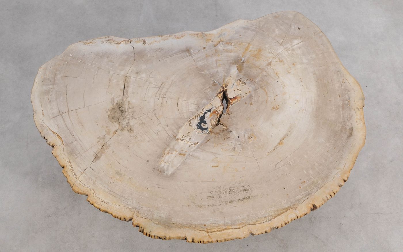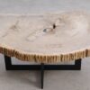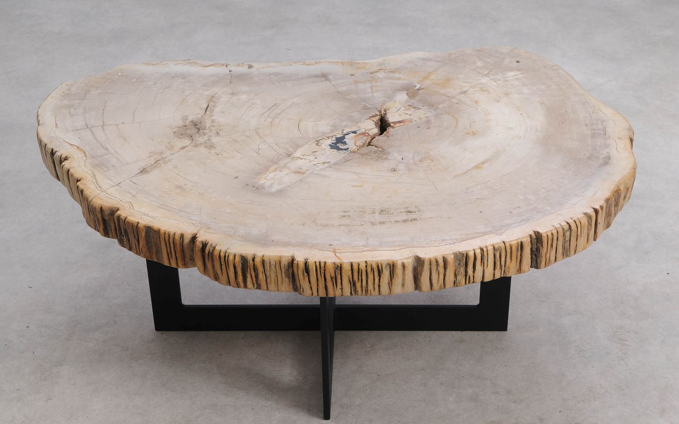 Deze unieke salontafel van versteend hout past in ieder interieur. Het tafelblad is gezaagd uit een grote versteende boom, die ongeveer 20 miljoen jaar geleden geleefd heeft. De kleuren zijn bepaald door de mineralen die het hout van deze boom vervangen hebben.
